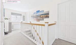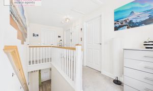 Upstairs, a grand landing creates an impressive sense of space and provides access to all four bedrooms. The principal bedroom is well-proportioned and features fitted storage along with a modern ensuite shower room. Three further bedrooms offer flexible accommodation for family members, guests, or home working, all served by a contemporary family bathroom finished to a high standard.