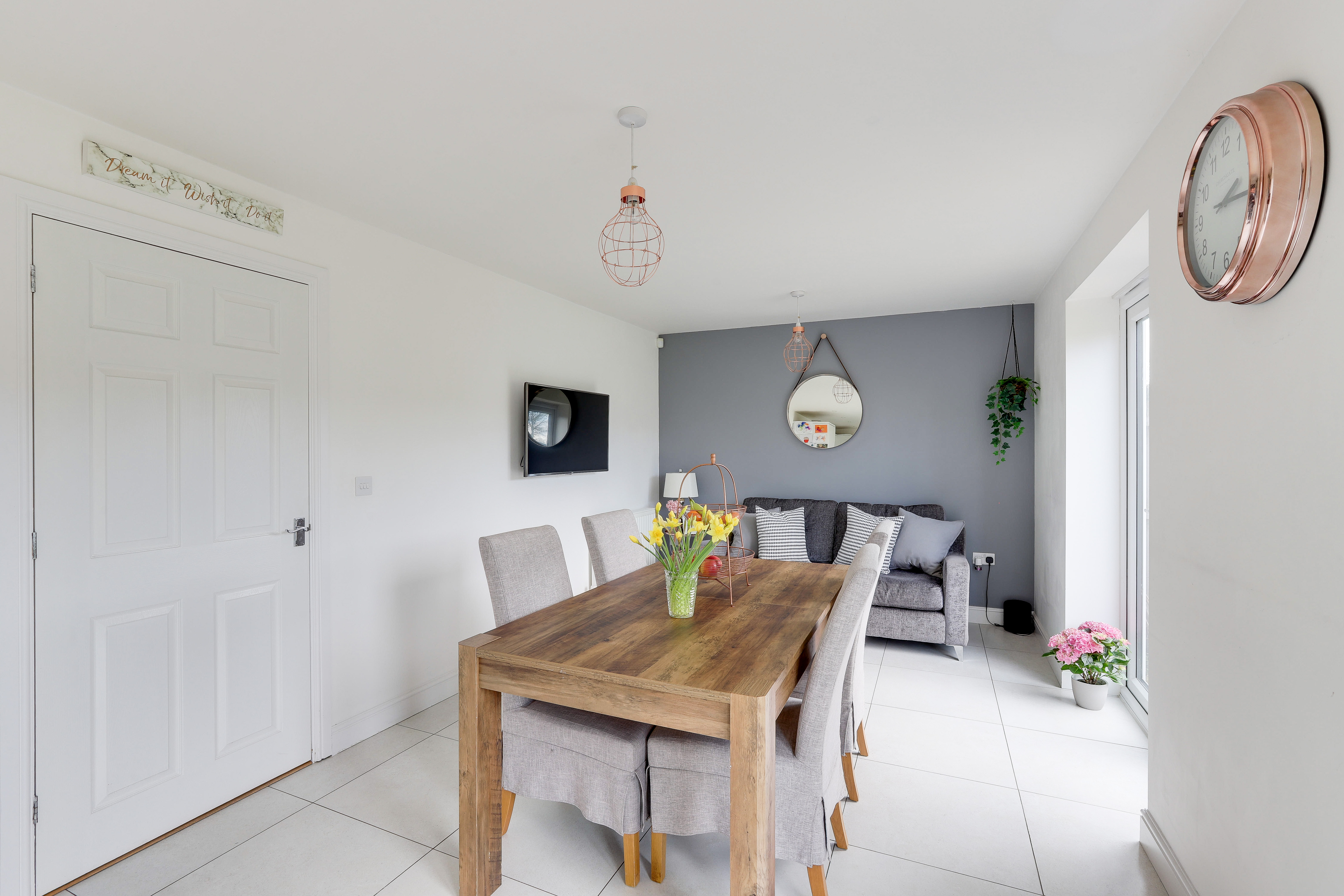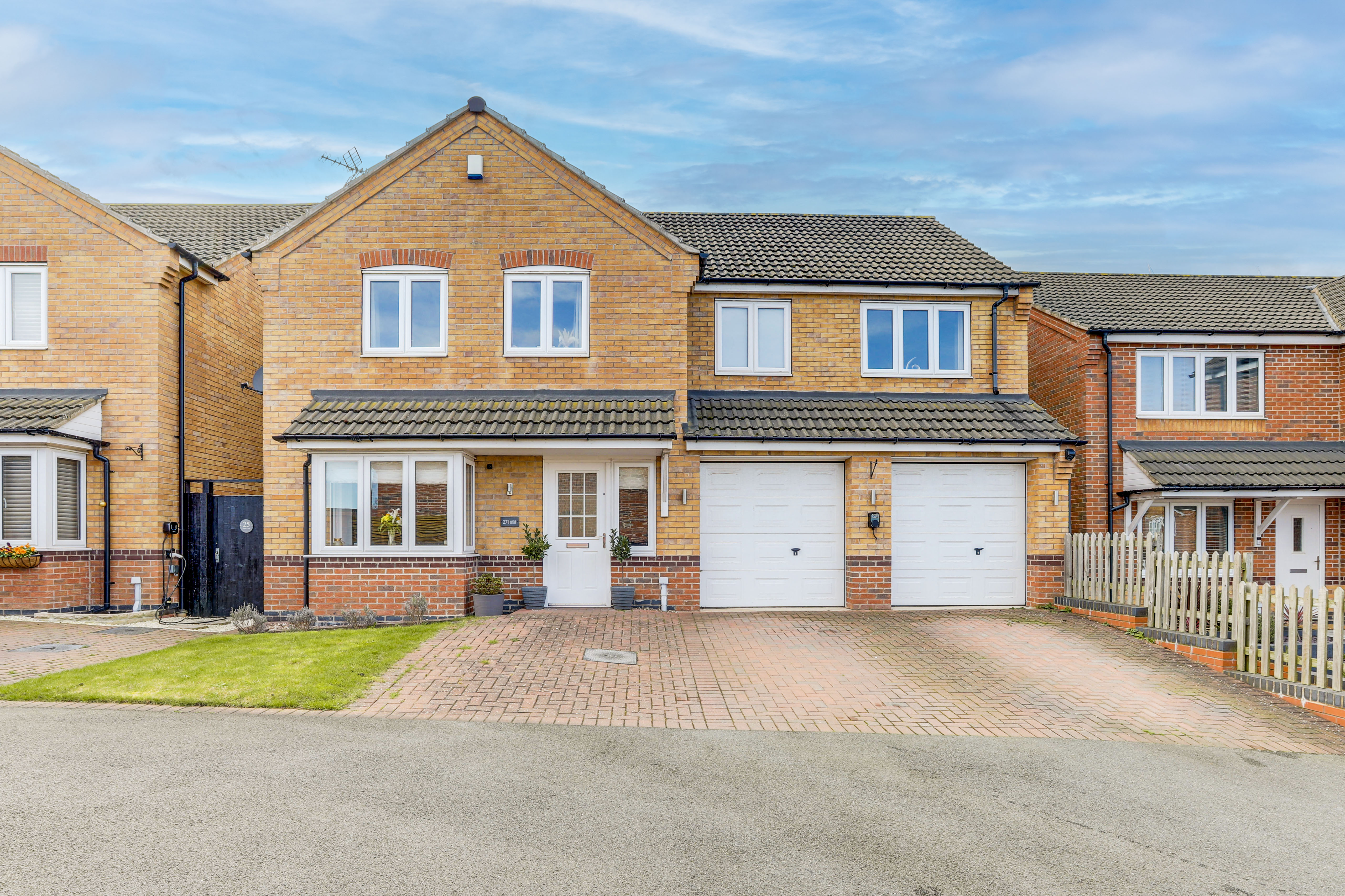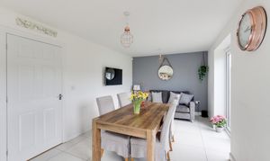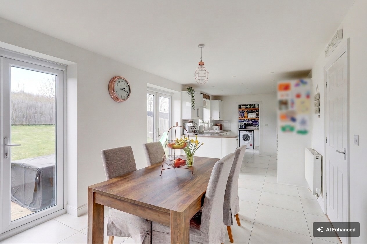 This beautifully presented five-bedroom detached house offers a rare opportunity to acquire an exceptional and modern family home in a village location. Upon entering, you are greeted by a welcoming hallway that leads to a spacious living room, perfect for both relaxation and entertaining guests. The modern fitted kitchen-diner boasts sleek cabinetry, premium integrated appliances, and ample space for family meals, while the adjoining utility room and convenient ground floor W/C add to the property’s practicality. Each of the five well-proportioned bedrooms is thoughtfully designed, with two featuring stylish en-suite shower rooms and the remaining bedrooms served by a contemporary three-piece bathroom suite. The home is a total of 1,920 sq ft. The private enclosed south-west facing rear garden provides a tranquil retreat, ideal for outdoor dining. With planning permissions granted to erect a single storey rear extension and single garage conversion, the home has plenty of developmental potential, to extend up to 2,290sq ft. To the front, the property benefits from generous off-street parking and access to the integral double garage. This outstanding home combines luxurious living with practical amenities and a desirable village setting, making it a must-view for discerning buyers seeking comfort, style, and convenience.