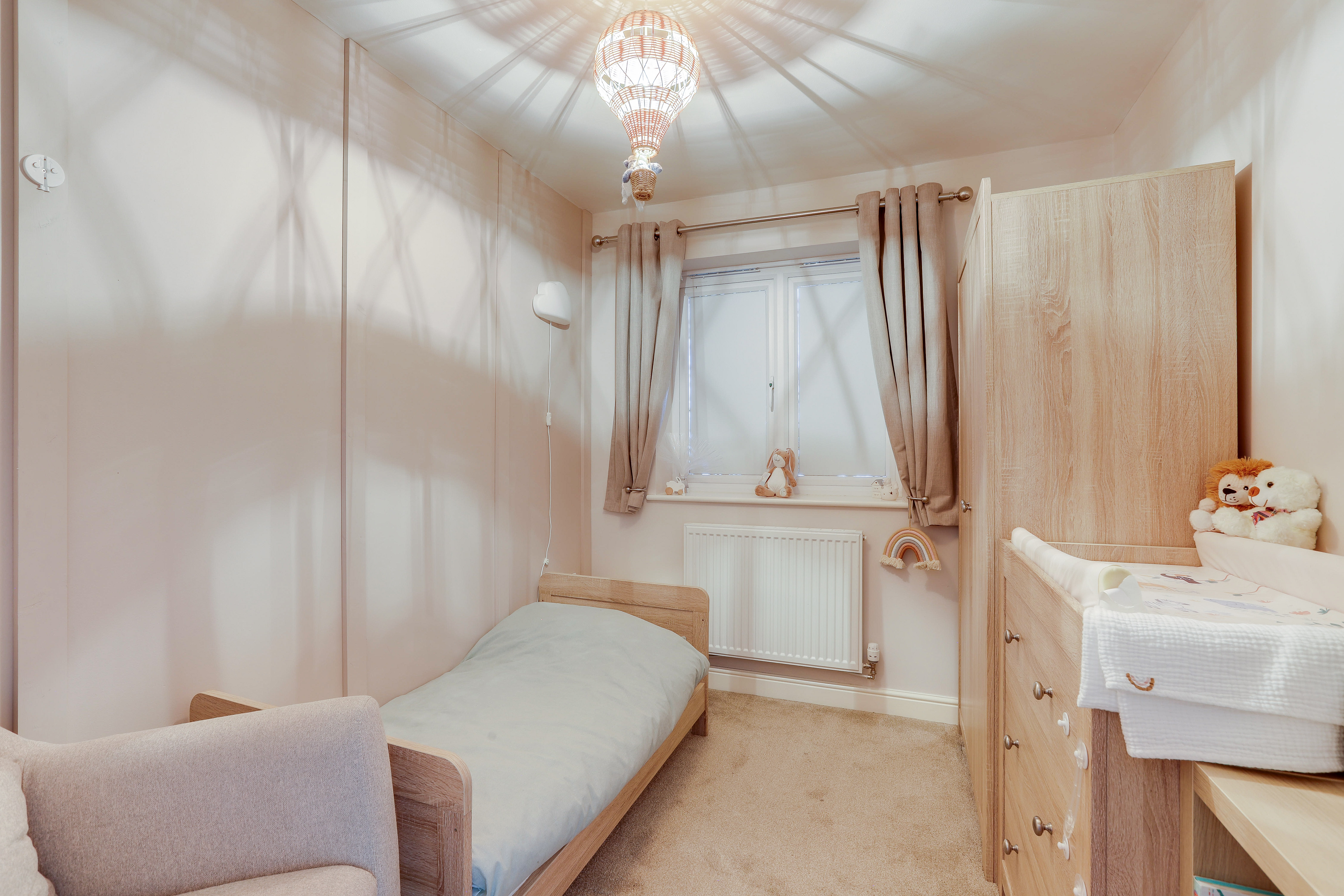 The third bedroom has carpeted flooring, a radiator, and a UPVC double-glazed window to the rear elevation.