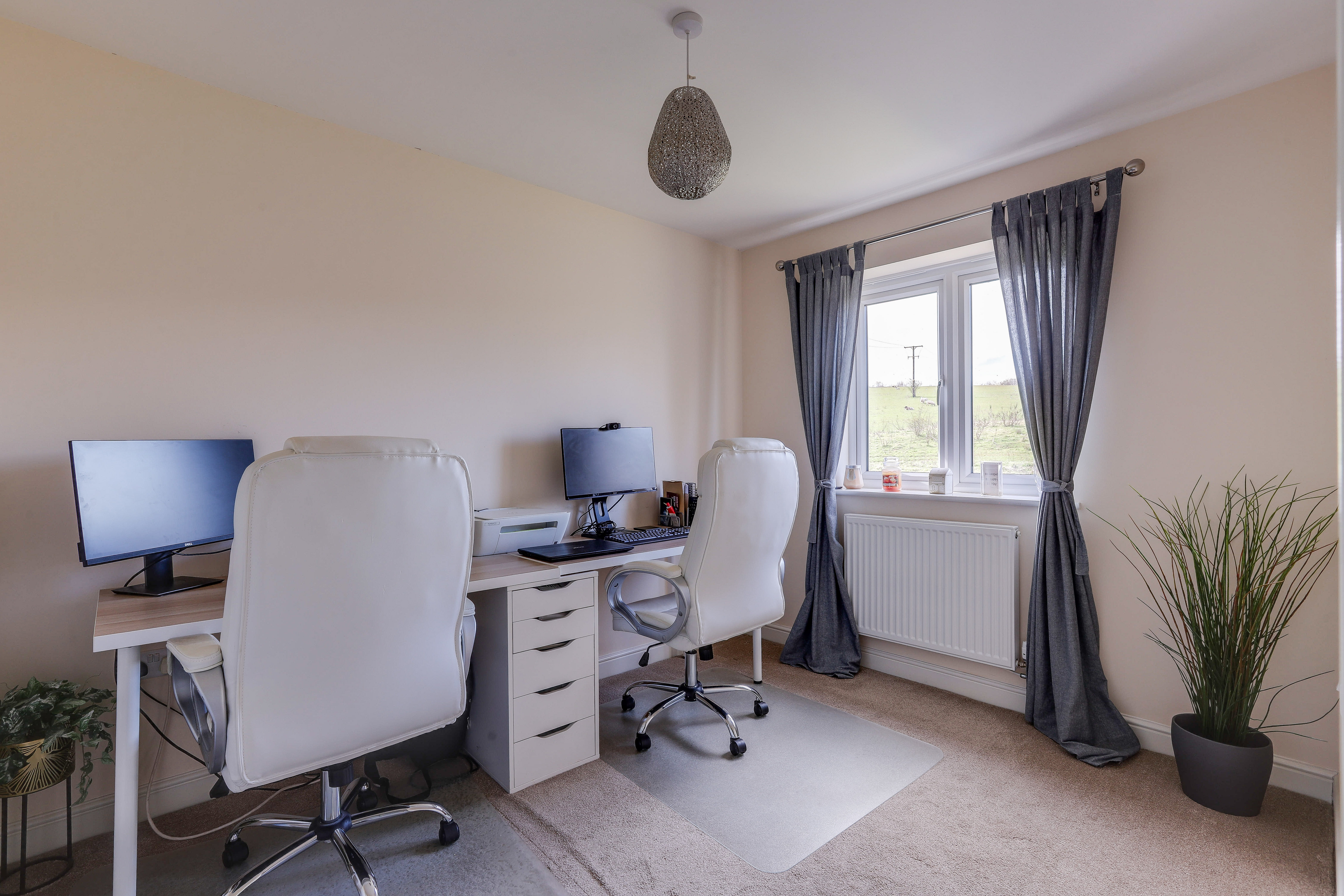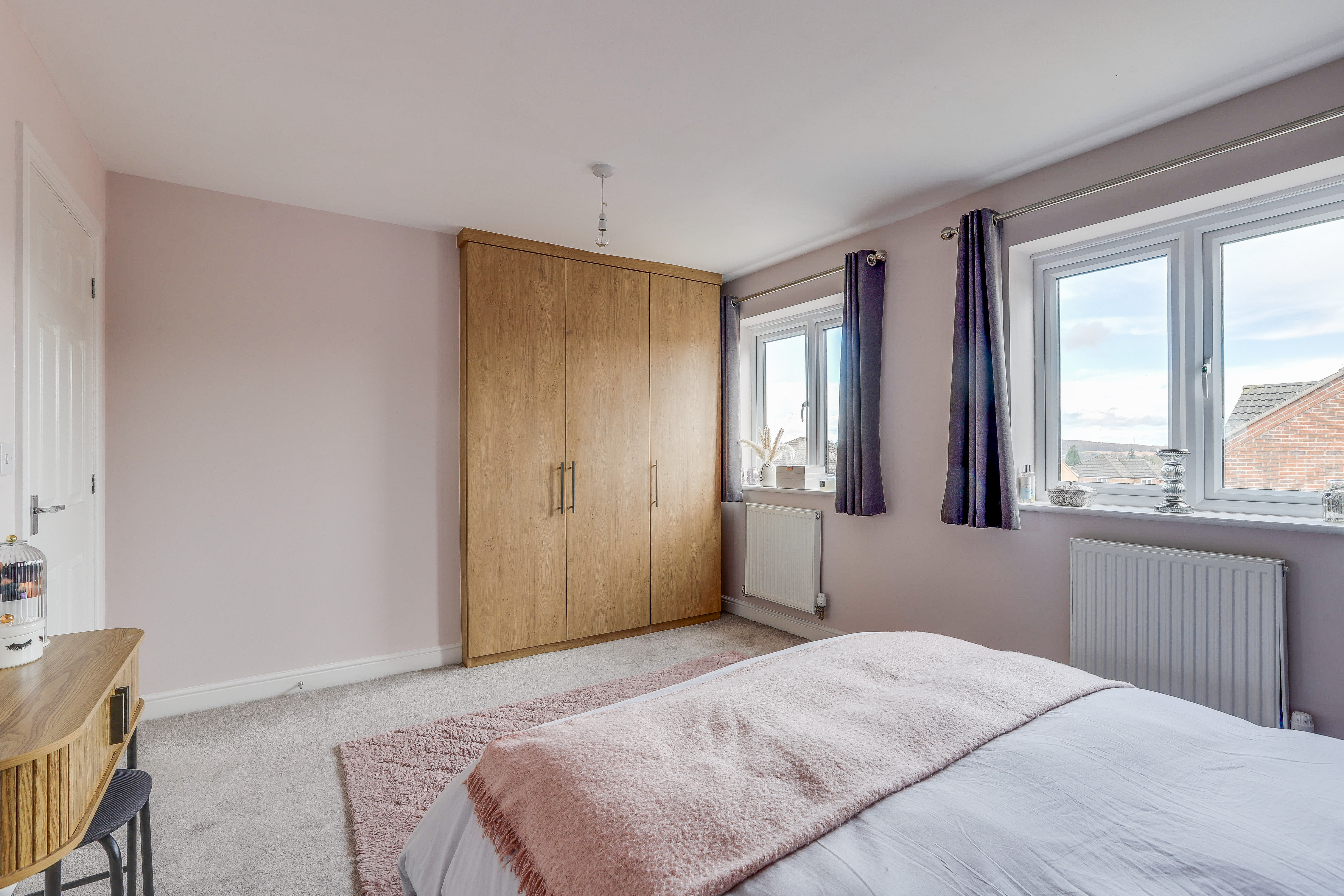 The second bedroom has carpeted flooring, two radiators, two UPVC double-glazed windows to the front elevation, and access to the en-suite.