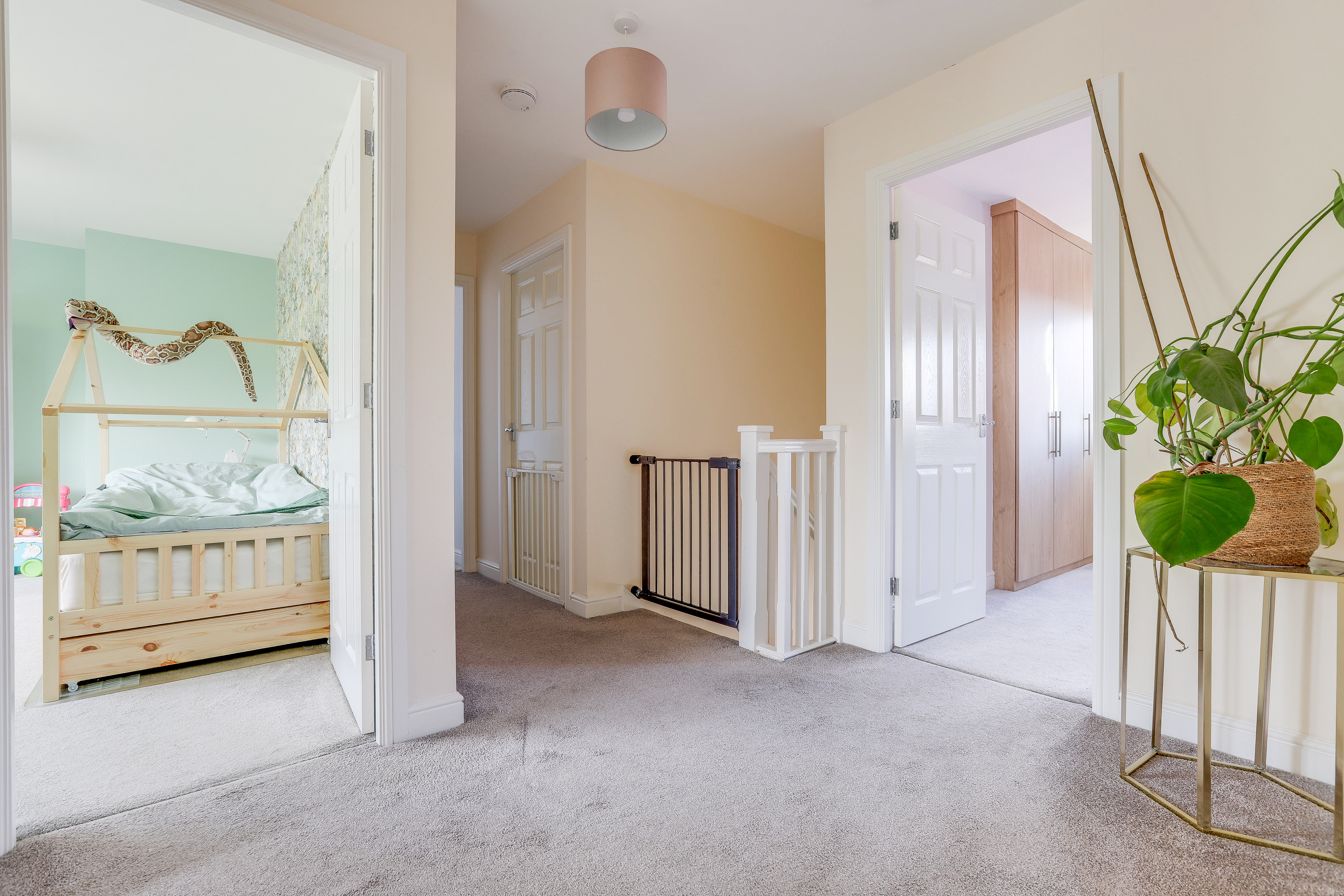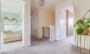 The landing has carpeted flooring, a radiator, a built-in storage cupboard, access to the loft, and access to the first floor accommodation.