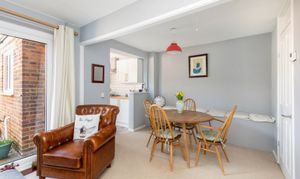The accommodation comprises, entrance hallway, well proportioned sitting room with fireplace and dining room with under stairs storage and French doors onto the garden.