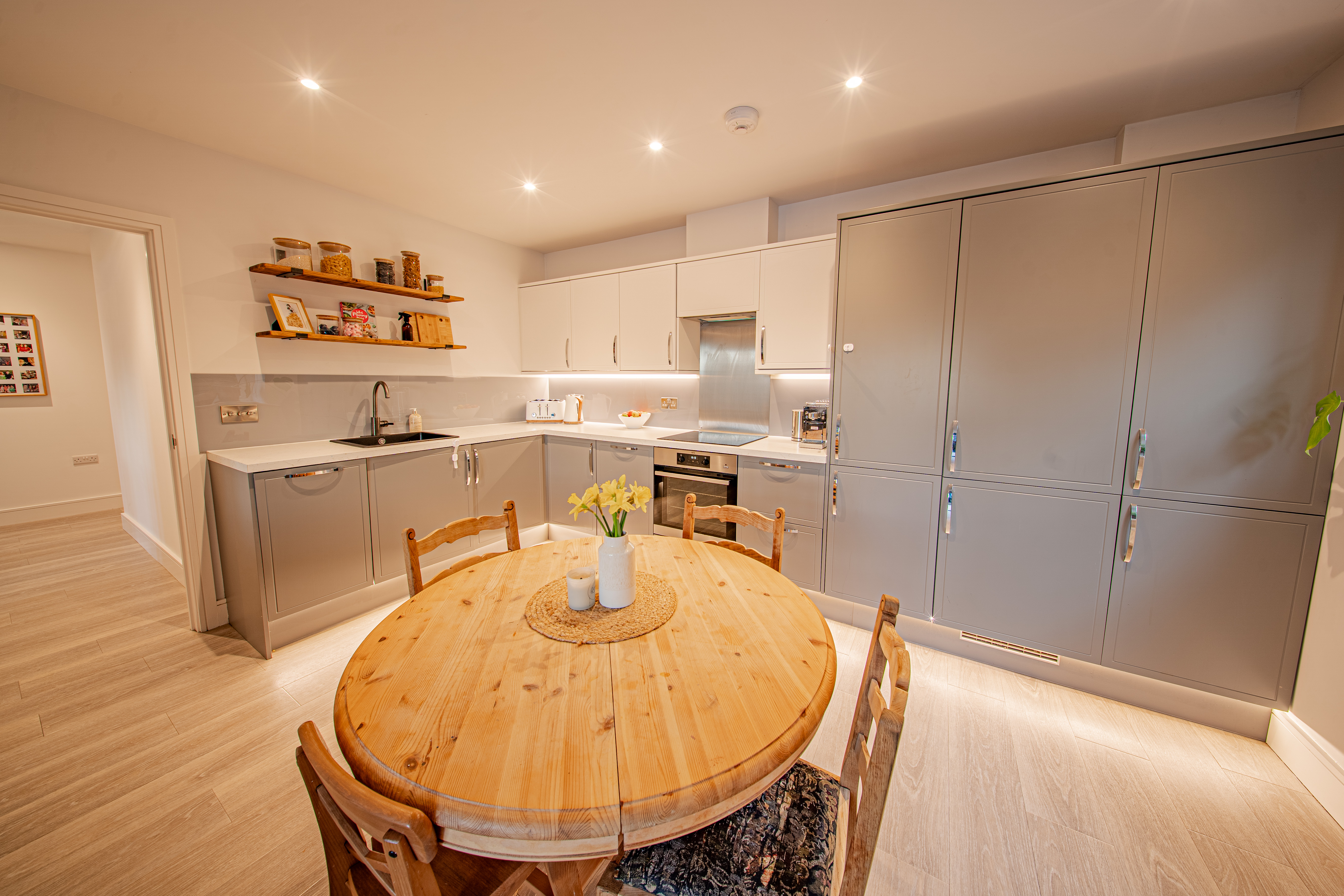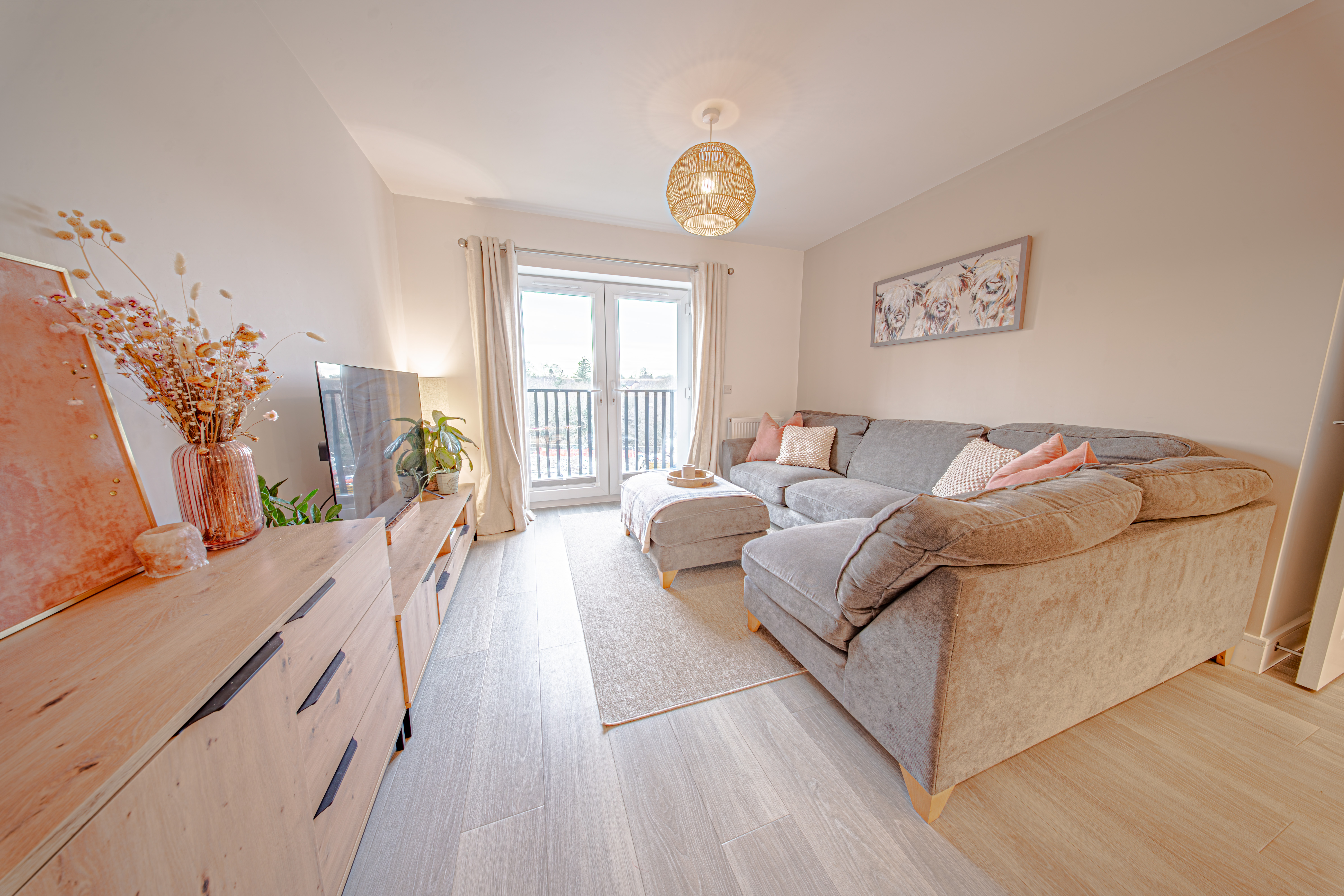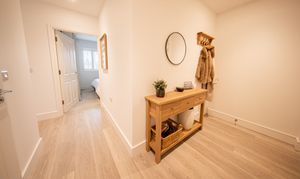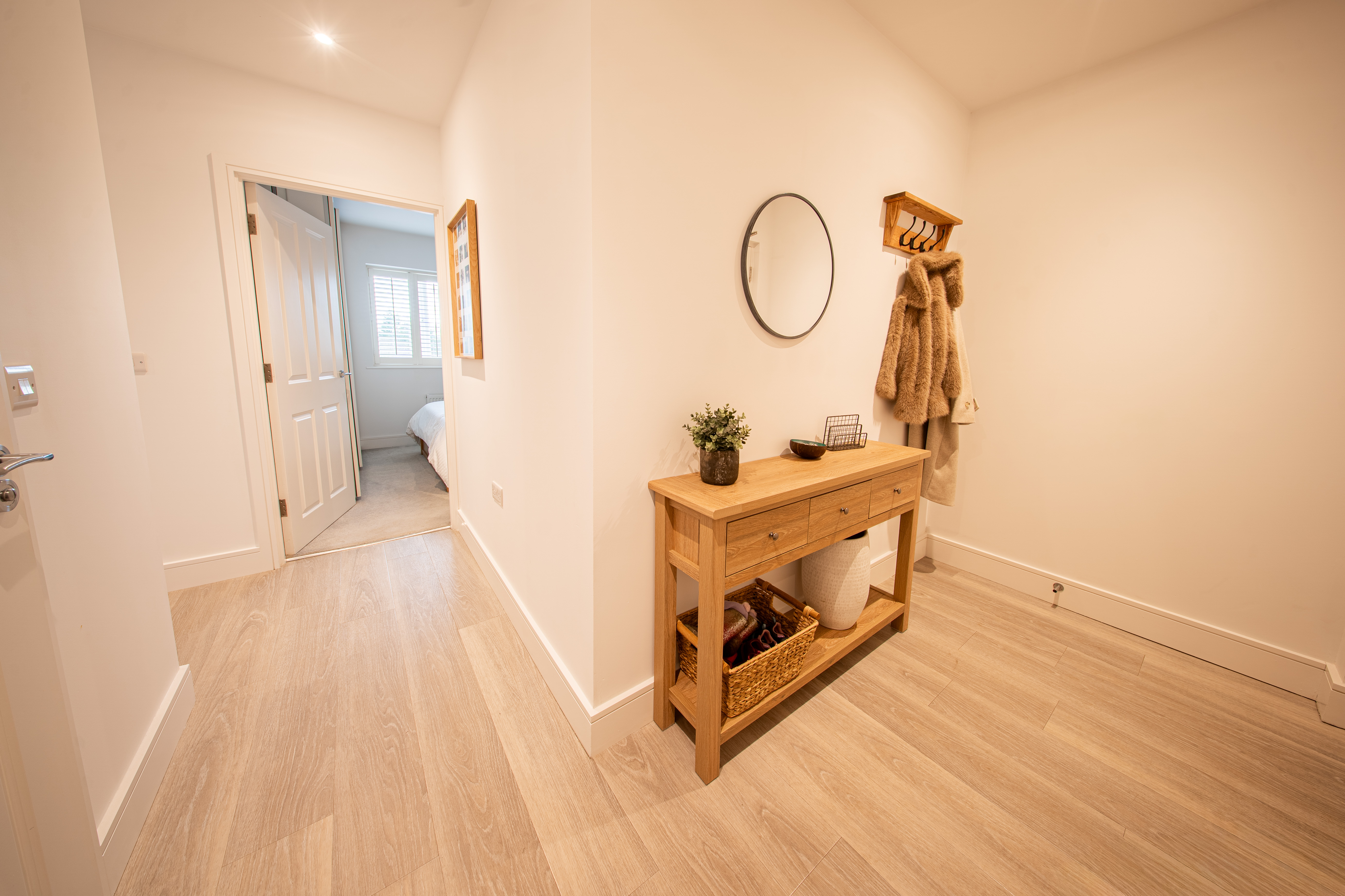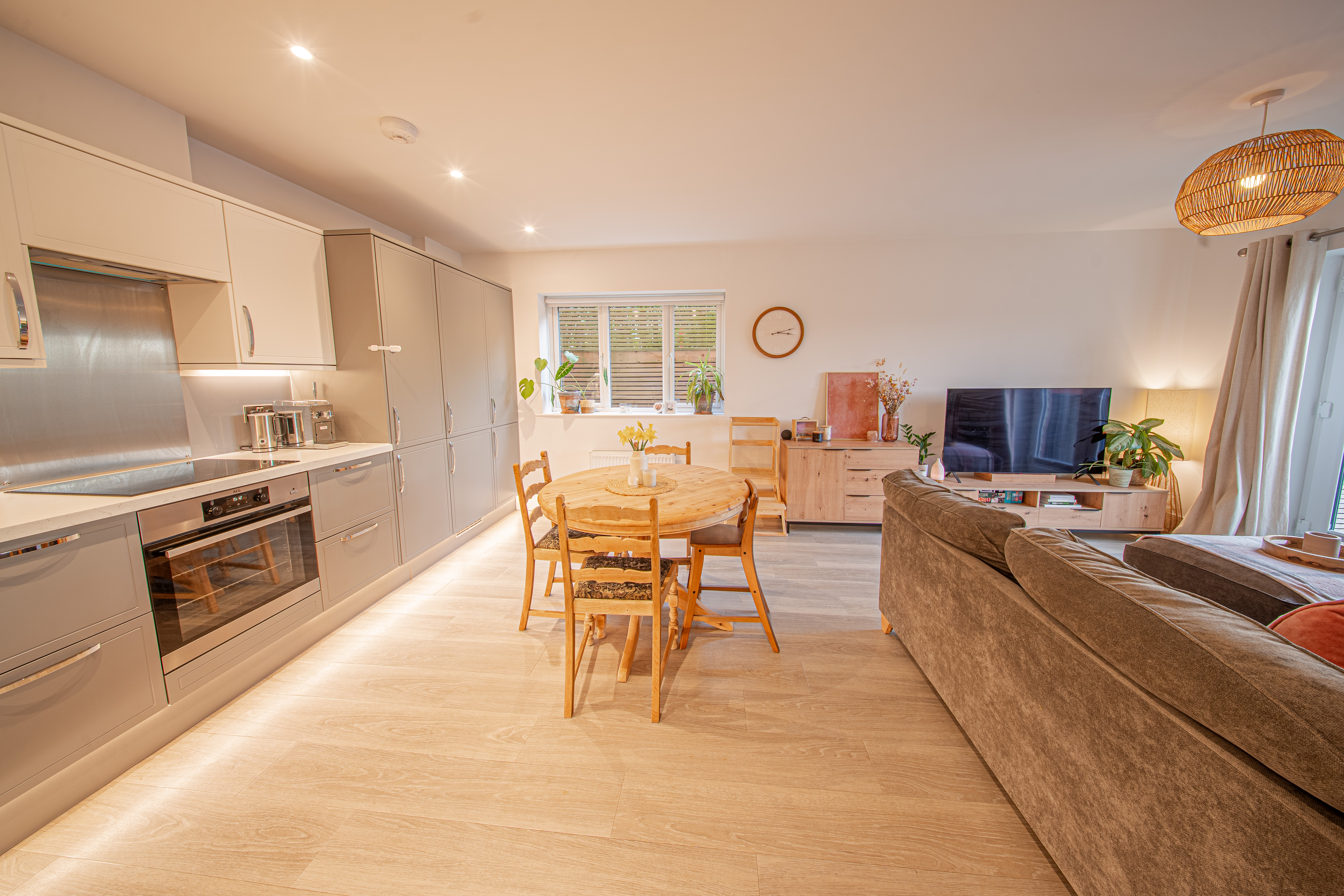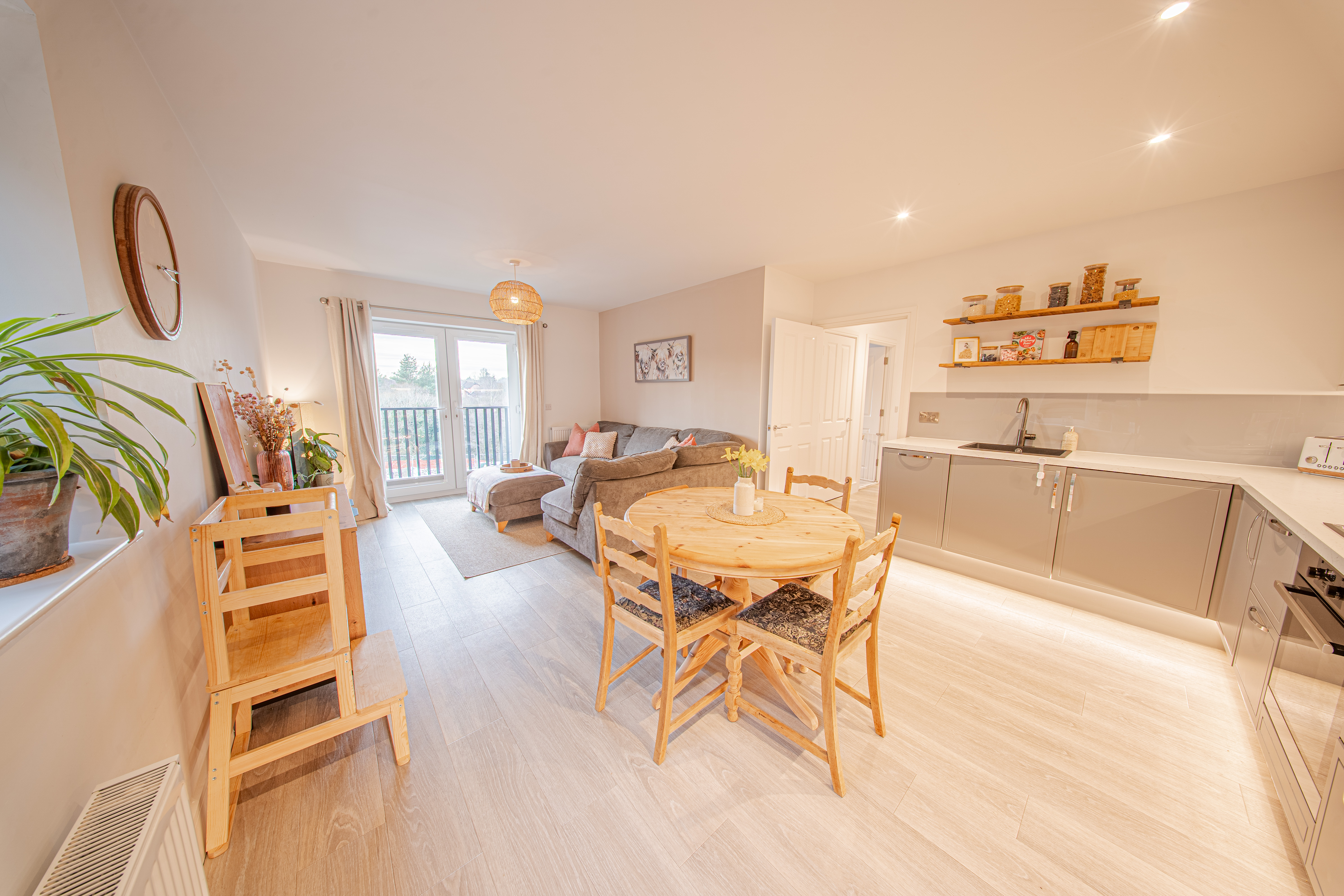 A beautifully presented first floor 2 bedroom, 2 bathroom apartment of 746 sq ft.² enjoying a sunny south and westerly aspect in this attractive small block built by a small local developer - Colstock Developments Ltd. The property is fitted out to a very high specification and is situated within the Franklands Village conservation area on the town’s south/eastern edge within a short walk of the hospital and town centre.