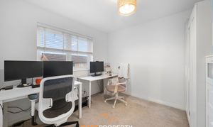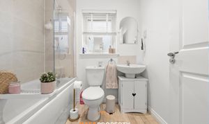 Upstairs, the property offers two generously sized double bedrooms and a third single bedroom, making an ideal child’s room or home office. The stylish family bathroom includes a bath with overhead shower, sink, toilet and heated towel rail.