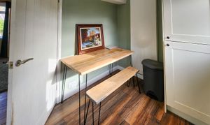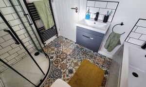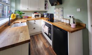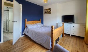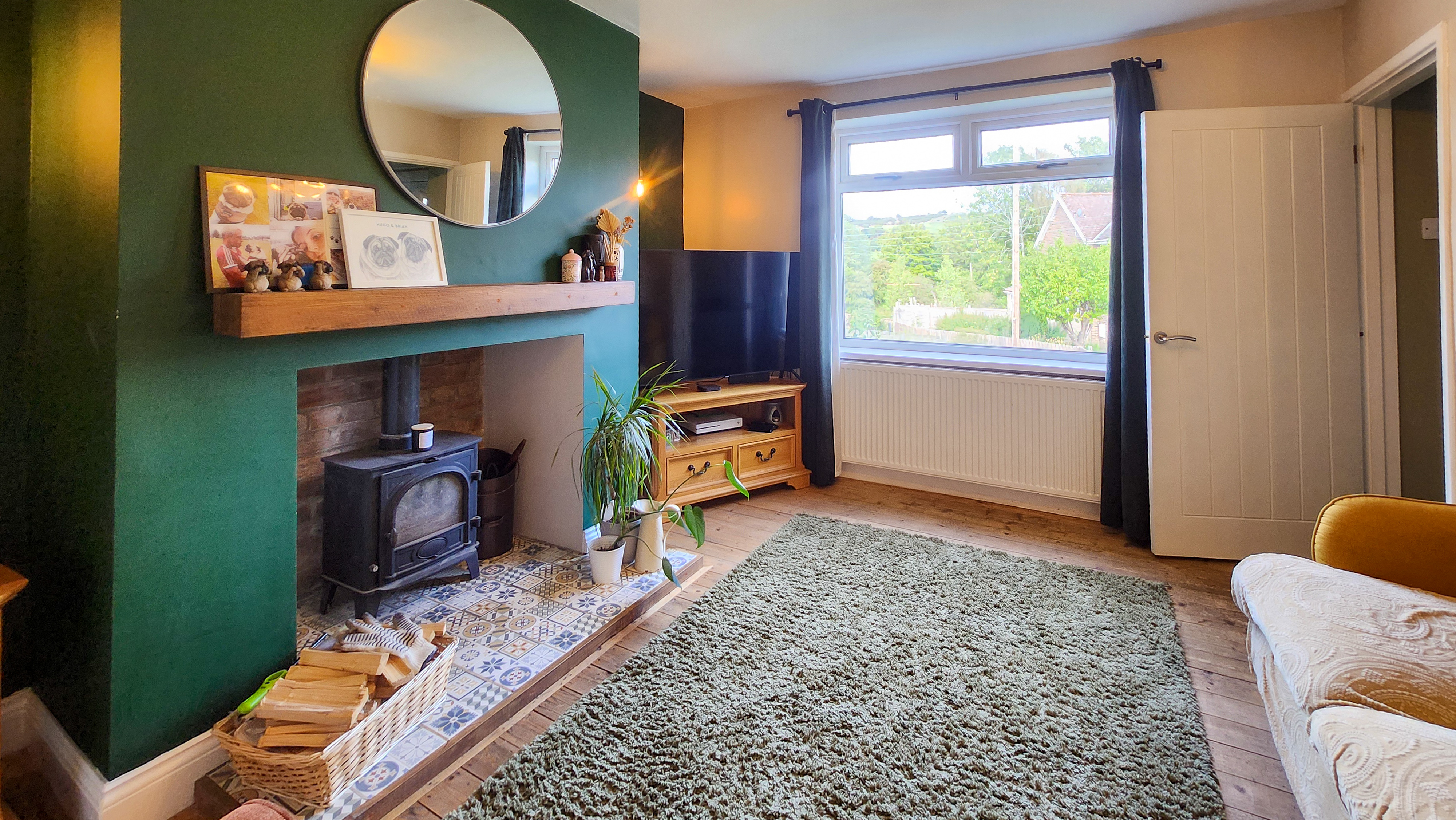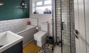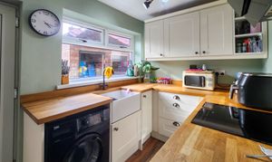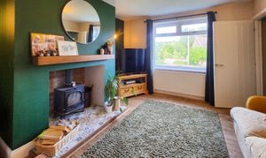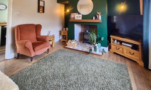 This beautifully presented two-bedroom semi-detached house offers a harmonious blend of contemporary style and classic charm. The property features a spacious reception room enhanced by a wood burning stove set within a striking feature fireplace, complemented by elegant hardwood flooring and exposed brick accents. The modern kitchen is appointed with sleek cabinetry, integrated appliances, wooden countertops, and a stylish butler sink, all bathed in natural light from generous windows. Both bedrooms provide comfortable retreats, with one boasting built-in storage and wood flooring, and the other highlighted by a vibrant feature wall and a modern bathroom. The main bathroom is finished to a high standard, featuring a walk-in shower, decorative patterned floor tiles, heated towel rail, and a relaxing bath-tub.