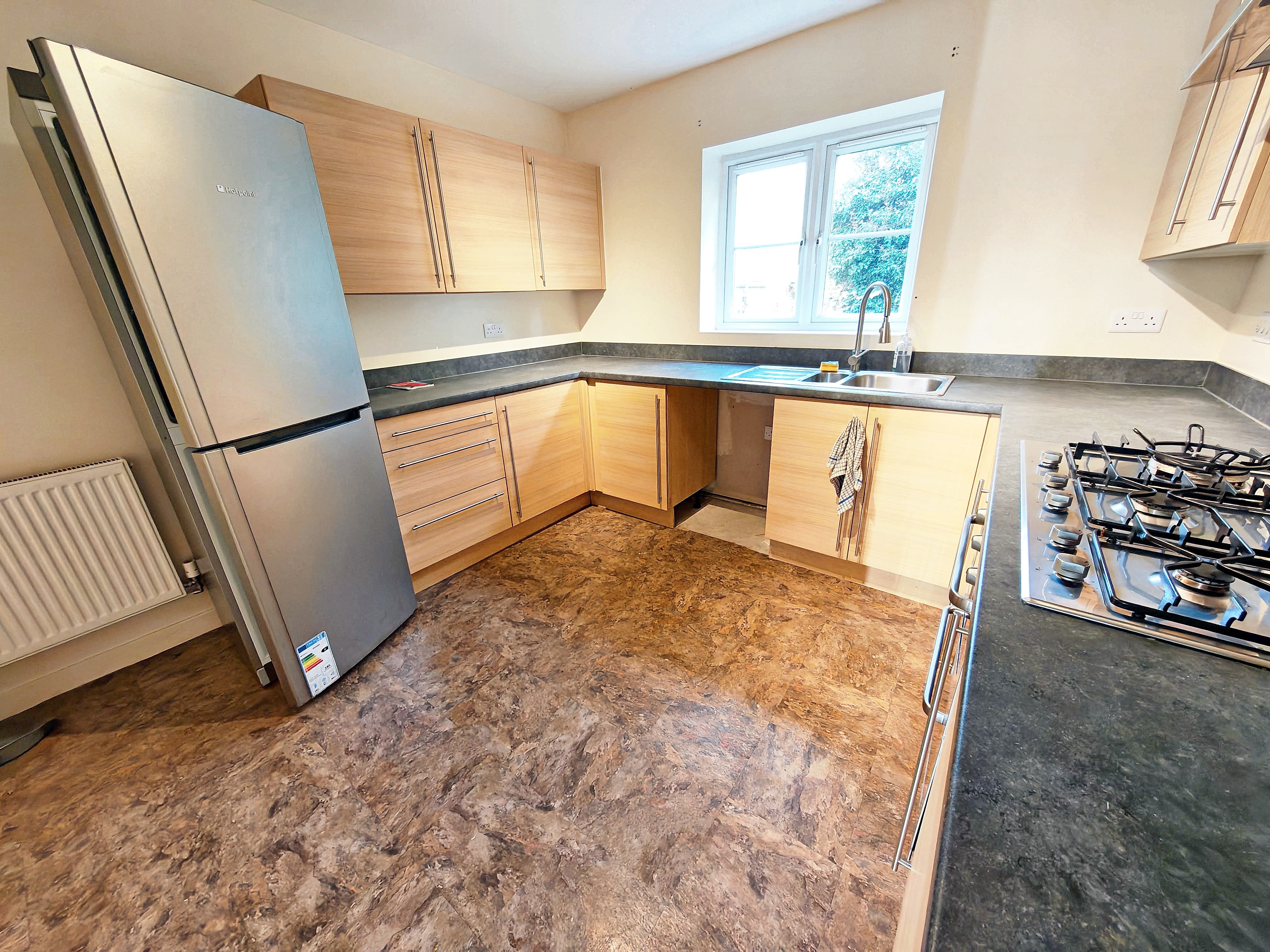 This fabulous four-bedroom detached house offers a wonderful blend of contemporary style and practical family living. Step inside to find two spacious reception rooms, each bathed in natural light from large windows and French doors that seamlessly connect the indoors with the garden. The heart of the home is a stylish, kitchen equipped with sleek cabinetry, integrated appliances, and plenty of workspace, making it the perfect spot for both every-day meals and entertaining. The property features two beautifully appointed bathrooms - one with a walk-in shower, and another with a sleek pedestal sink, modern fittings, and wood-effect flooring for a warm, modern feel. Each bedroom boasts large windows and neutral décor, offering inviting, versatile spaces ready for your personal touch; one even benefits from a built-in wardrobe with mirrored doors for extra storage and a sense of space.