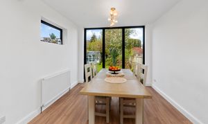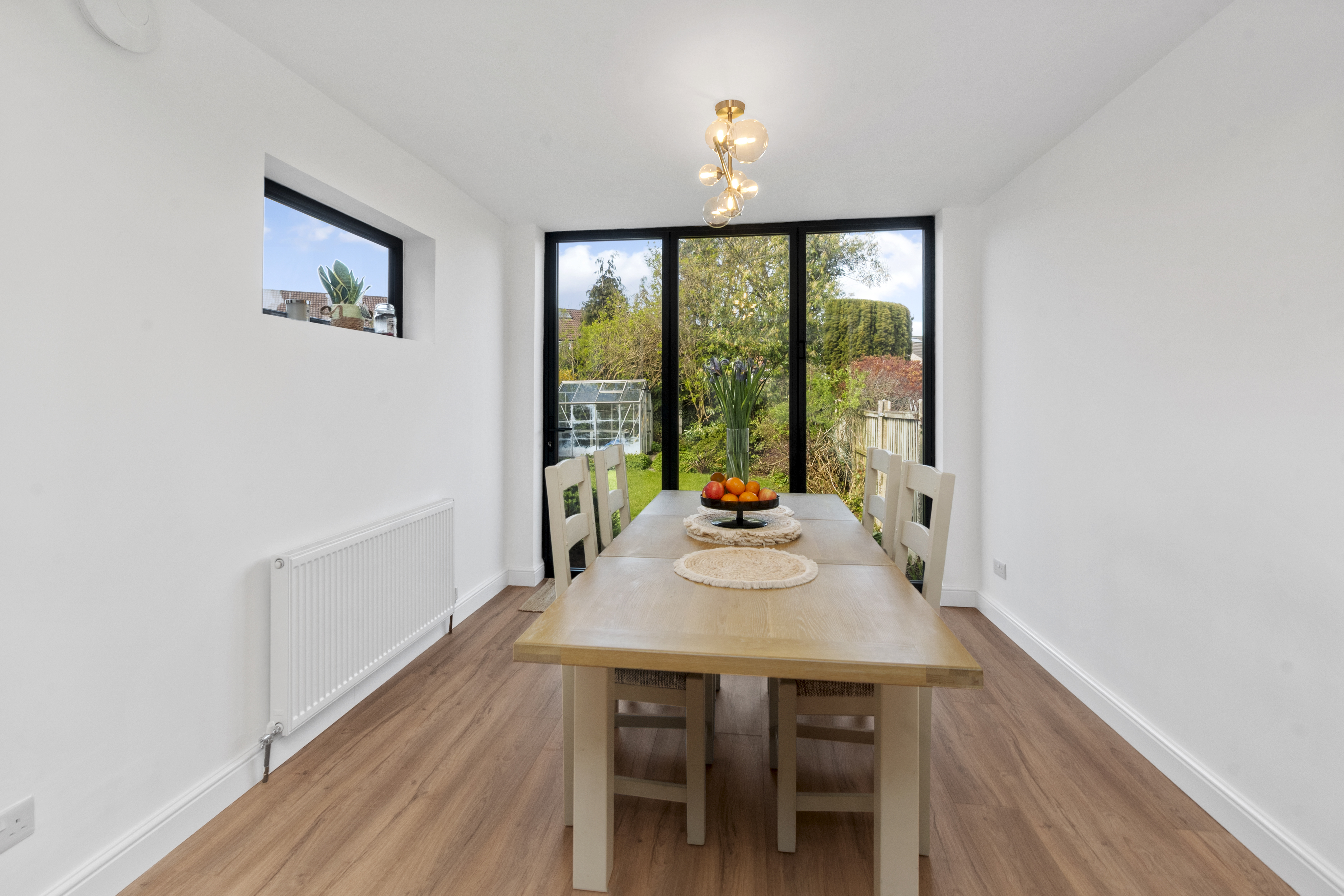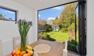 - Floor-to-ceiling bi-folding doors flooding the space with natural light and opening to the garden