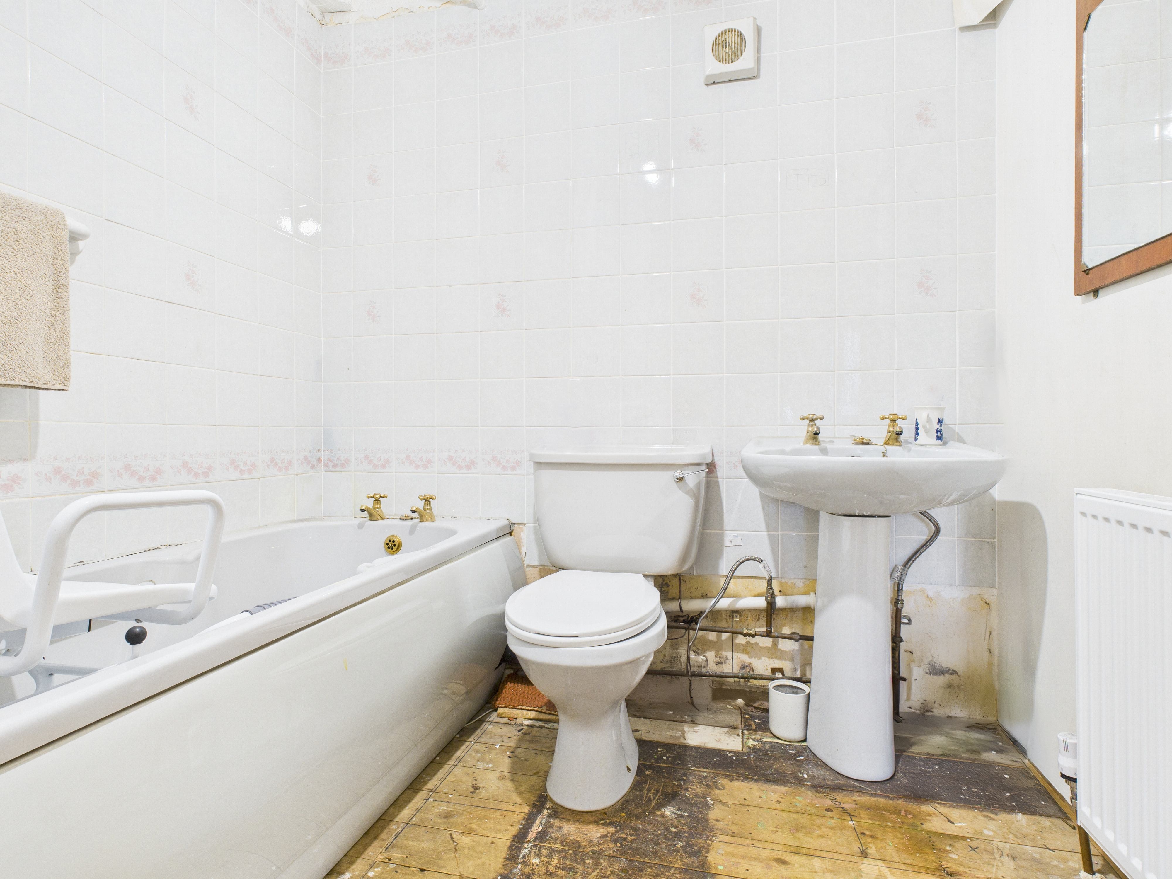 To the first floor, the landing provides access to the loft and leads to three bedrooms. There are two well-sized double bedrooms and a good-sized single bedroom, all offering flexibility for family living, home working or guests. The bathroom is fitted with a white three-piece suite and features an electric shower over the bath.