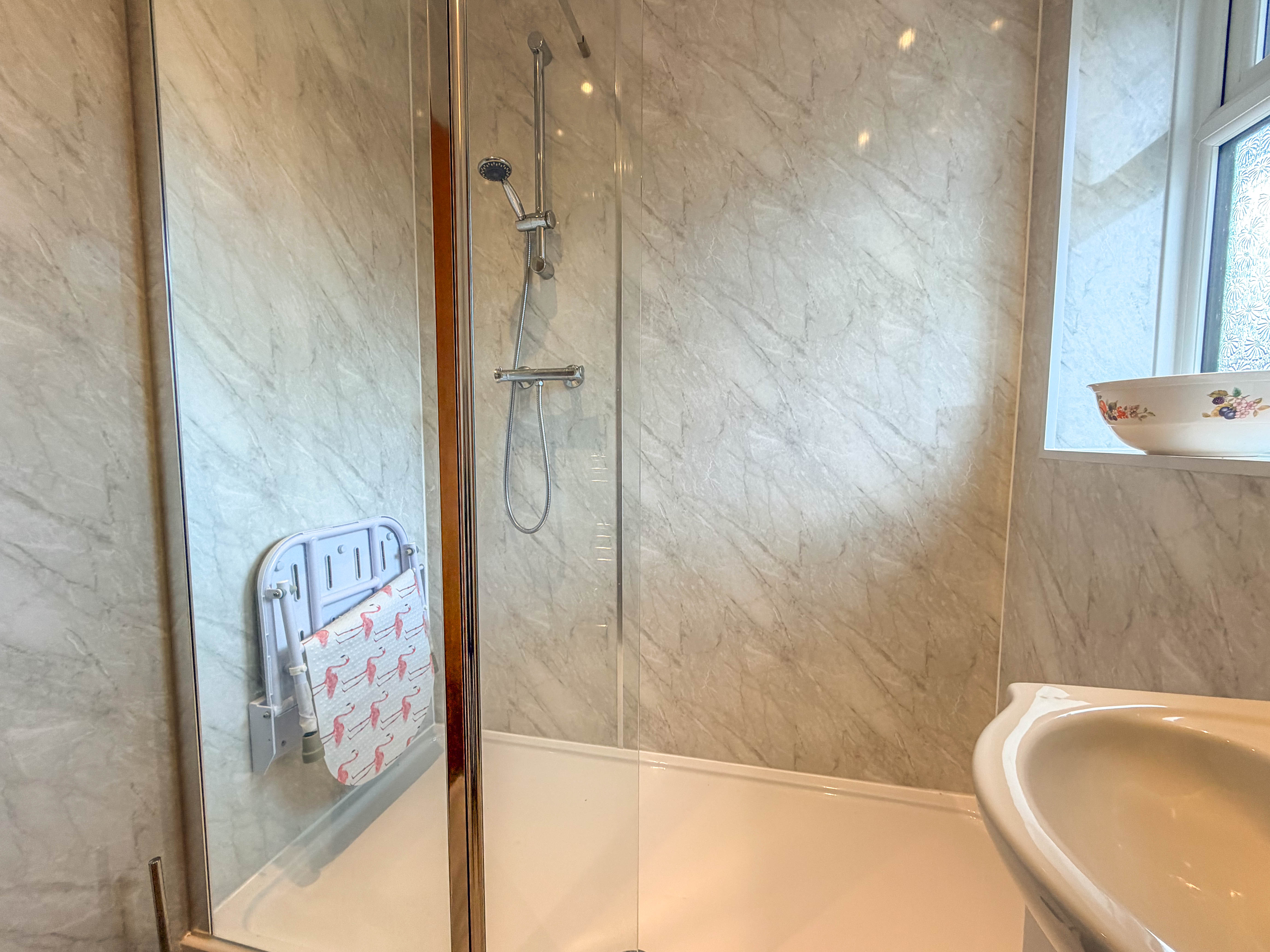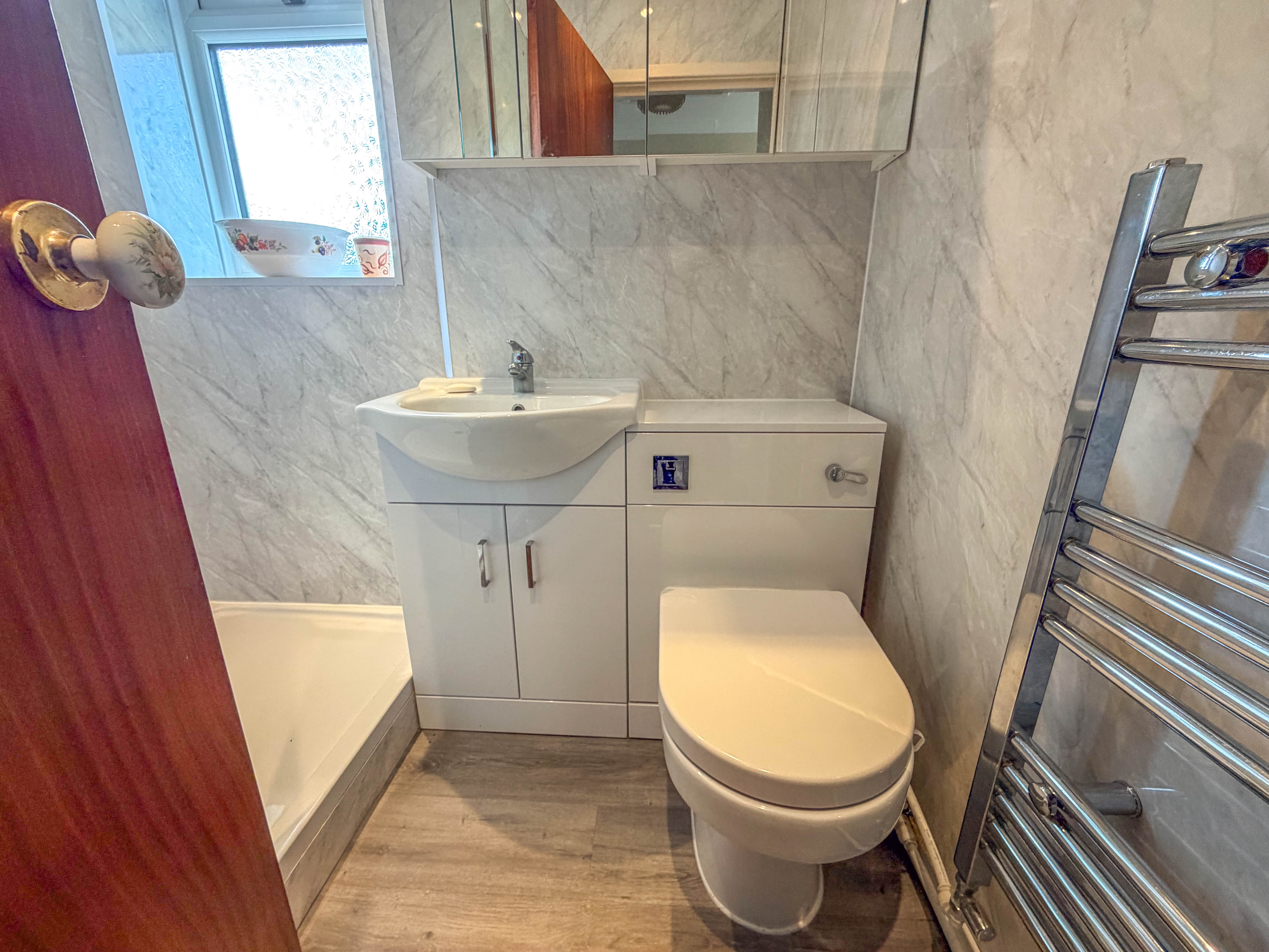 The accommodation is completed by a refitted shower room, finished in a more modern style and providing a practical and convenient suite.