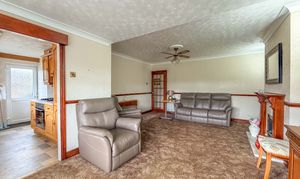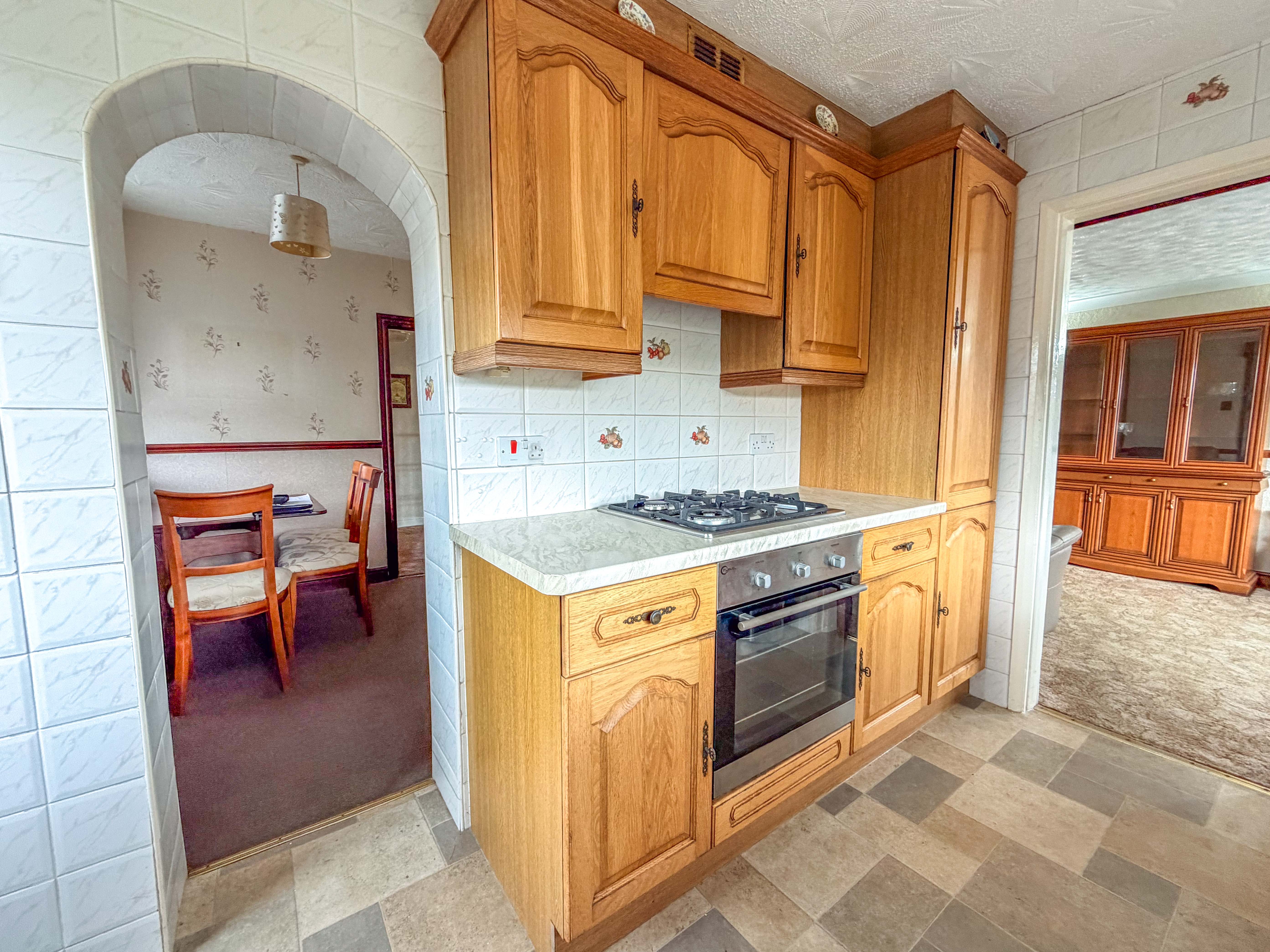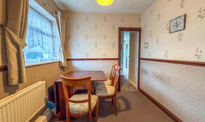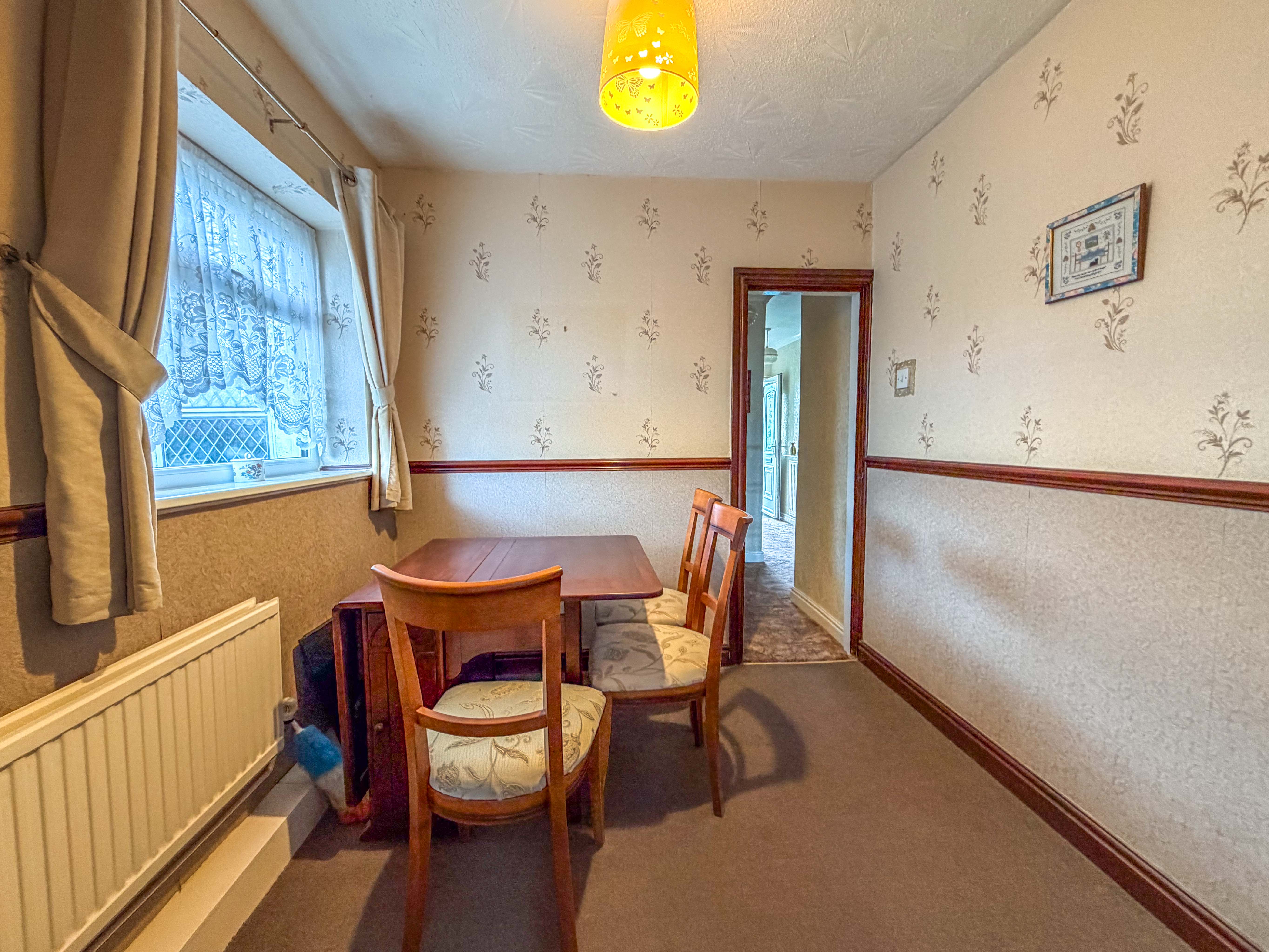 The kitchen is also situated to the rear and offers excellent potential for redesign, whether as a modern fitted kitchen or potentially reimagined to better suit contemporary living. Complementing this is a separate dining room, providing a more formal setting for meals or gatherings, and offering further flexibility depending on lifestyle needs.