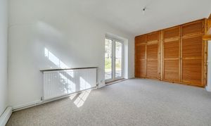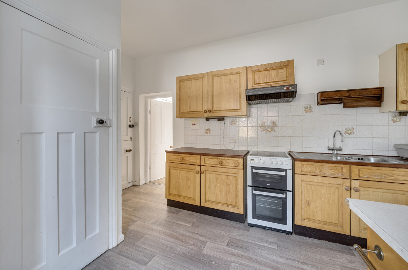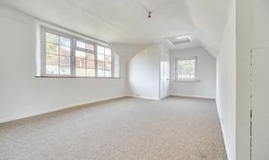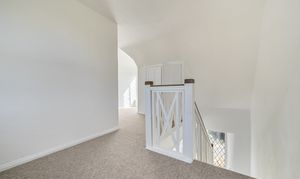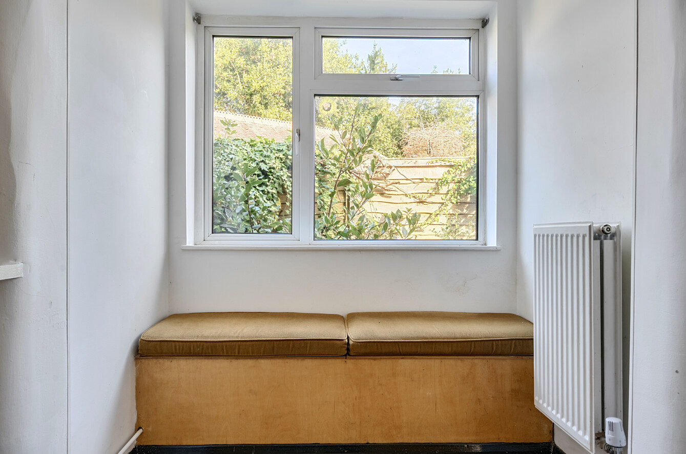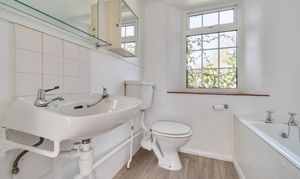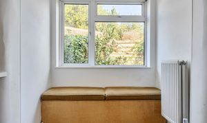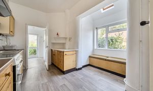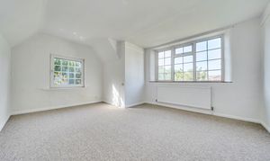 Upstairs, a generous landing leads to two well-proportioned dual-aspect bedrooms, both enjoying pleasant views over the gardens, along with a family bathroom. The layout provides comfortable accommodation that can be easily tailored to suit individual needs.
