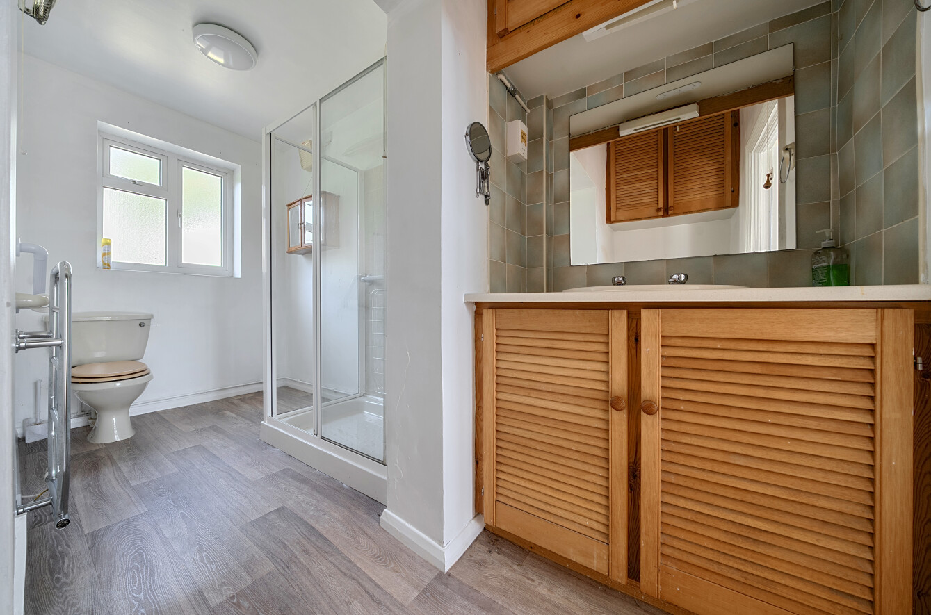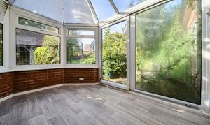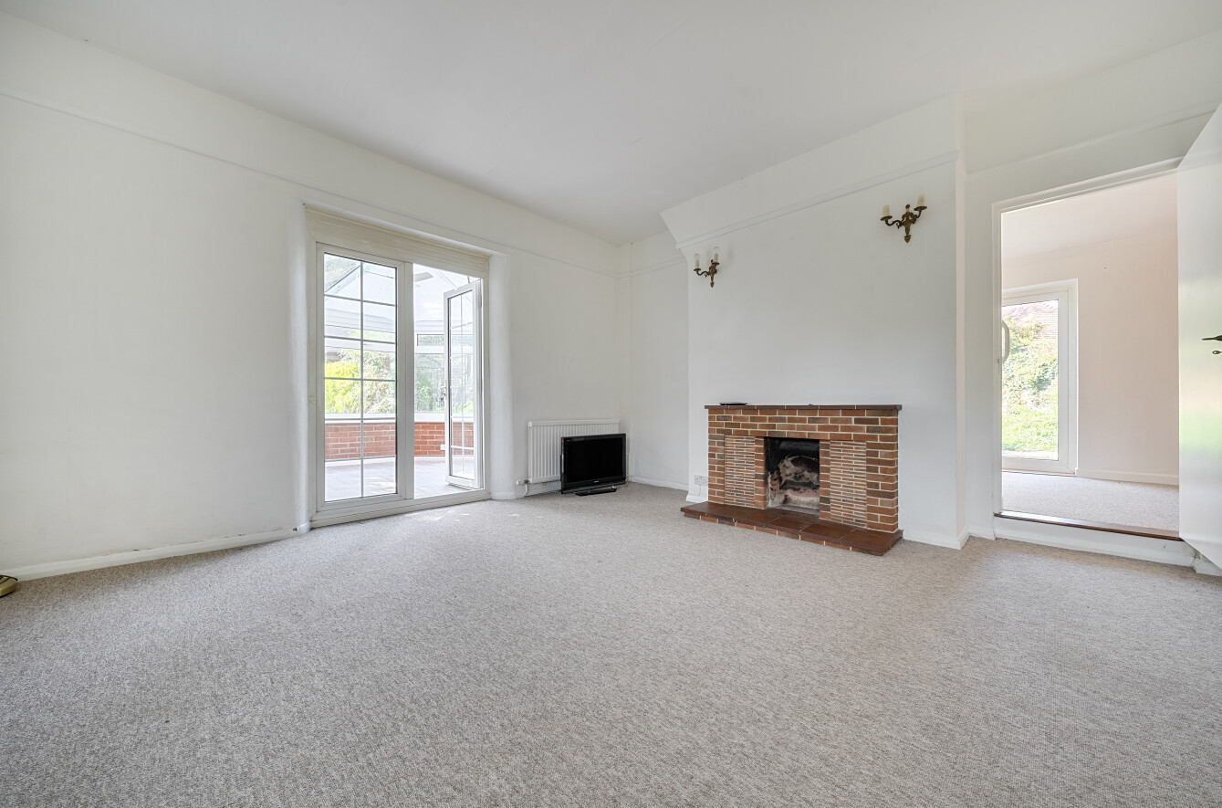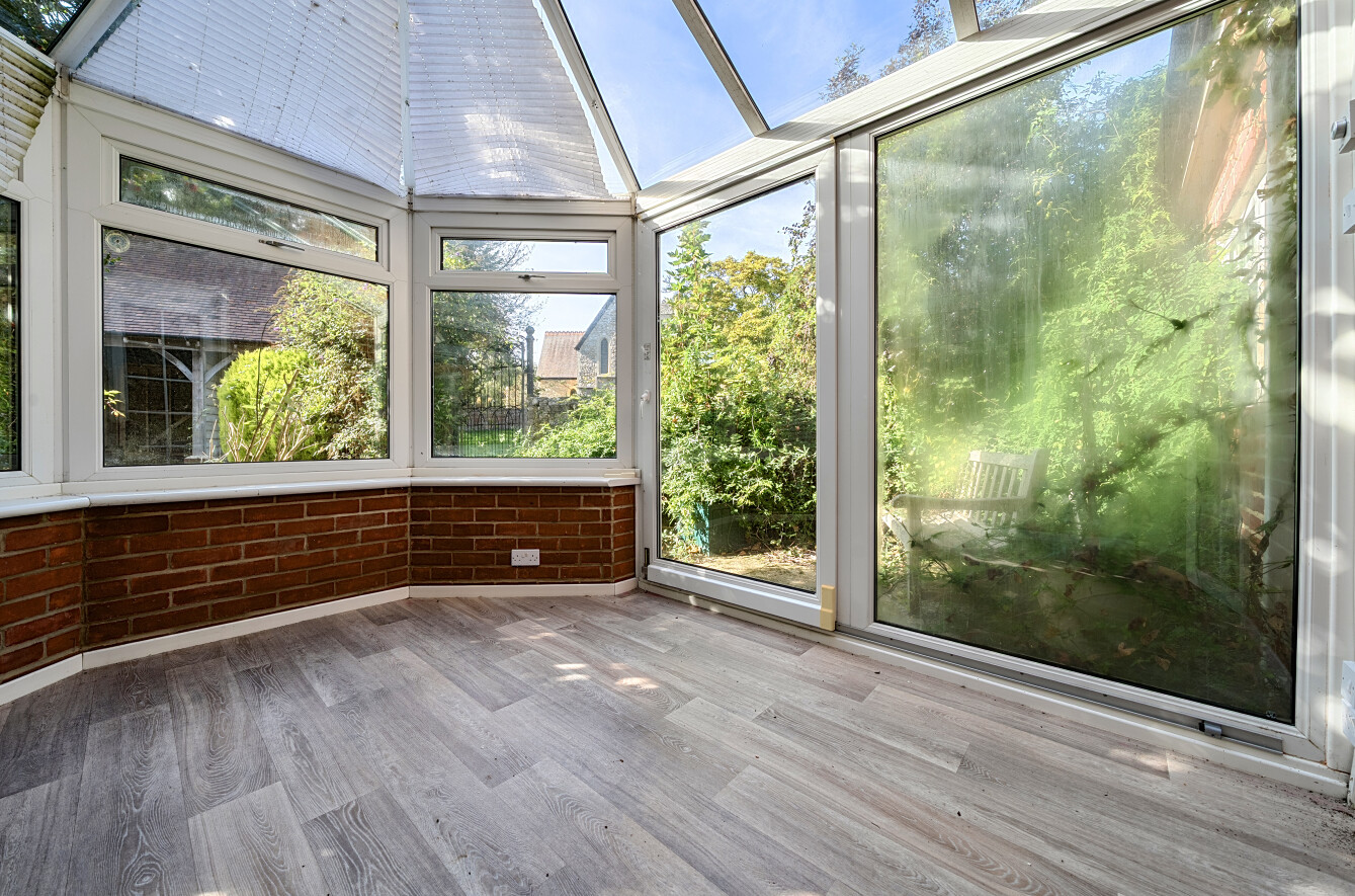 Inside, the versatile layout offers adaptable living space perfectly suited to a range of lifestyles. A welcoming entrance hall gives access to a shower room, while the dual-aspect sitting room features French doors opening into the conservatory. There is a ground-floor bedroom or reception room, also with French doors leading to the garden, offering flexibility for guests or home working. The spacious dual-aspect dining room provides an ideal setting for entertaining and the dual-aspect kitchen/breakfast room offers plenty of natural light and potential for modernisation. A practical utility room completes the ground floor.