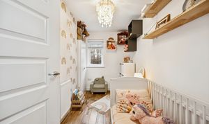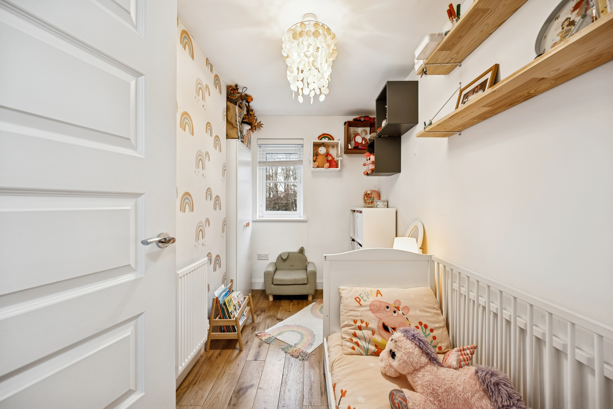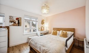 Bedroom Two sits to the rear of the property and enjoys views overlooking the garden. This is a great-size double bedroom with excellent space for additional furniture, offering a comfortable and well-balanced layout. Bedroom Three is positioned next door and provides fantastic flexibility, ideal as a study, nursery, hobby room or home office while still benefiting from the same oak flooring and peaceful garden aspect.