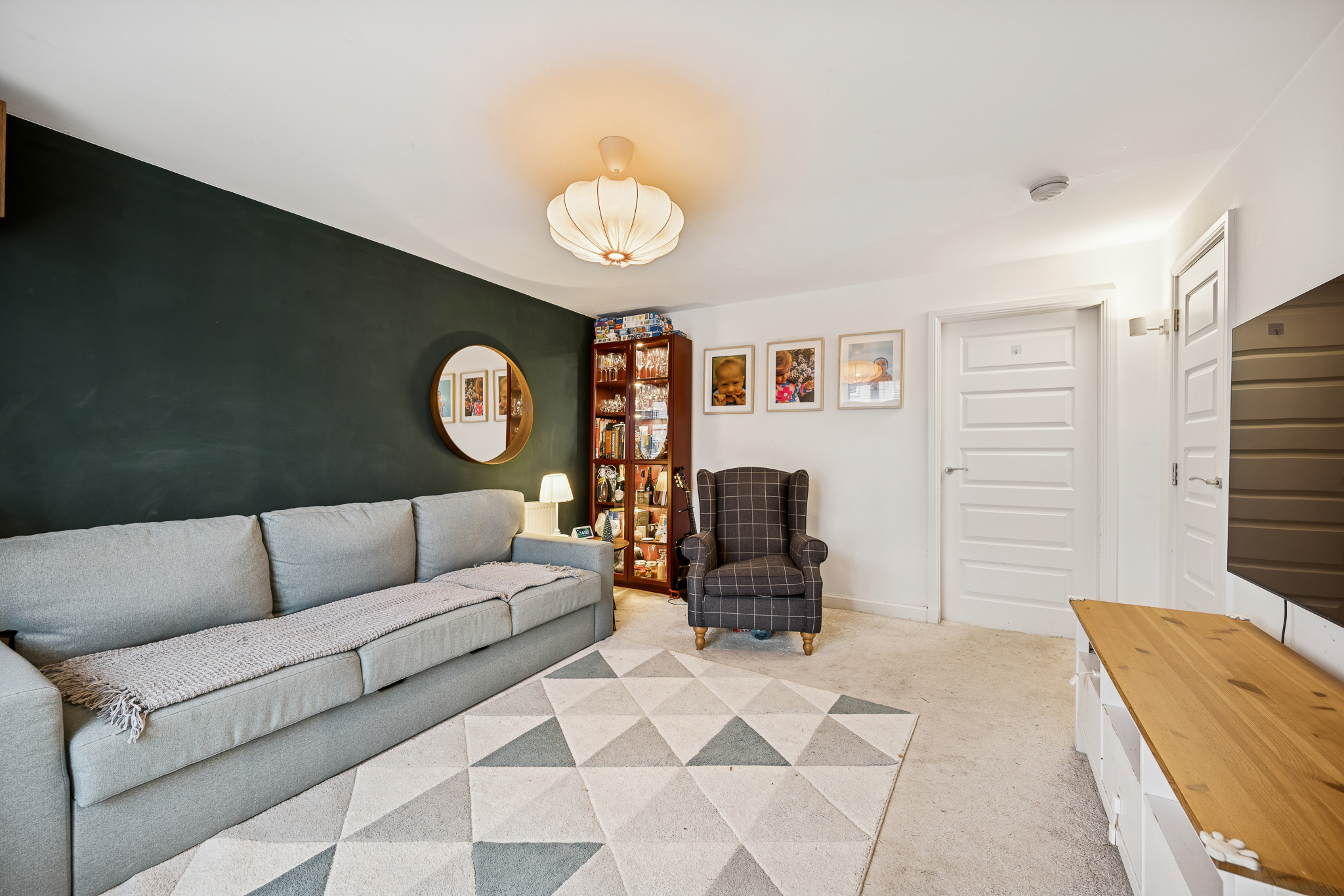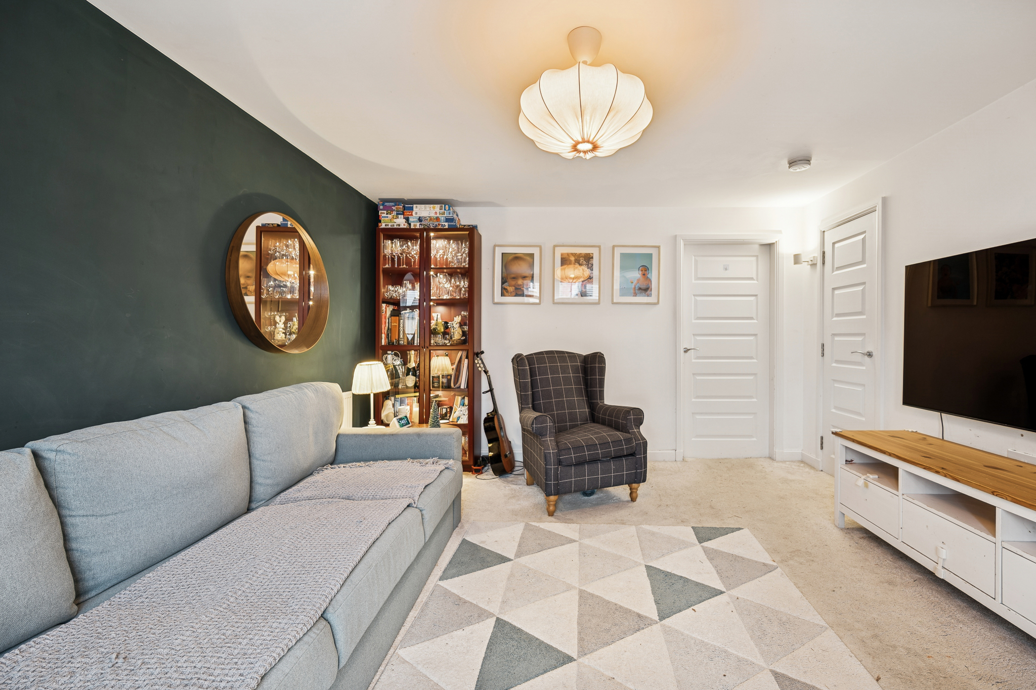 To the left, you are welcomed into the lounge, a bright and comfortable room that enjoys a pleasant aspect and a generous layout for everyday living. The flooring has been upgraded with premium carpeting for warmth underfoot, while beneath it lies the same porcelain tiling found throughout the ground floor should a future owner prefer a different finish. This space also features a handy storage cupboard beneath the stairs, which has been thoughtfully illuminated and designed to offer excellent hidden storage while keeping the room feeling organised and tidy. The lounge then flows naturally through to the kitchen at the rear of the home.