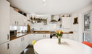 - Contemporary Upgraded Kitchen With Portuguese Full-Height Tiled Splashback and Grohe Extendable Tap