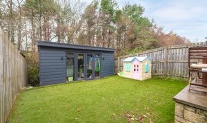 The rear garden has been carefully re-engineered to create a level, low-maintenance haven. What was once a sloping area has been fully elevated and flattened, now offering artificial grass, porcelain paving and an attractive decked area ideal for seating. A premium outdoor awning provides welcome shade during summer months and defines a sheltered dining space. A particular highlight is the fully finished garden house measuring around 5m by 3.5m. This versatile structure has been completed to an impressive standard, fully plastered and painted inside, fitted with scratch-resistant flooring, electricity, internet connection, ceiling lighting, rear windows, weather-resistant cladding and external lighting. Whether needed as a home office, studio, gym or entertainment room, it is designed for year-round use and feels very much like an extension of the home.
