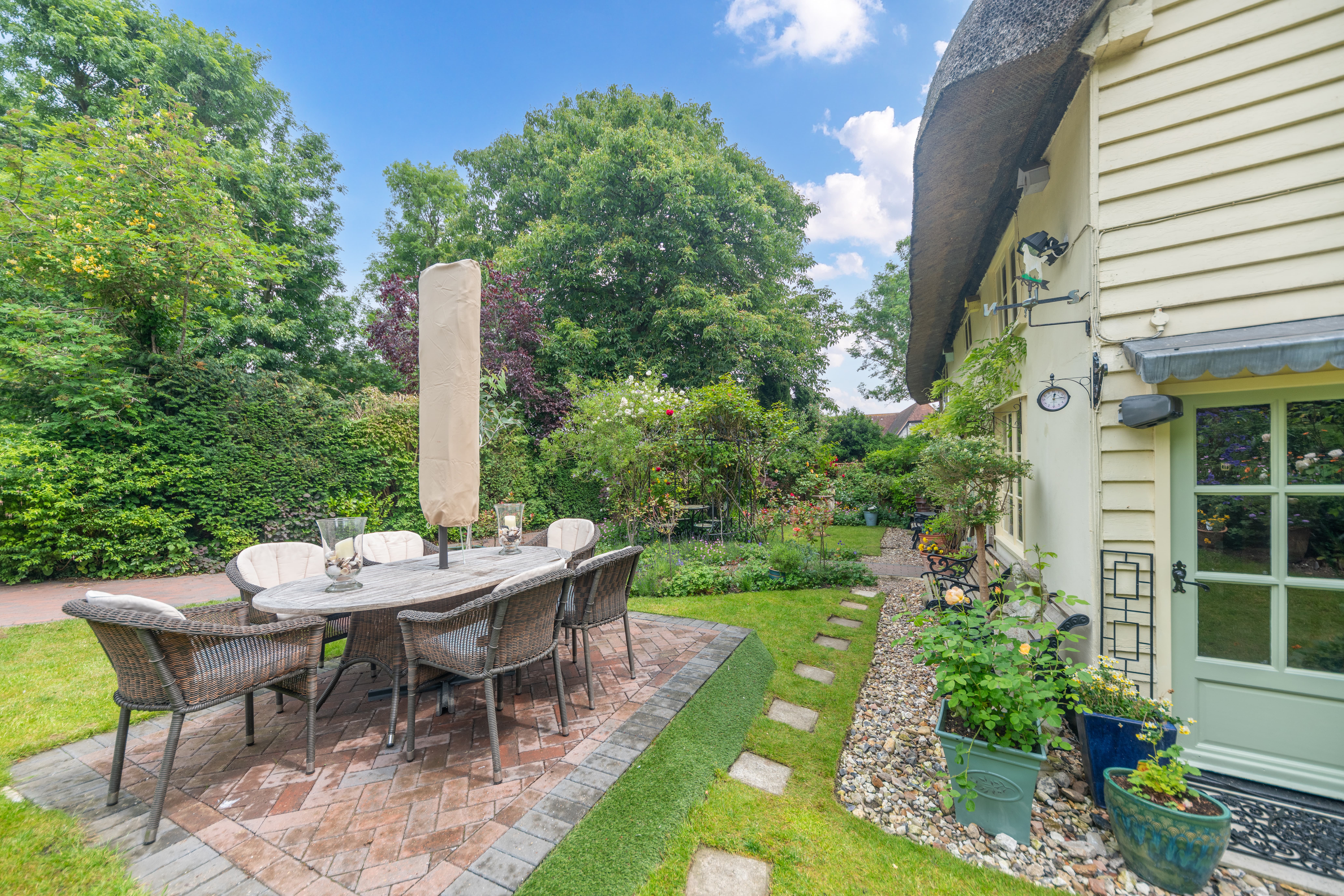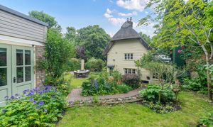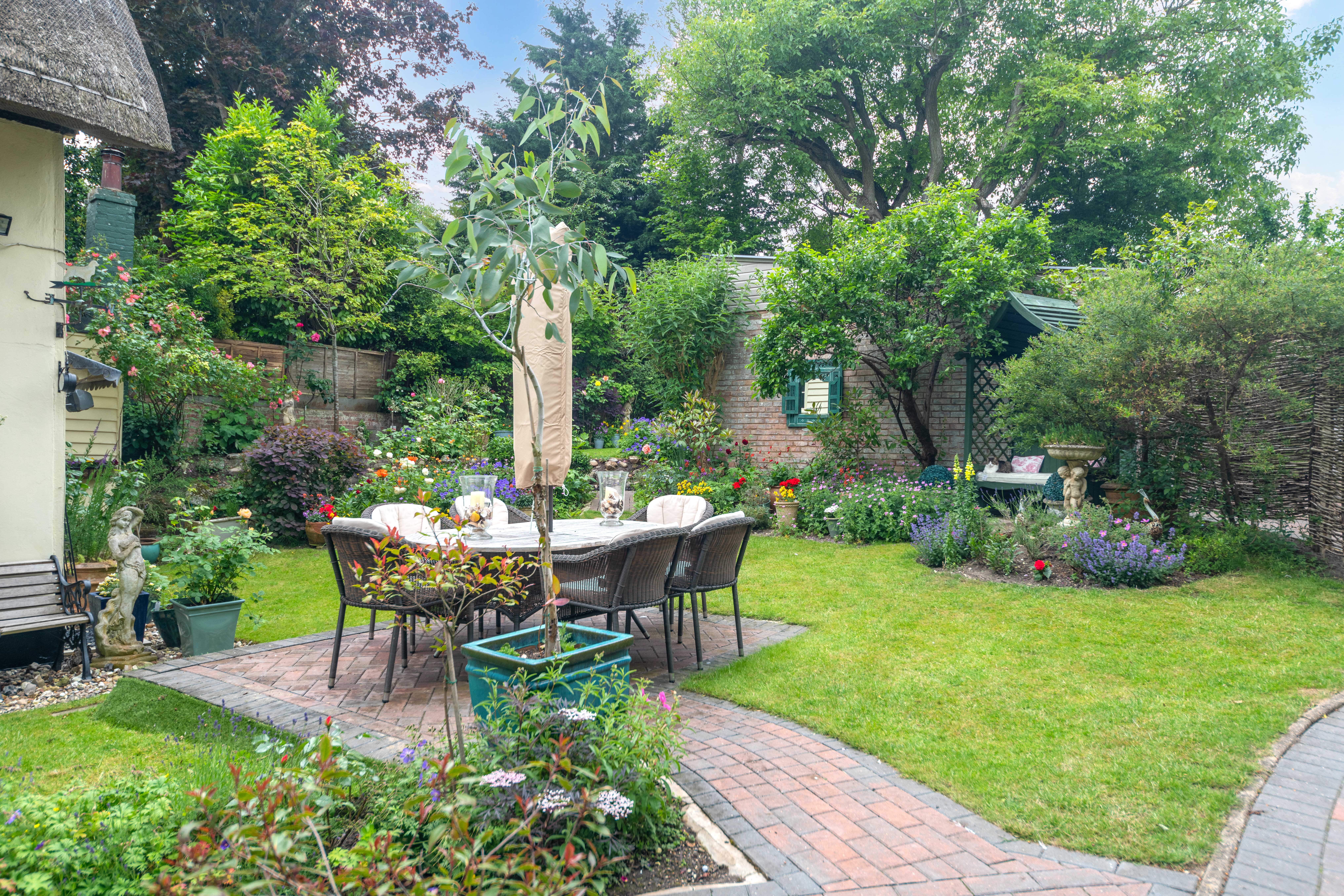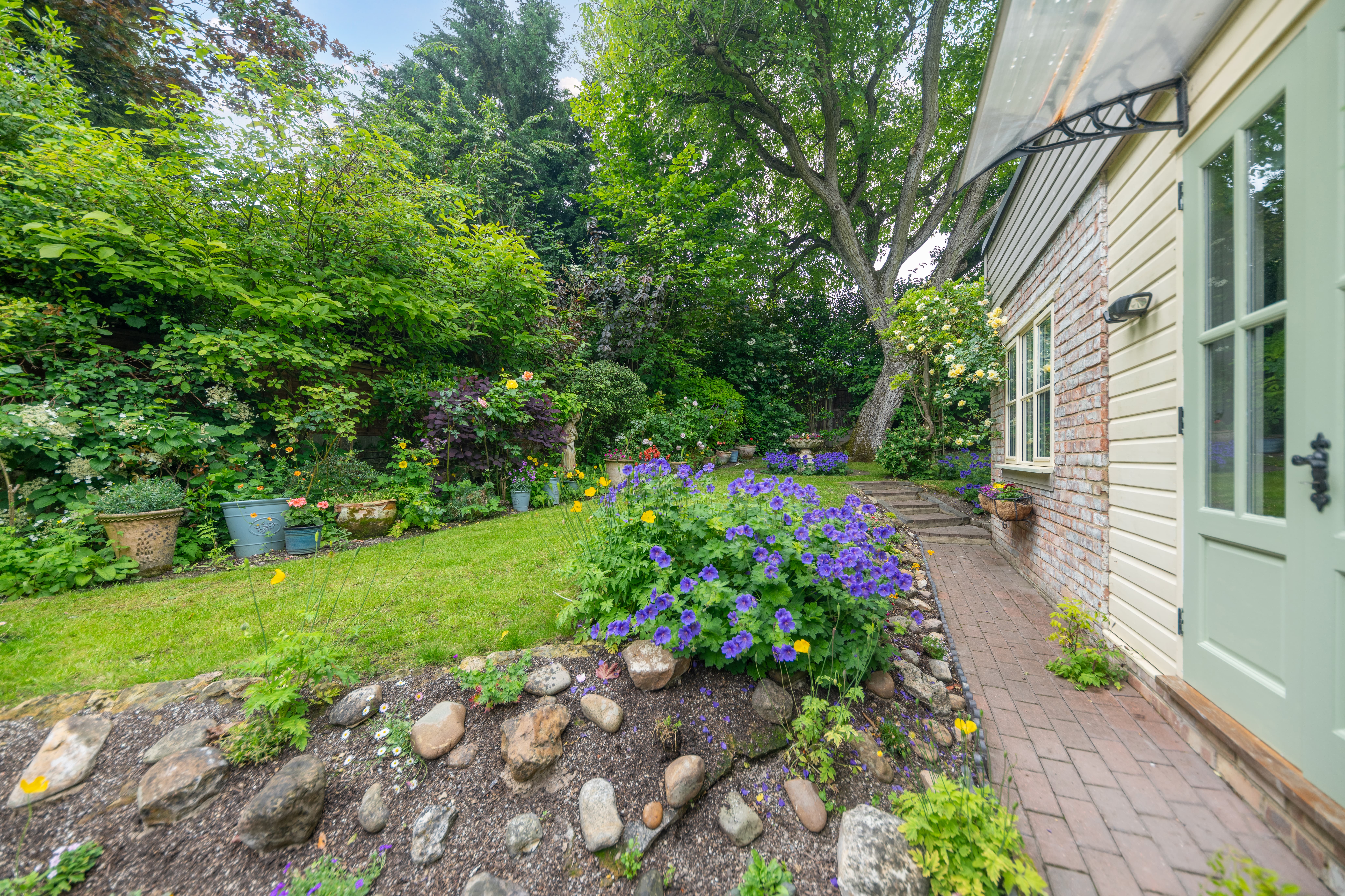 Outside, to the rear, the southwest-facing garden is a spectacular space, fully enclosed by fencing and hedgerows and offering multiple lovely spots to sit and relax in the sun. The garden is laid mainly to lawn, with a herringbone block paved patio, providing lots of space for garden furniture, enjoying meals al fresco and entertaining guests. The borders and beds have been beautifully maintained by the current owners and are teeming with colourful plants, flowers, trees and shrubs. There is also access to a large annexe, and planning permission granted for a shower and WC if desired by the new owners.