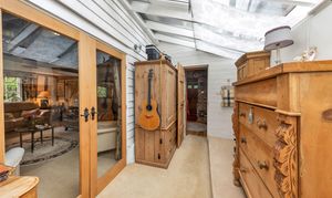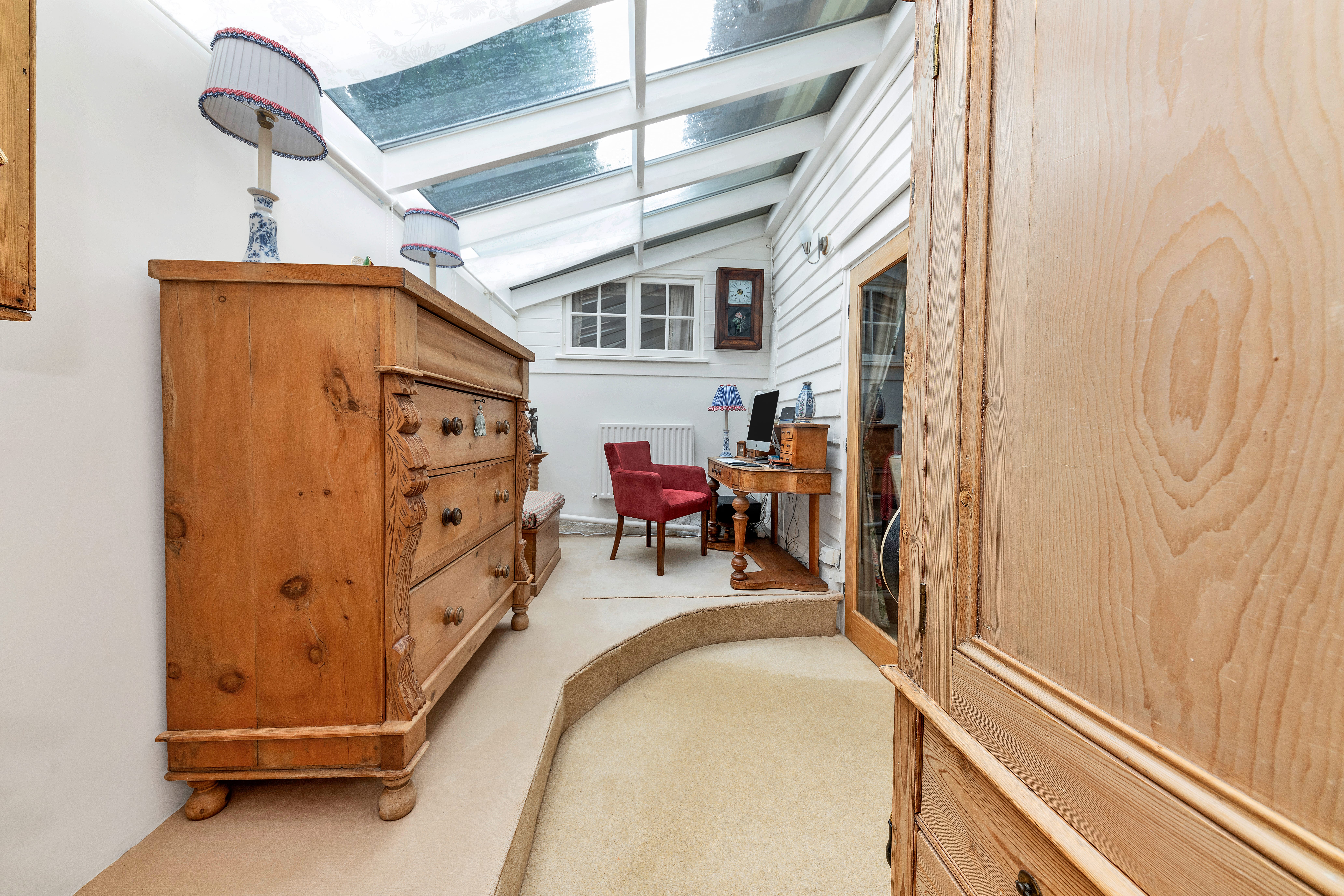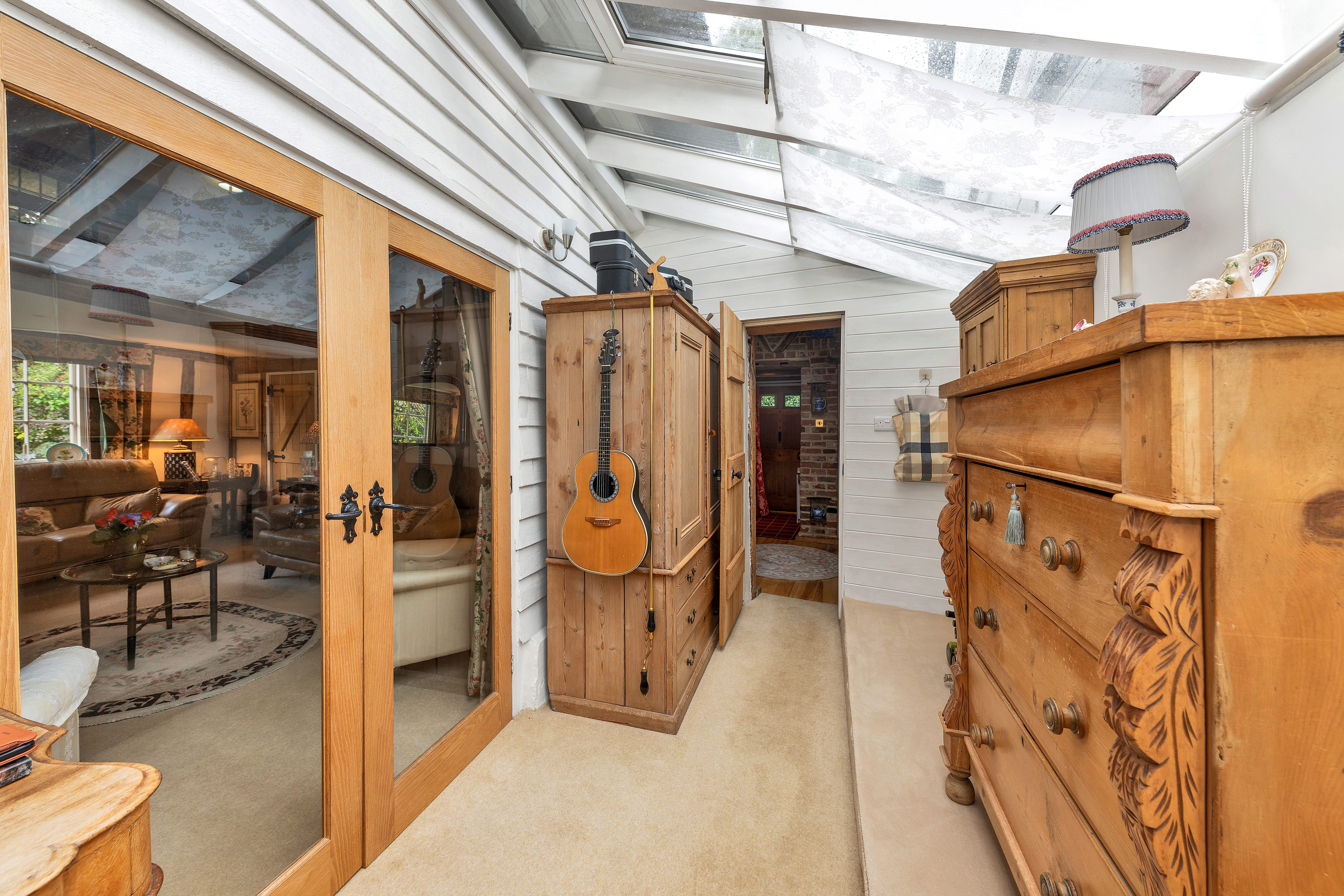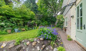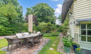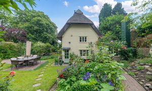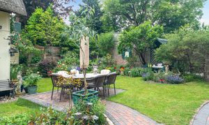 Outside, to the rear, the southwest-facing garden is a spectacular space, fully enclosed by fencing and hedgerows and offering multiple lovely spots to sit and relax in the sun. The garden is laid mainly to lawn, with a herringbone block paved patio, providing lots of space for garden furniture, enjoying meals al fresco and entertaining guests. The borders and beds have been beautifully maintained by the current owners and are teeming with colourful plants, flowers, trees and shrubs. There is also access to a large annexe, and planning permission granted for a shower and WC if desired by the new owners.