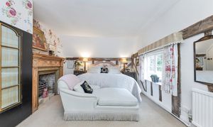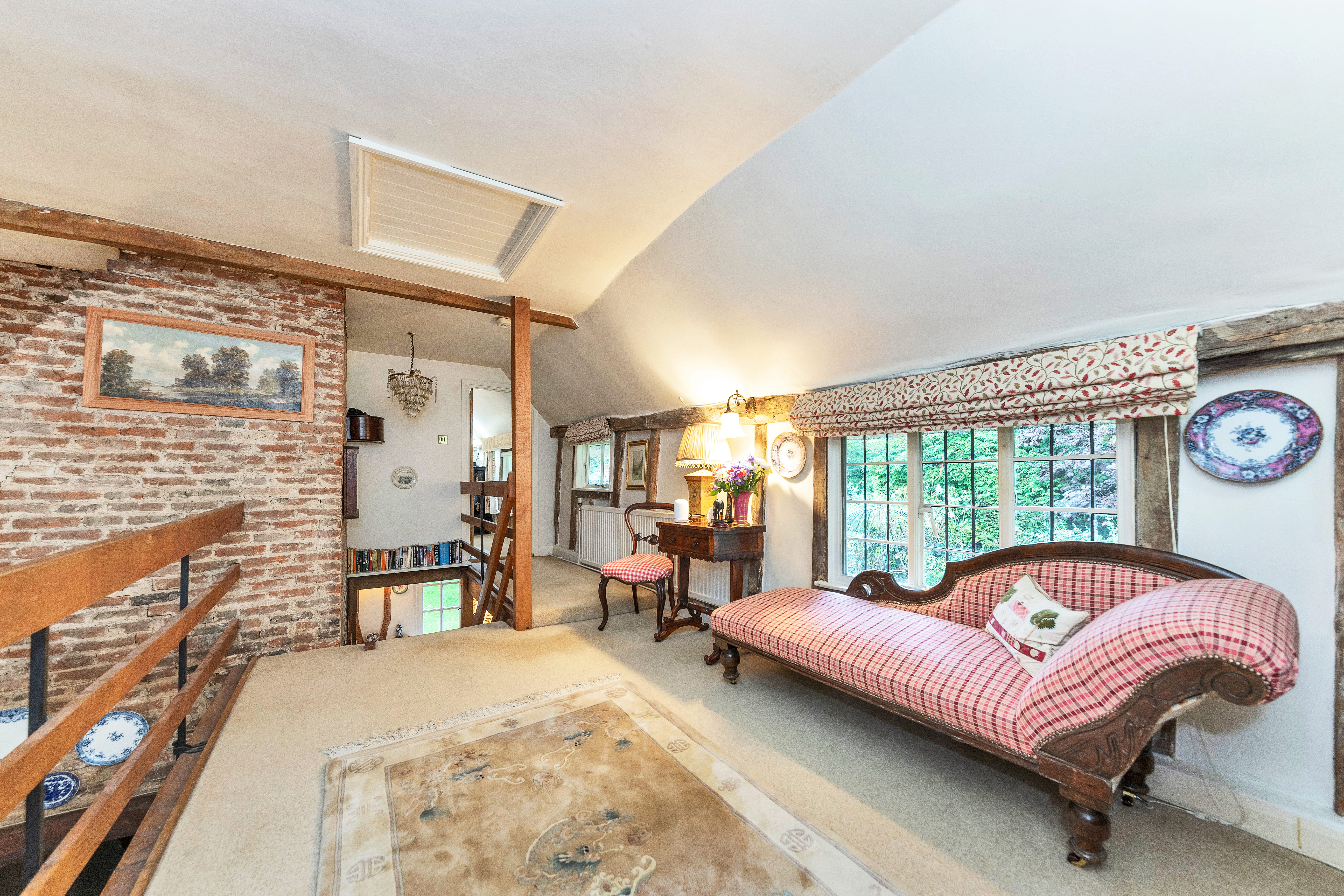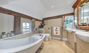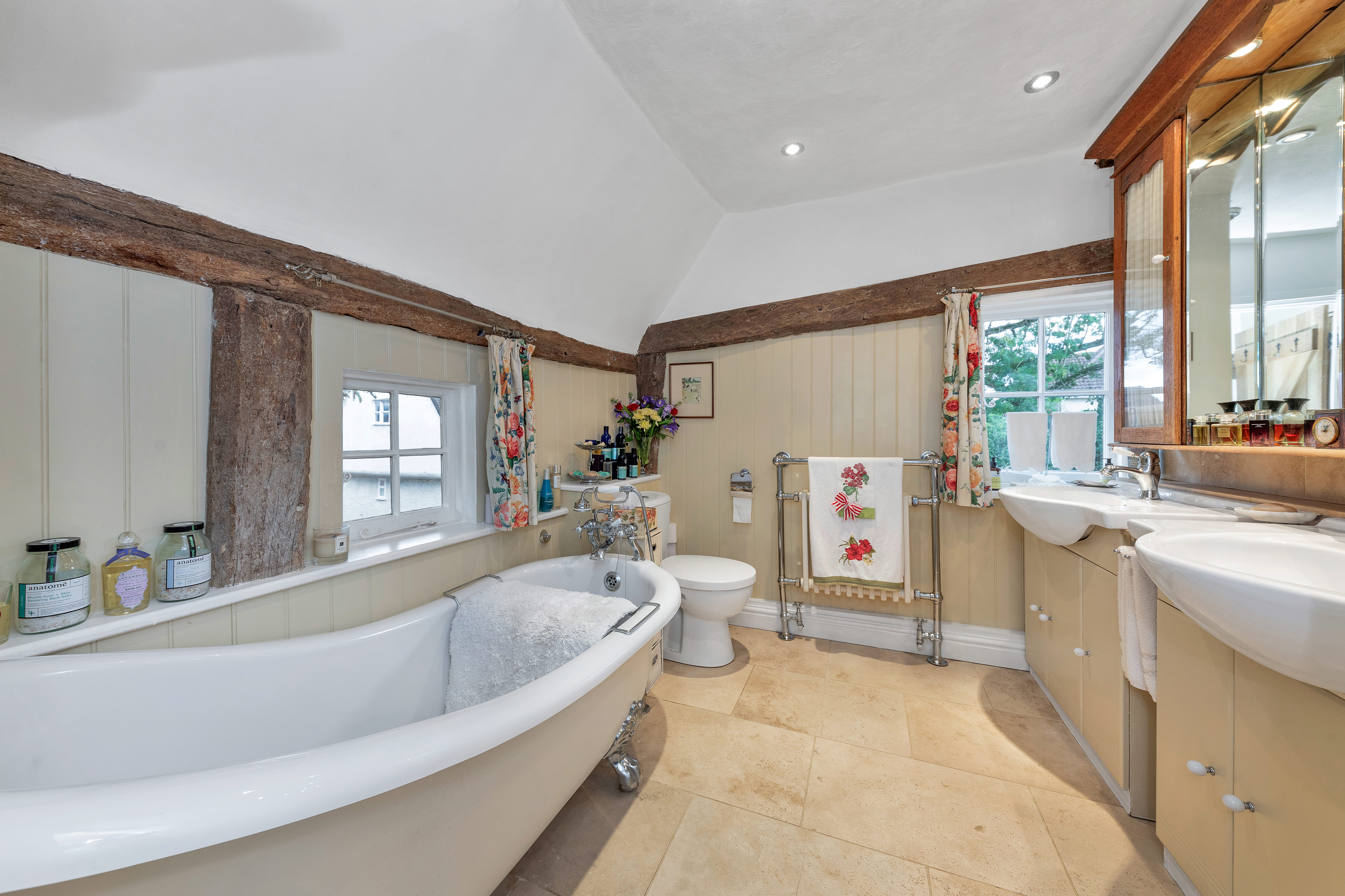 Upstairs to the first floor, this stunning period cottage continues to offer attractive and spacious accommodation, with the wide mezzanine landing leading to 2 further large bedrooms, excellent integrated storage, and a family bathroom comprising a freestanding bath, a double sink, a WC and a heated towel rail.