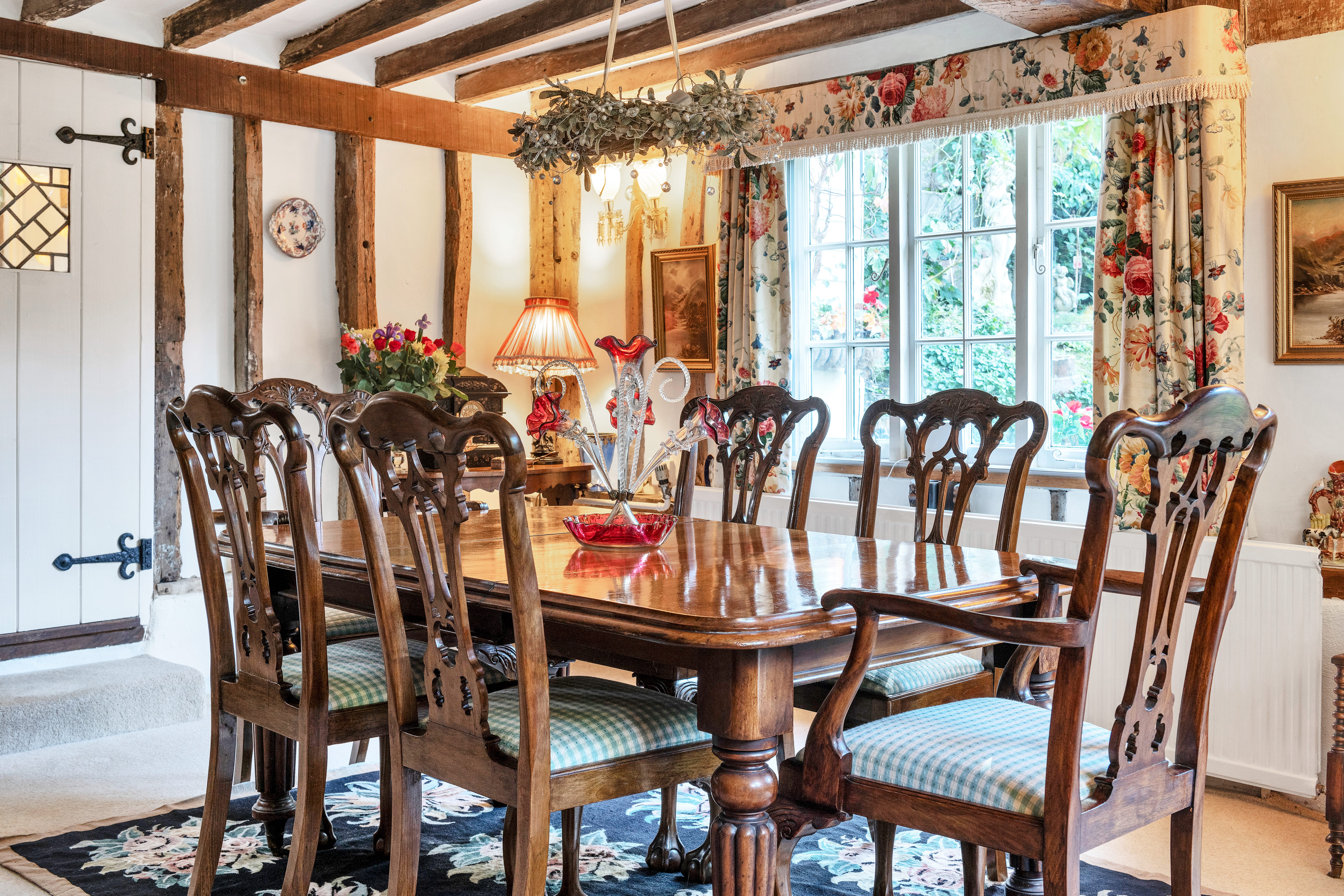The lounge is equally truly beautiful, with a large inglenook fireplace, exposed brick chimney breast, vaulted ceilings with a mezzanine to the first floor, plush carpets, exposed beams and upstands, a window and door to the side of the property, double internal doors through to a large and beautifully decorated study, and ample space for a wide variety of lounge and storage furniture. The dining room is another and beautifully decorated reception space, with windows and a door to the garden, exposed beams, upstands and brickwork, an working open inglenook fireplace with a electric stove, plush carpets, sconce lighting, and lots of space for a large dining table, chairs and storage furniture.
