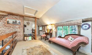 Upon stepping inside, the entrance hallway is beautifully decorated and welcoming, enjoying stunning period features, exposed beams, upstands and brickwork, vaulted ceilings, wood flooring, room for furniture, and doors through to the downstairs living space, including an ideally situated cloakroom WC.