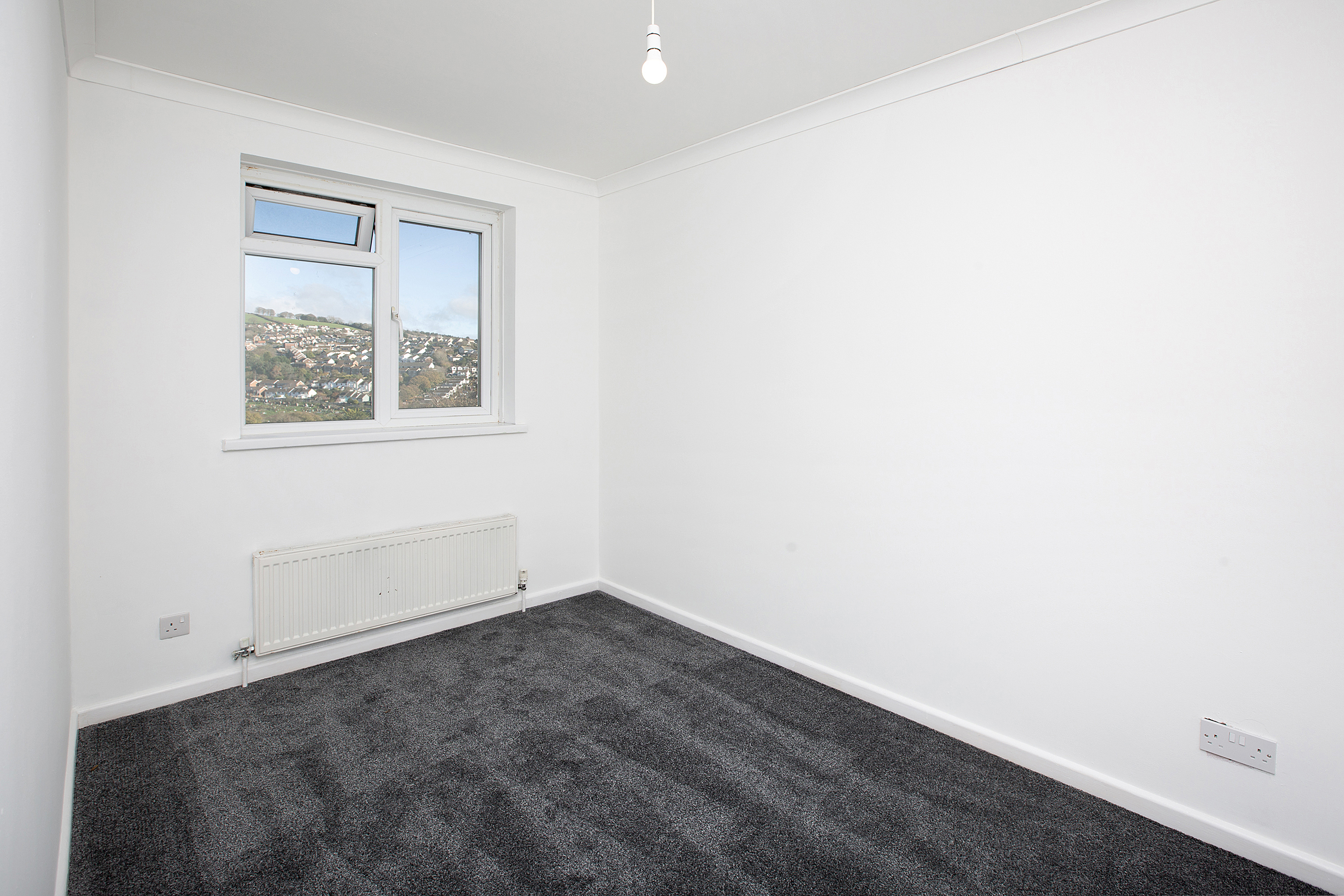Ascending the stairs to the first floor, the landing leads you to the bedrooms and bathroom. The tiled family bathroom comprises a corner bath with electric shower overhead, WC, wash hand basin with under sink cabinet, ladder style towel heater and an obscure window facing the rear of the property. The main bedroom has a window overlooking the front garden with a large wardrobe/closet and the second bedroom has a window overlooking the rear garden and open views towards the top of Teignmouth.