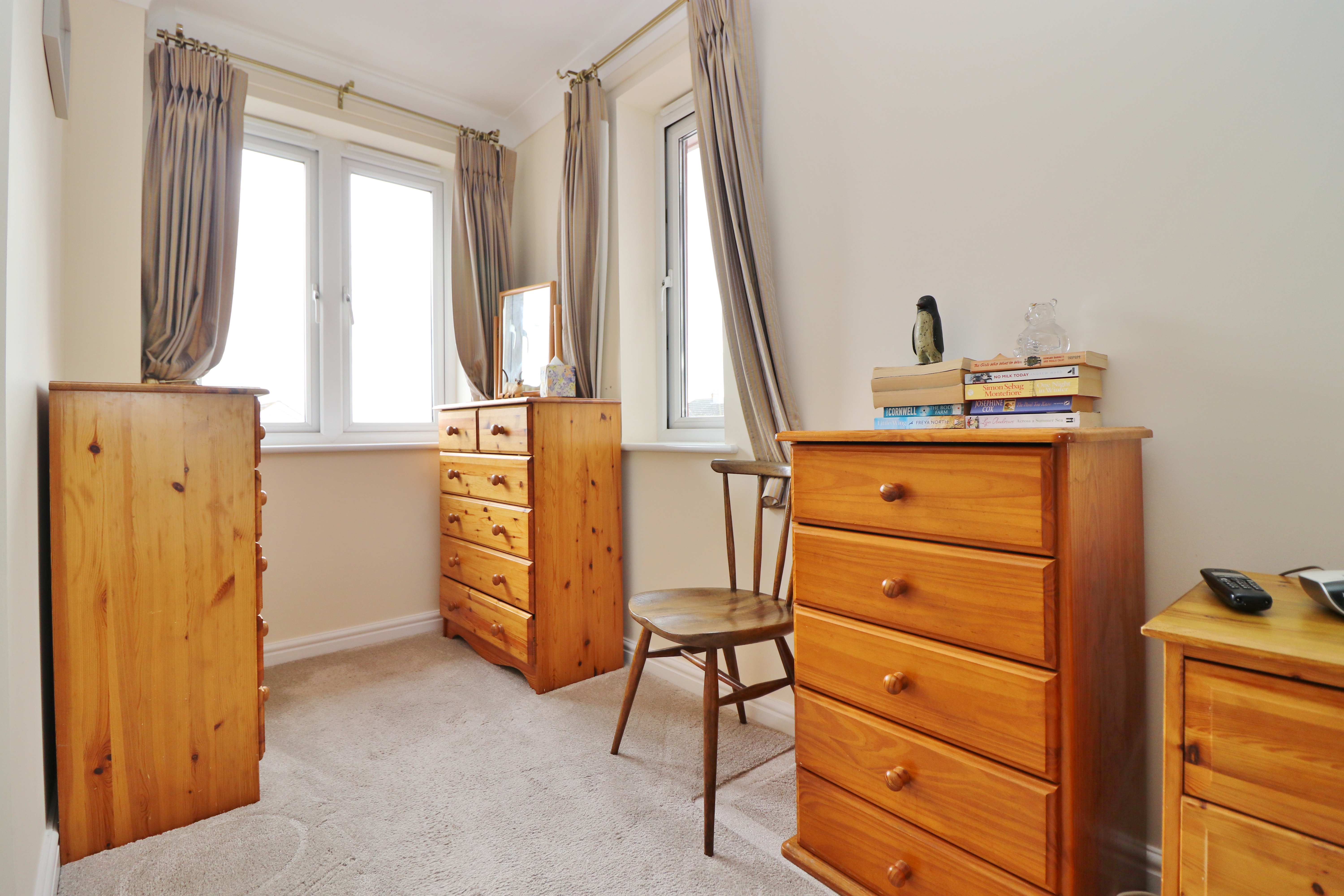 The good size double bedroom has a built-in wardrobe and two windows facing the front, whilst the fully tiled shower room comprises a vanity wash hand basin with cupboards below, double width, walk-in shower cubicle, WC and an extractor fan.