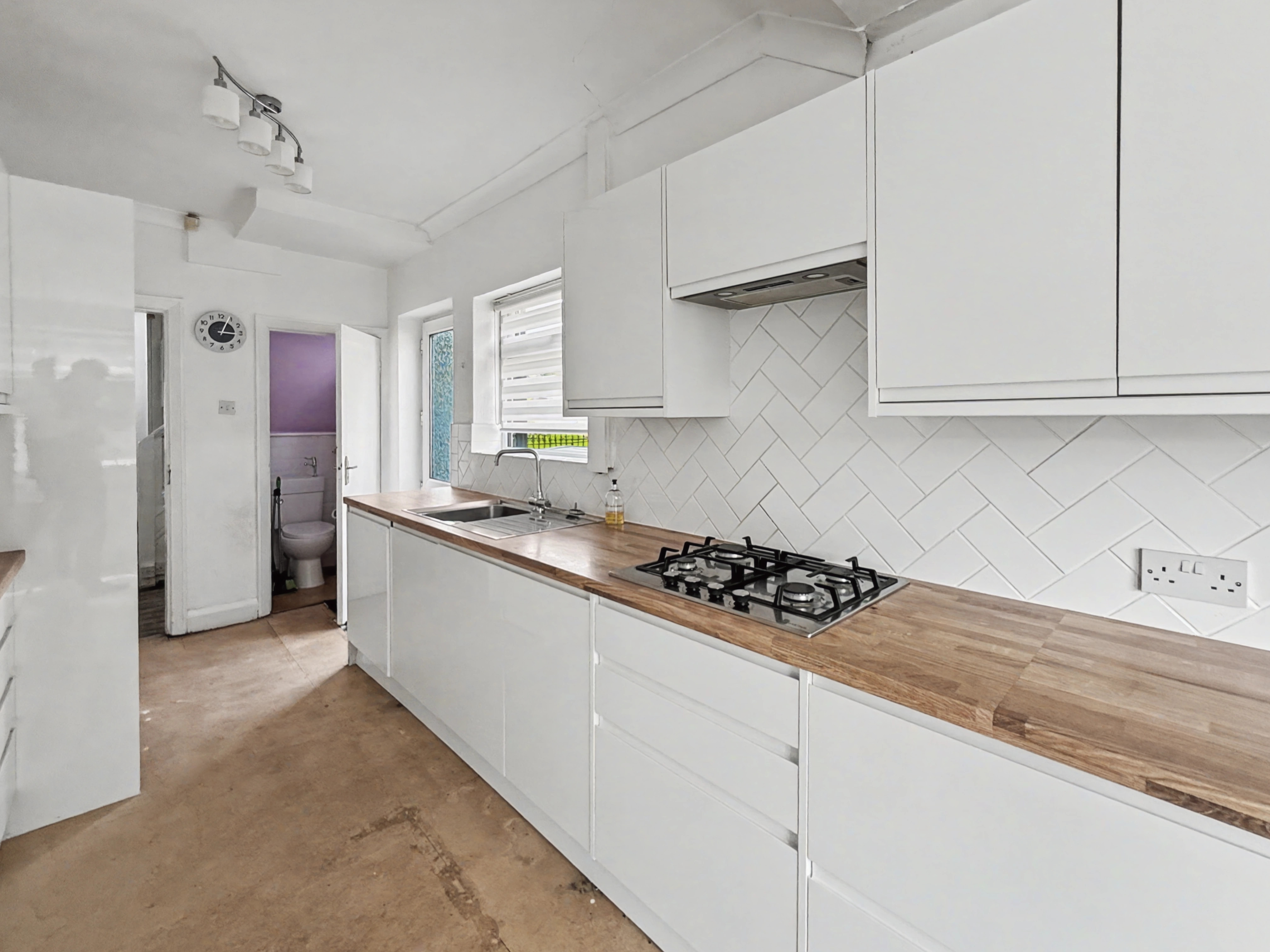 From the kitchen you have access to the guest wc, with further back door access to the back garden.