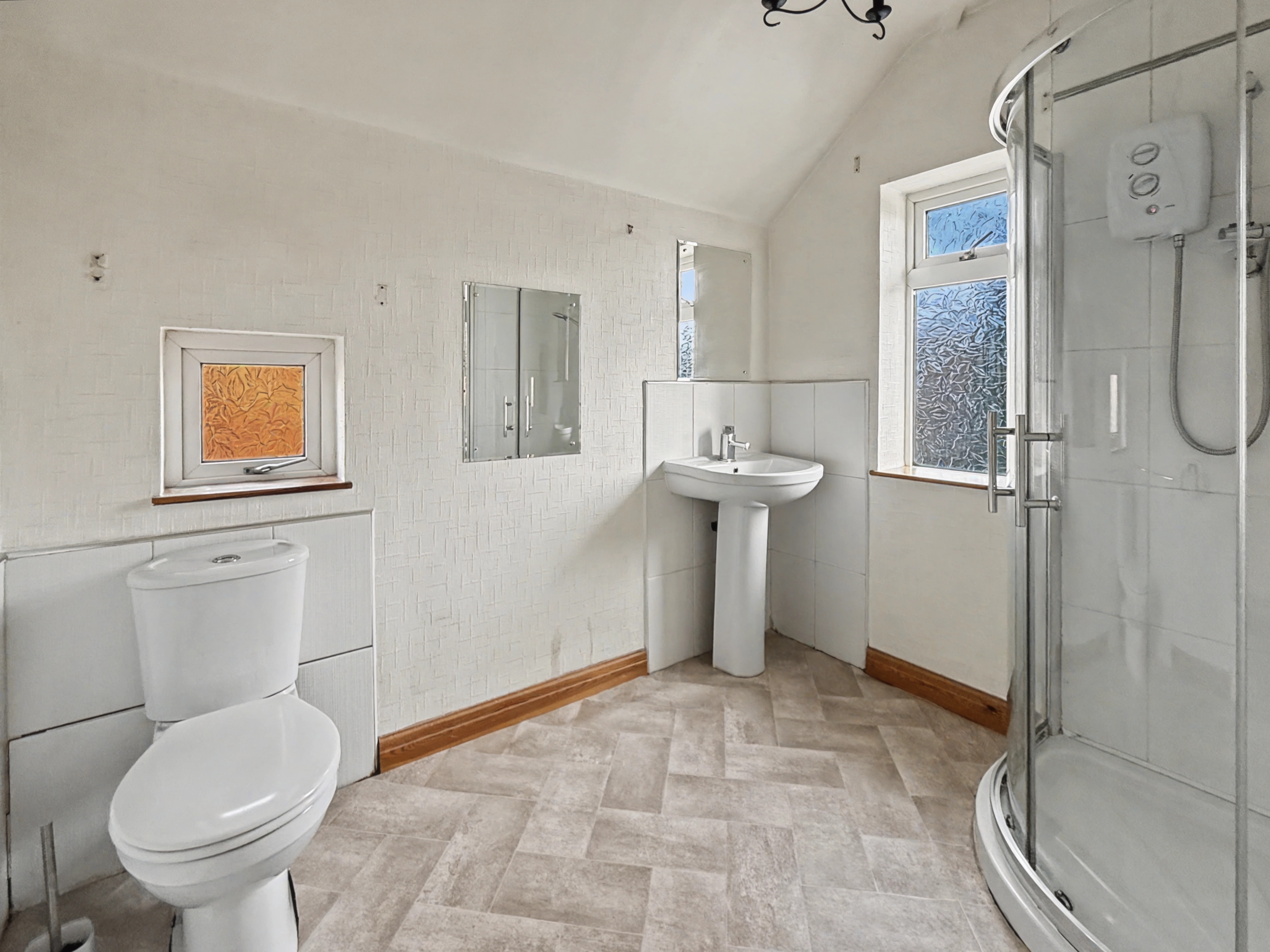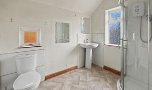 The house features three well-appointed bedrooms, two doubles and single, each designed to provide comfort and privacy. The main bathroom offers a white three piece suite including sink, separate shower and wc .