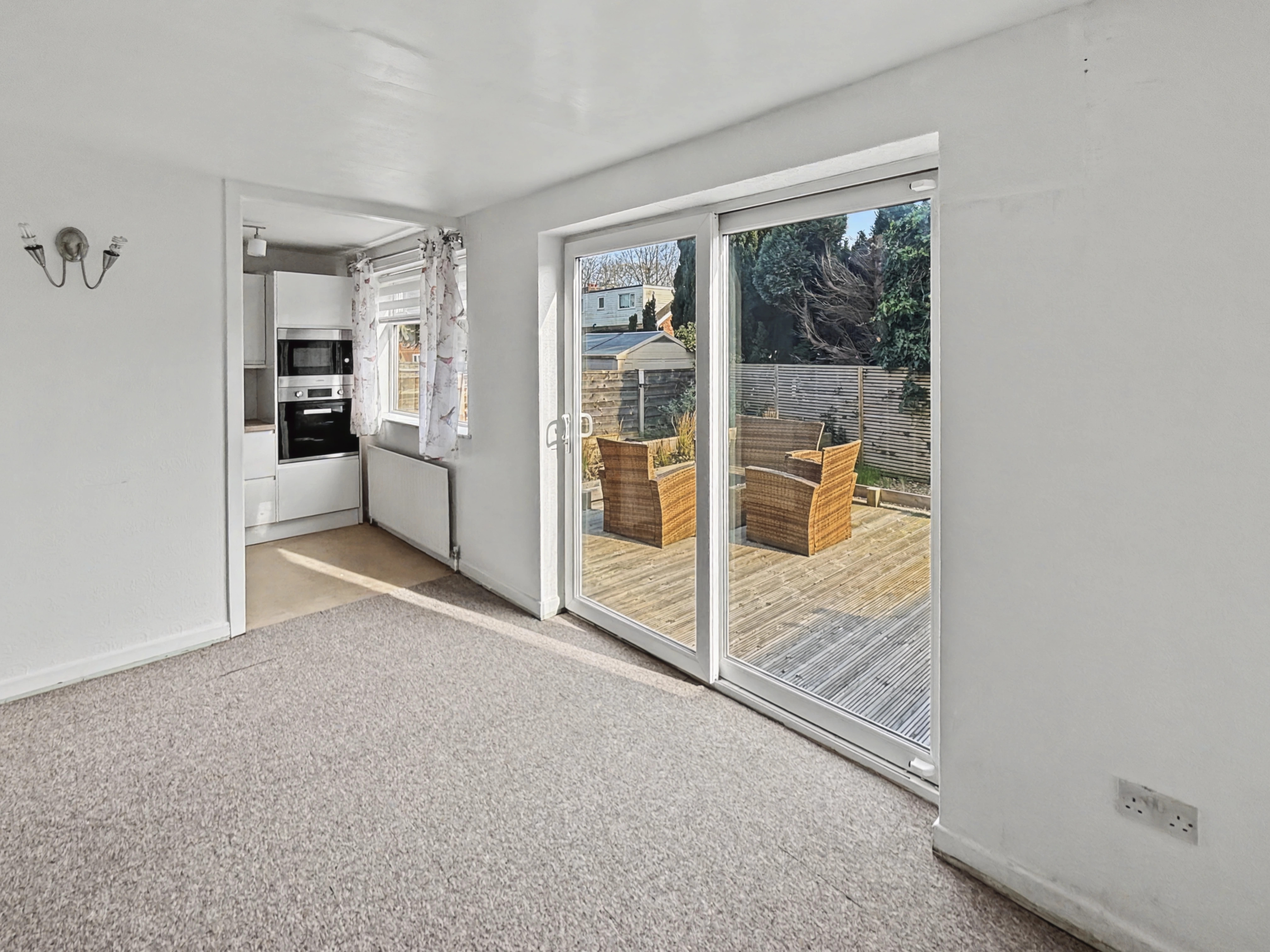 Step inside to a bright and welcoming hallway, with access to the front reception room. With bay window feature, which floods the space with plenty of light. The open plan layout seamlessly connects to the second reception room and further dining room, allowing for effortless flow and interaction among family and friends. Patio doors open out to the decked area and private garden.