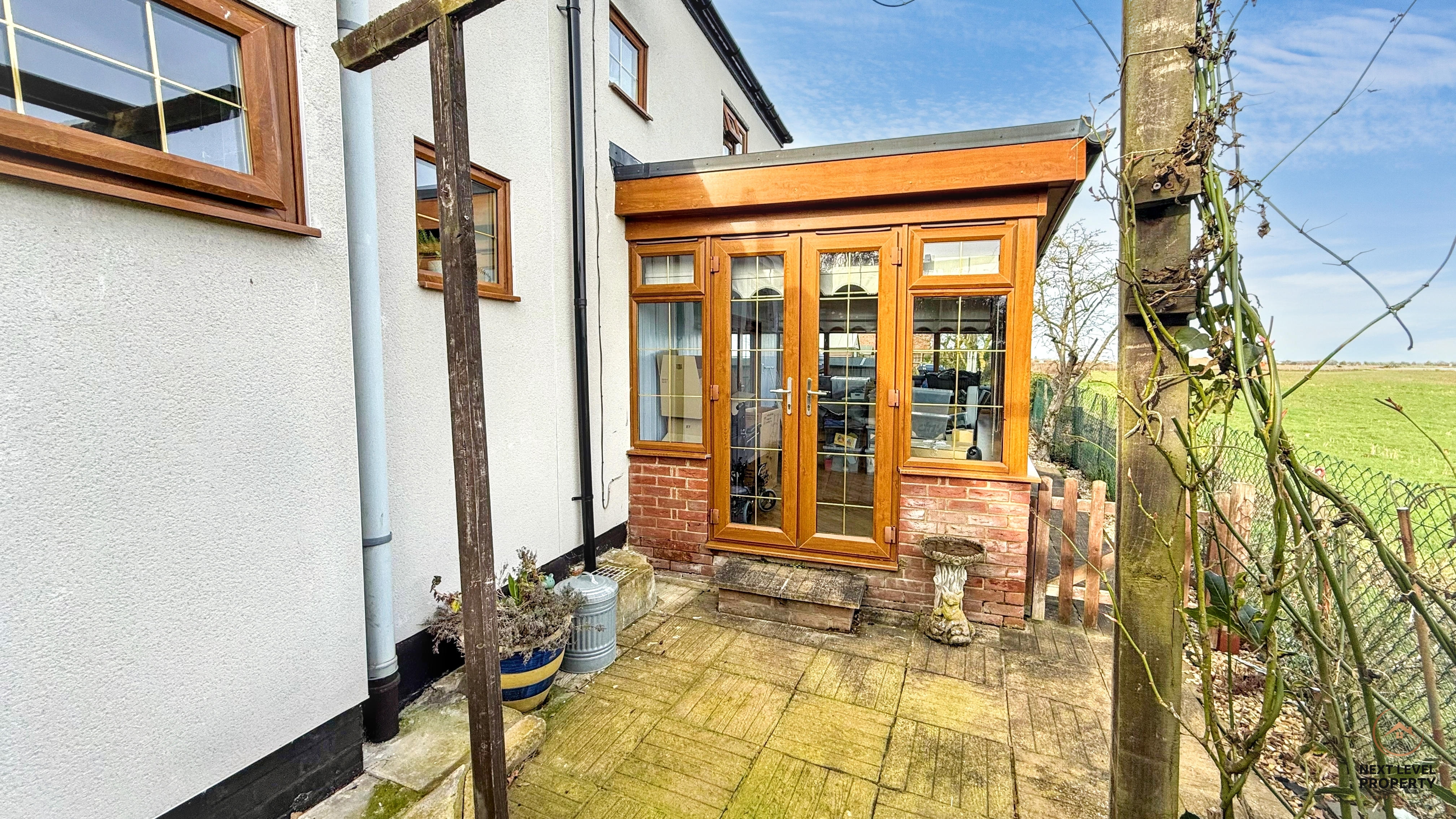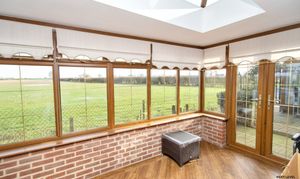 Also enjoying delightful views across open arable fields, this second conservatory offers a wonderful additional reception space. Built with a brick base and uPVC glazing above, it feels solid yet light-filled, creating a comfortable year-round setting to relax or entertain. uPVC French doors open directly onto the garden, allowing you to step effortlessly outside and fully embrace the surrounding countryside.