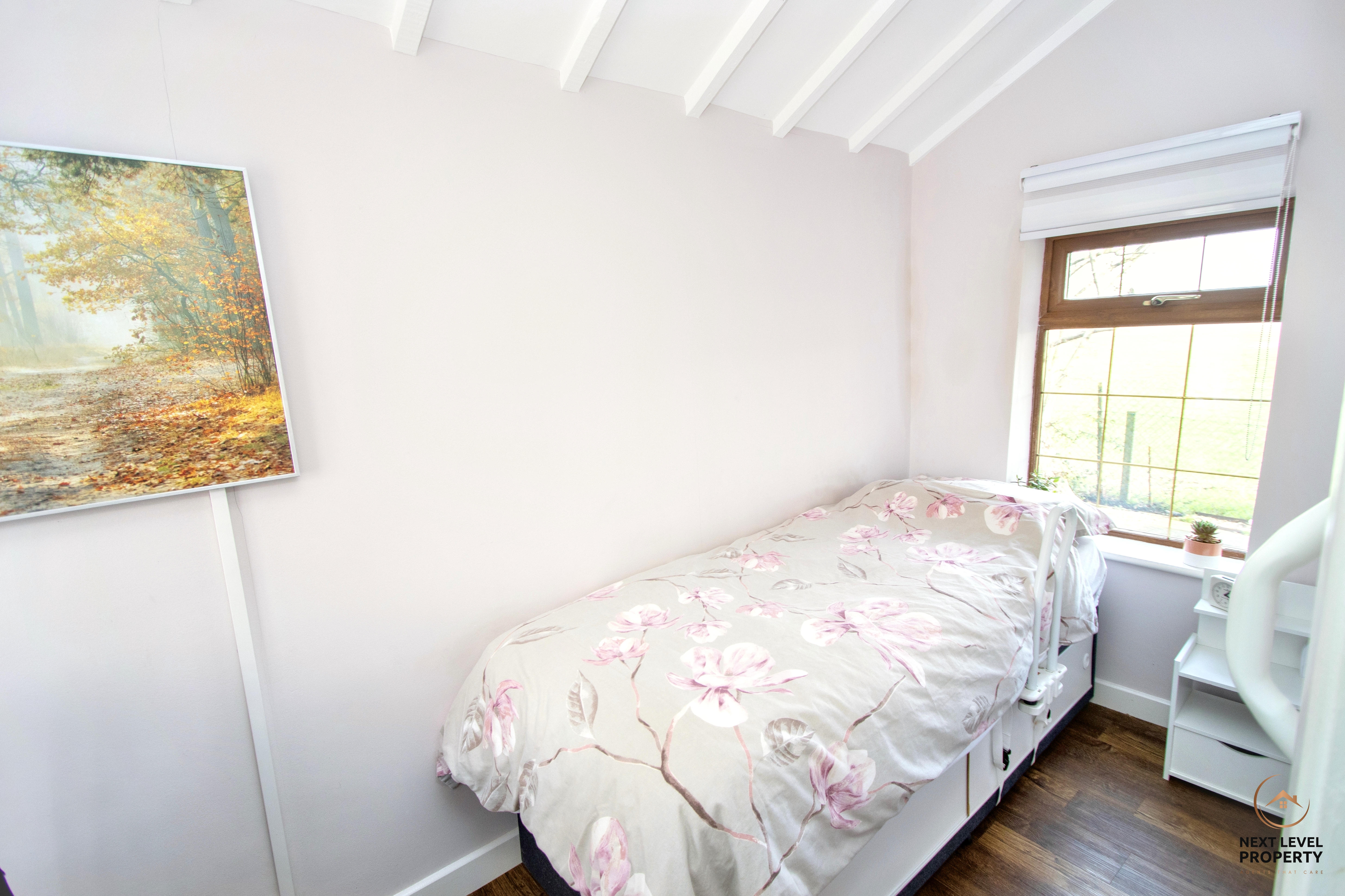 A well-proportioned single bedroom positioned to the front of the property, with a uPVC double glazed window allowing natural light to flow in. Heated by an electric heater for independent comfort, this room would make an ideal child’s bedroom, guest room, dressing room or dedicated home office — offering flexibility to suit a variety of needs.