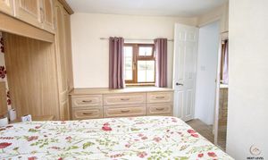 A comfortable double bedroom designed with both style and practicality in mind. A comprehensive range of fitted wardrobes, drawer units and over-bed storage provides excellent organisation, while matching bedside cabinets create a cohesive and streamlined finish. The result is a restful and clutter-free retreat, perfectly suited to unwinding at the end of the day.