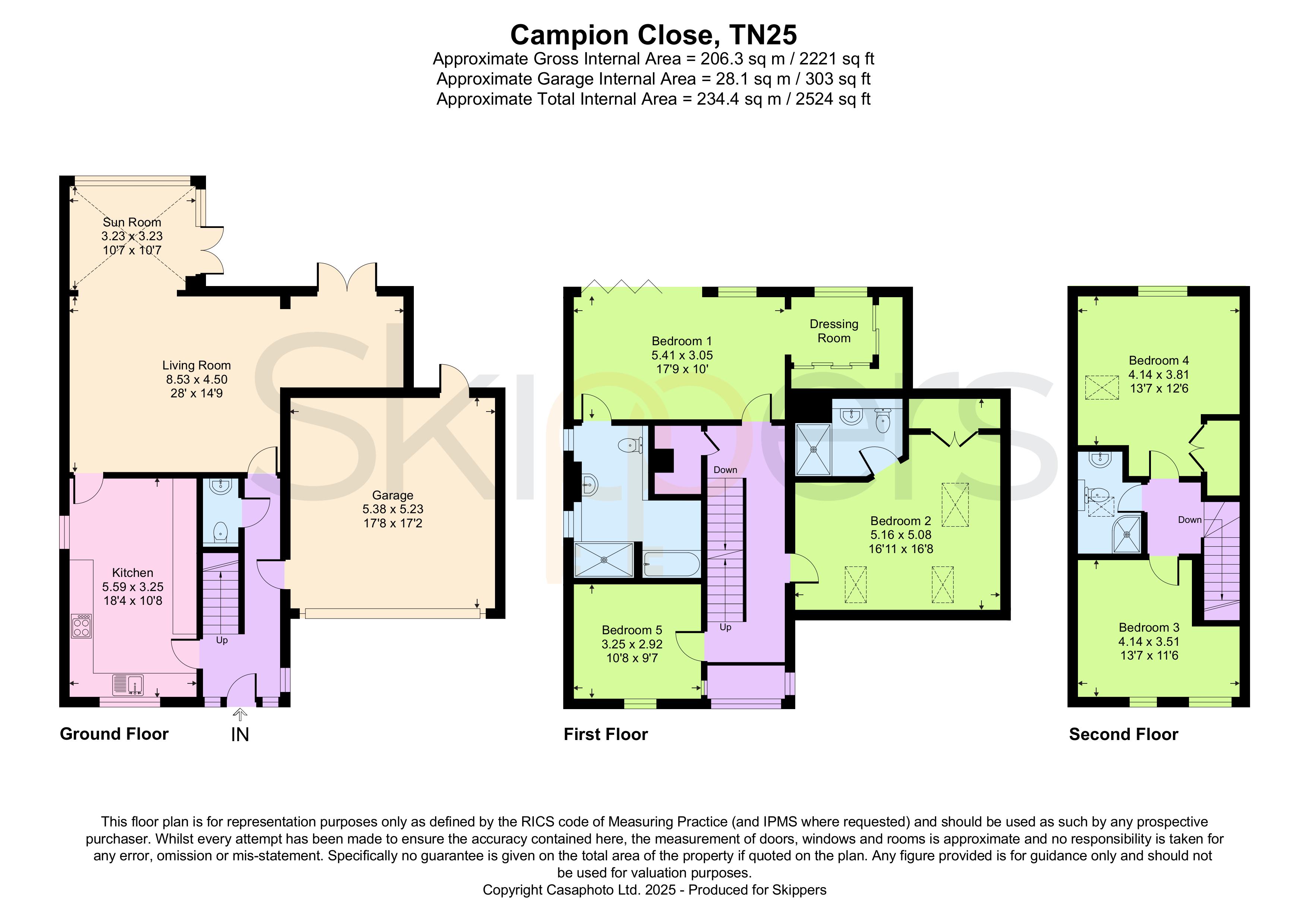 Upstairs, the property offers five well-proportioned bedrooms, including a superb principal suite with its own en-suite bathroom/shower room. Bedroom two is served by its own en- suite a modern family bathroom serves bedroom three four and five, finished with quality fittings and tiled surrounds.