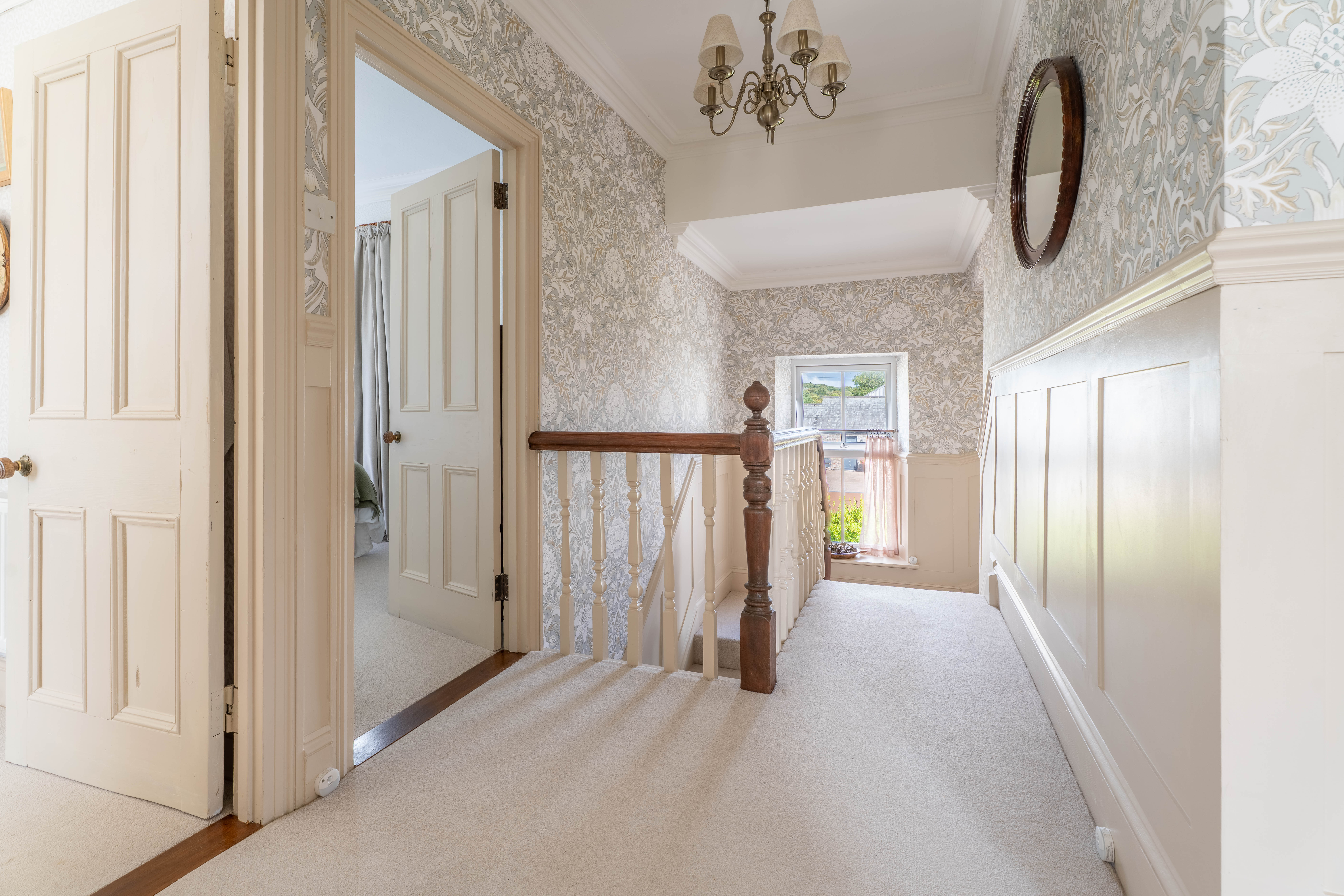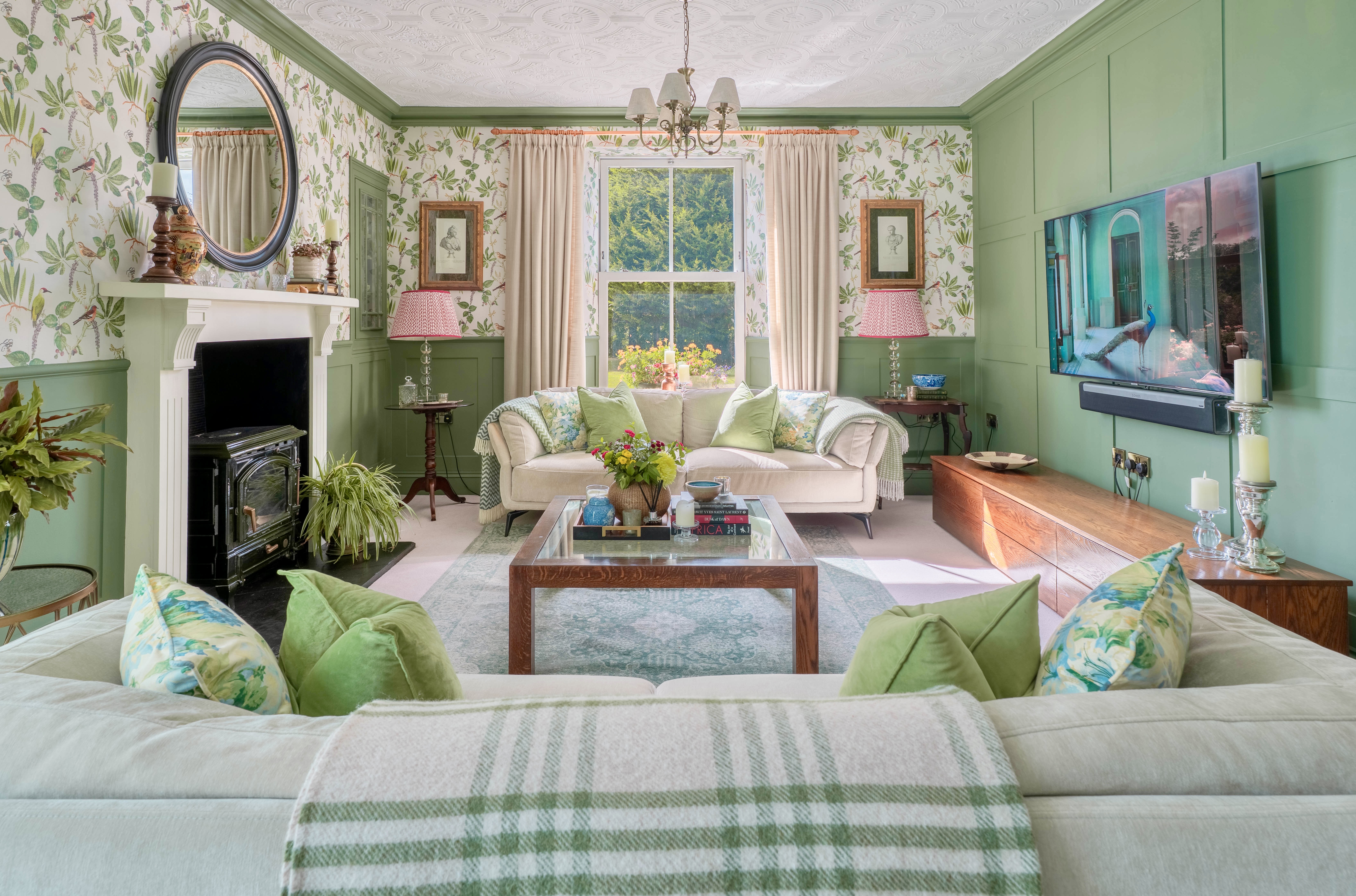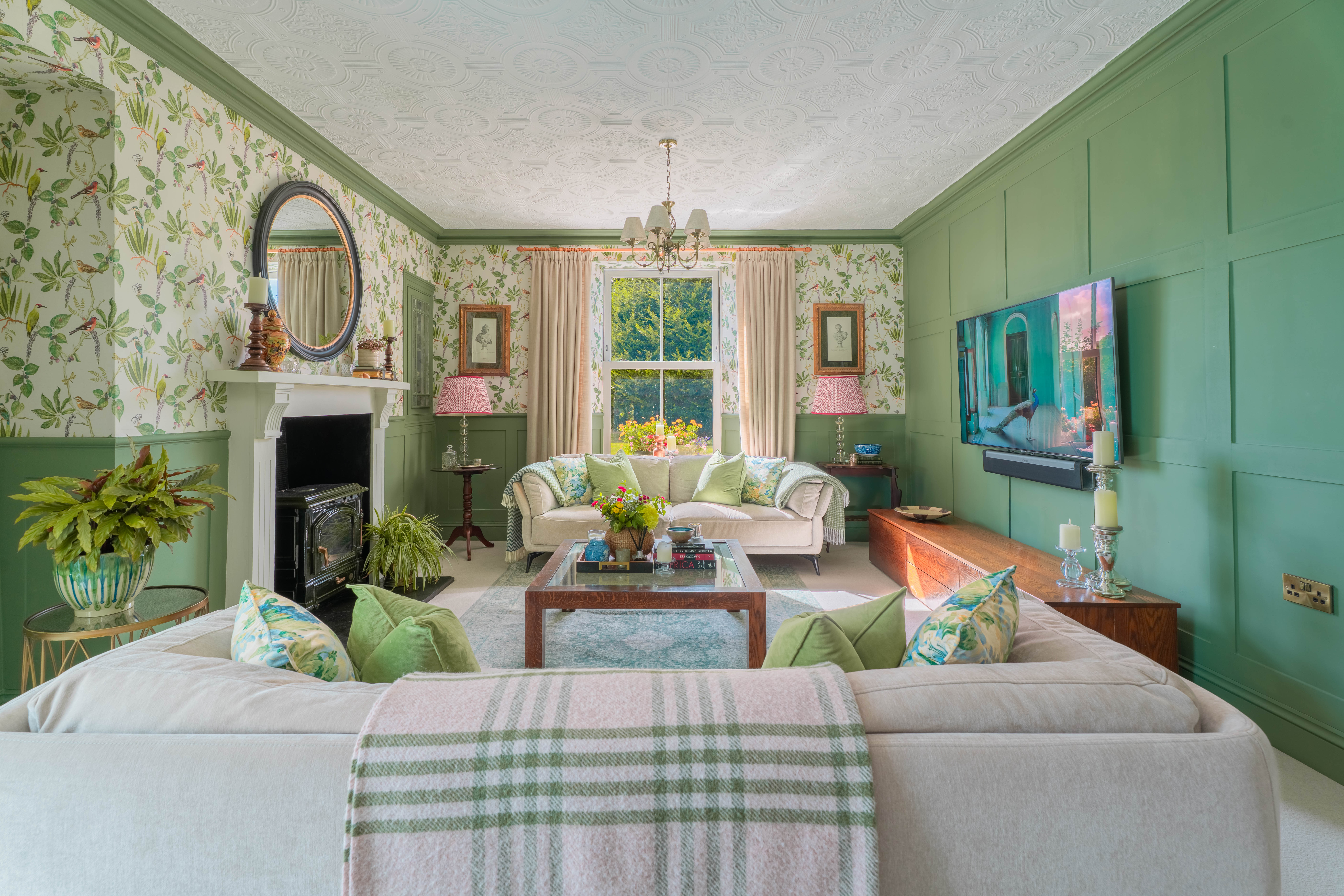 Dream deeper, and into the sumptuous living room with wonderful panelling to walls, cornicing, ceiling roses and magnificent windows allowing natural light to cascade in offering fabulous views over the grounds and gardens.