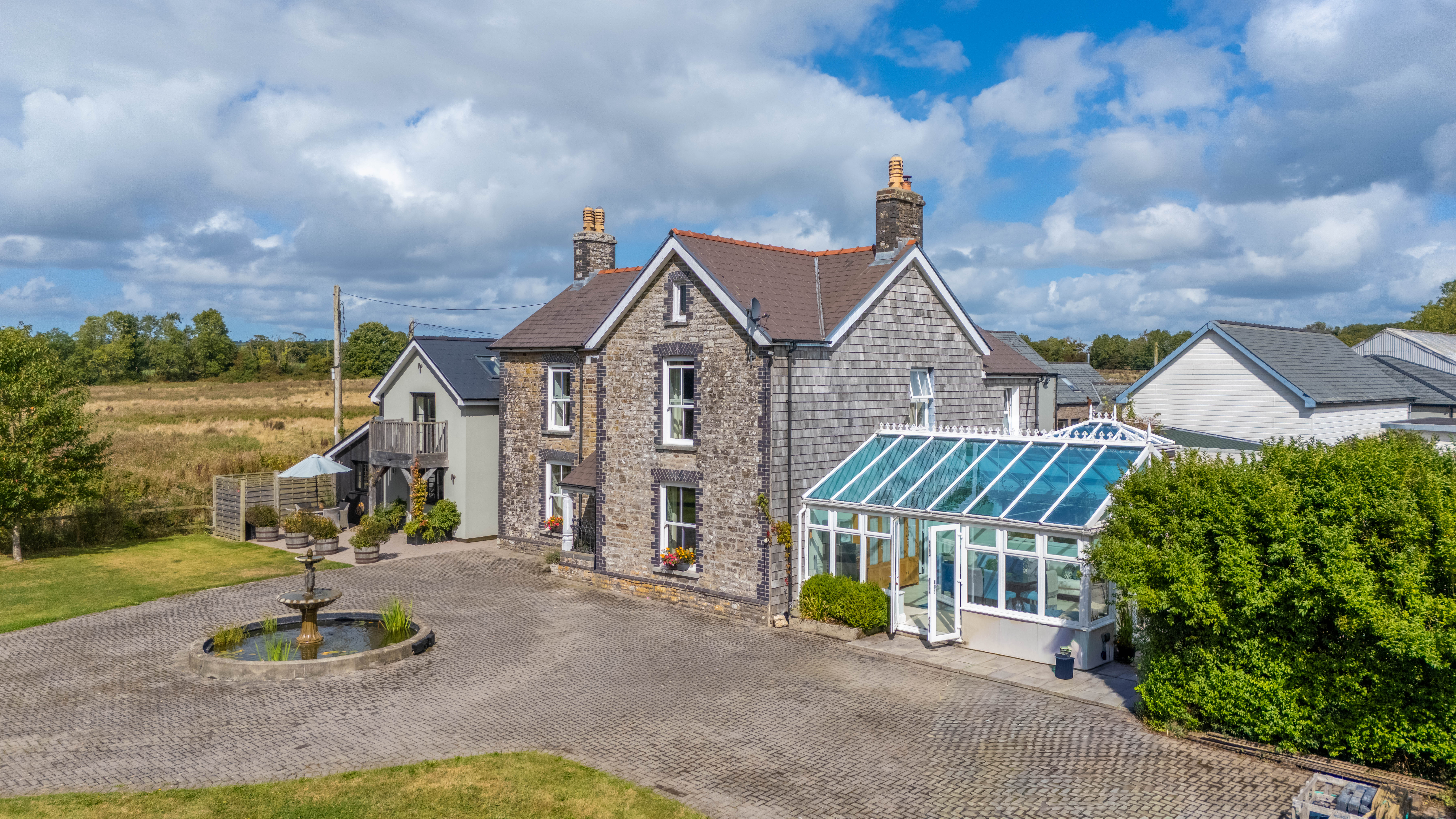 Gower Villa: An exclusive FIVE bedroom 19th Century, circa 1880, home with opulent finishes throughout and accommodation including entrance porch, reception hallway, formal sitting room, dining room, living room, breakfast kitchen, wonderful conservatory, FIVE bedrooms and family bathroom. Outside this wonderful home is approached via a tree lined driveway, offering a taste of grandeur and seclusion your guests will truly appreciate, tricking fountain and large driveway providing parking for numerous vehicles, EV charging point. A detached garage and workshop, beautiful open vistas overlooking the grounds (approx 1.5 acres) with patio seating areas following sun and shade, BBQ and outdoor kitchen area.