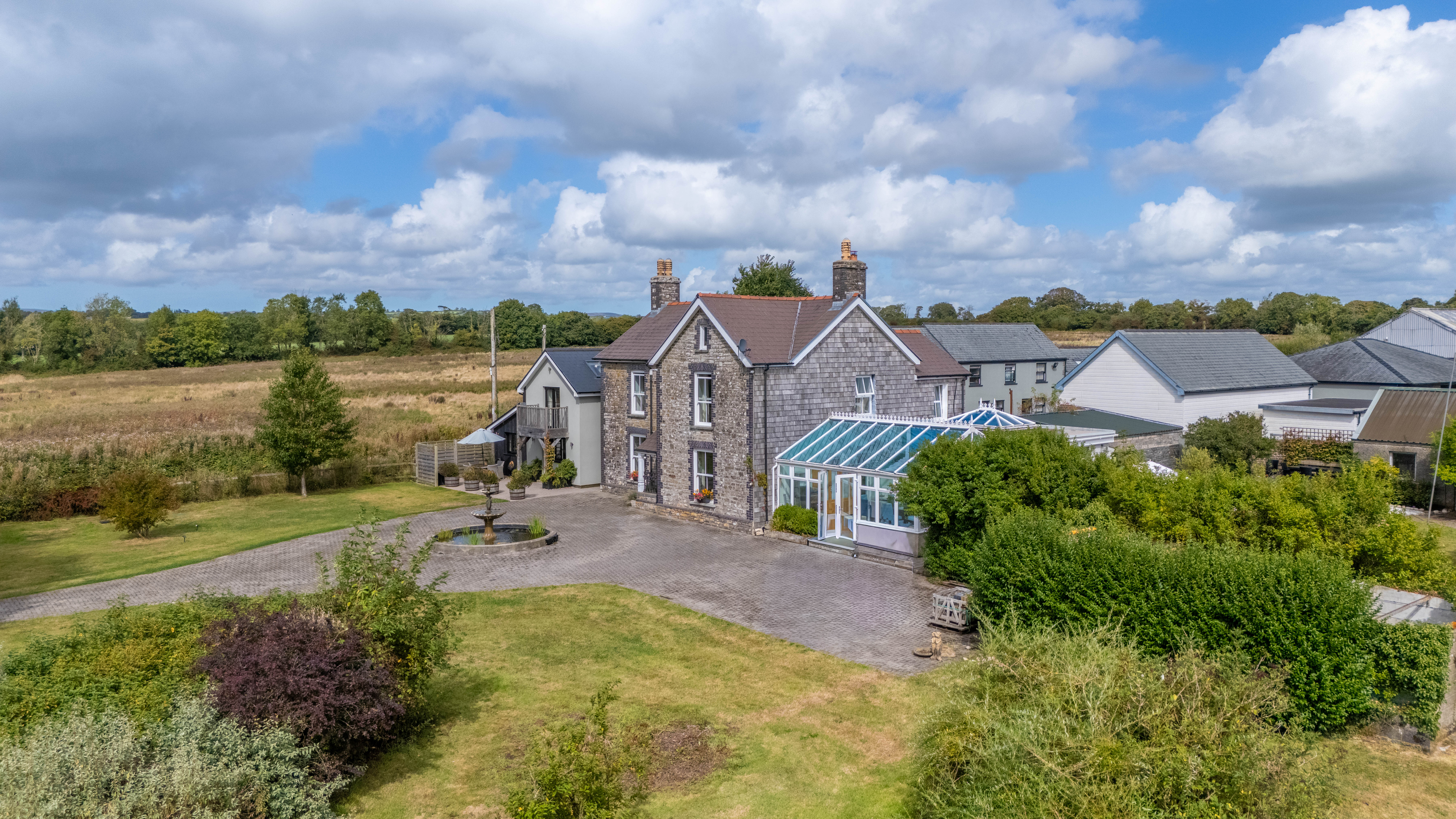 - Garage, workshop, old piggery (with planning PLUS planning for creation of TWO Timber holiday lets). Driveway with fountain providing parking for a number of vehicles. EV charging point.