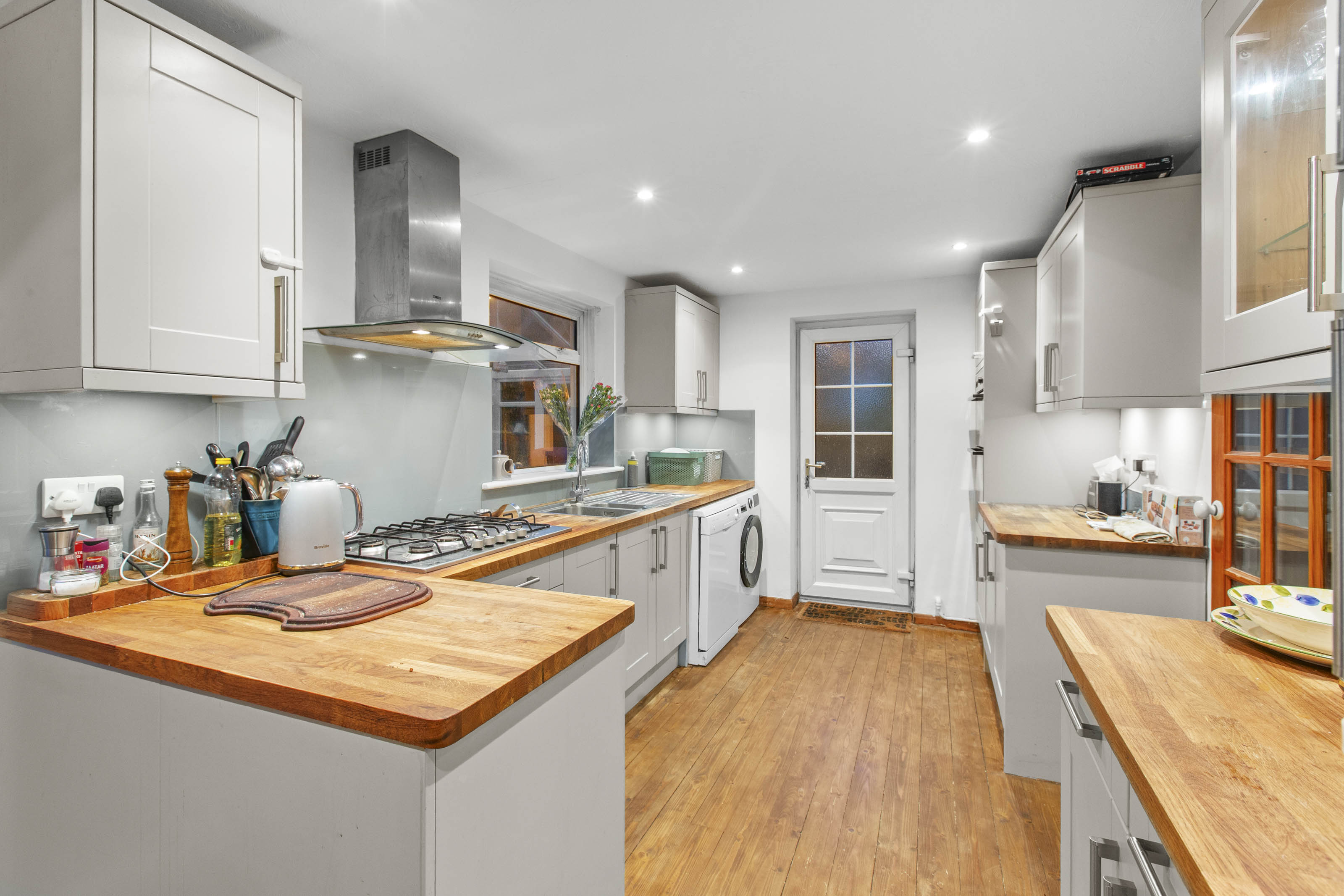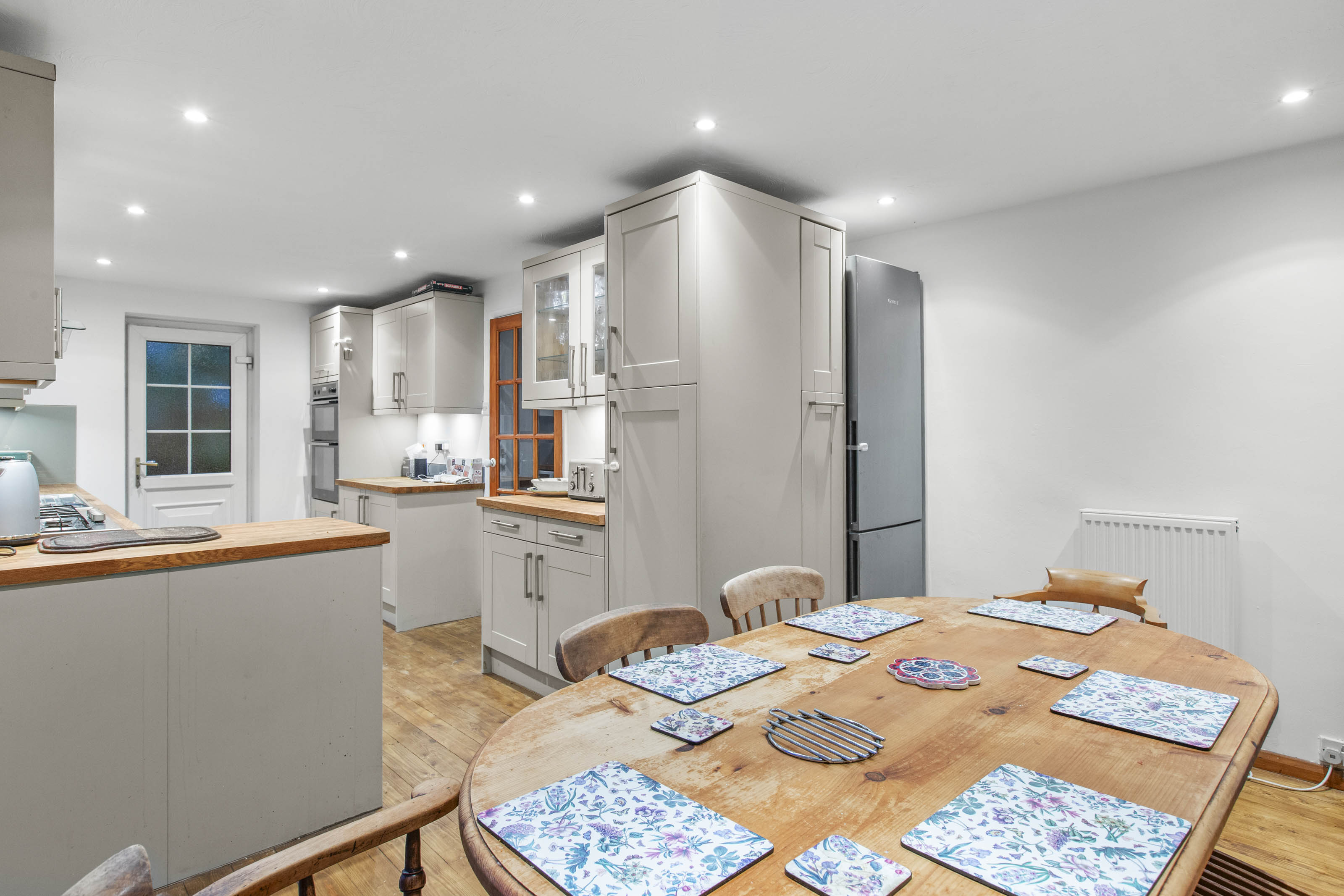 - Open plan modern kitchen/dining area with integrated appliances