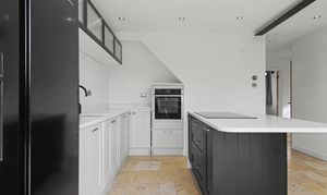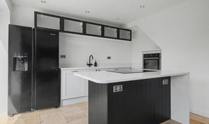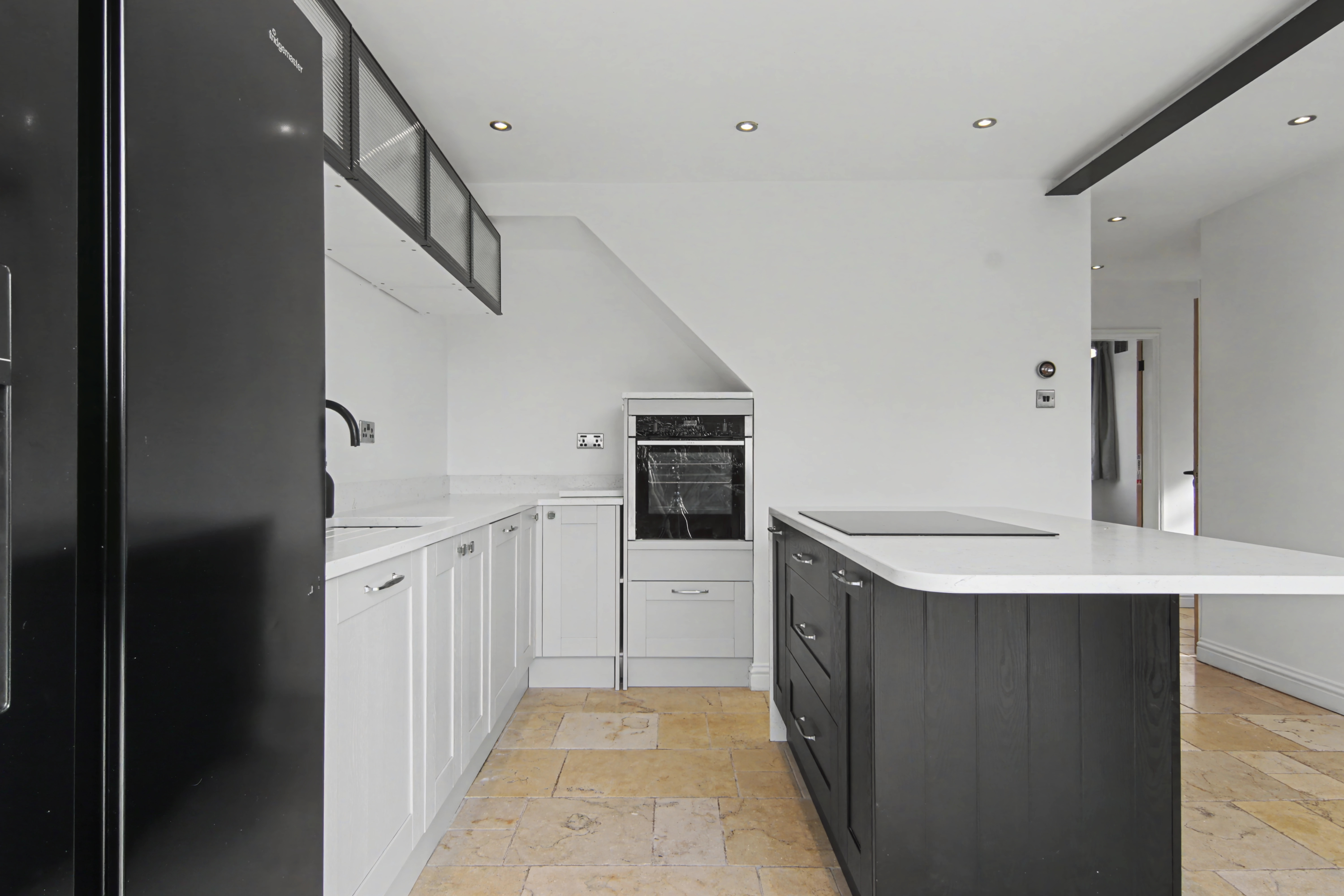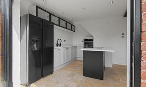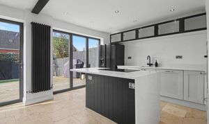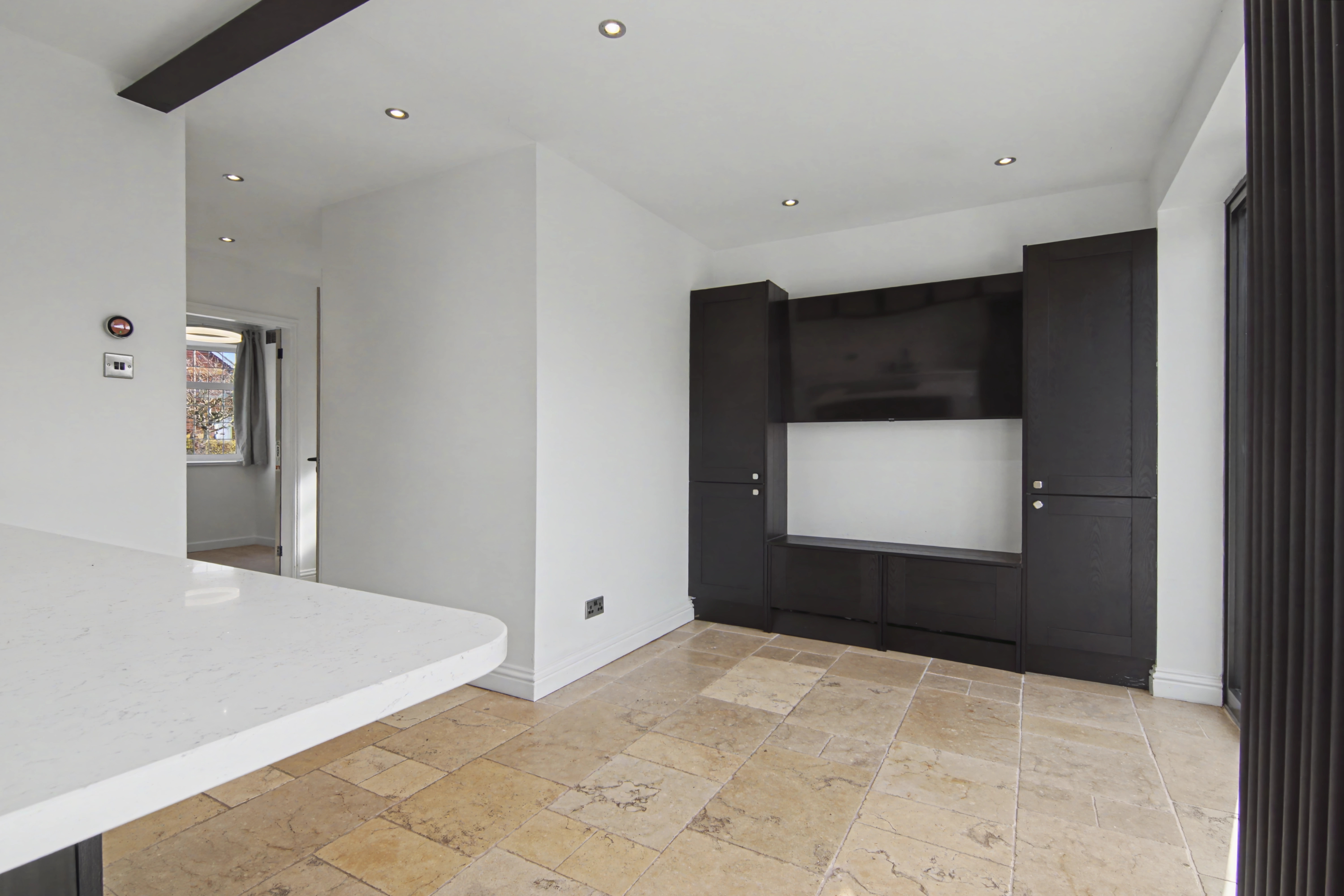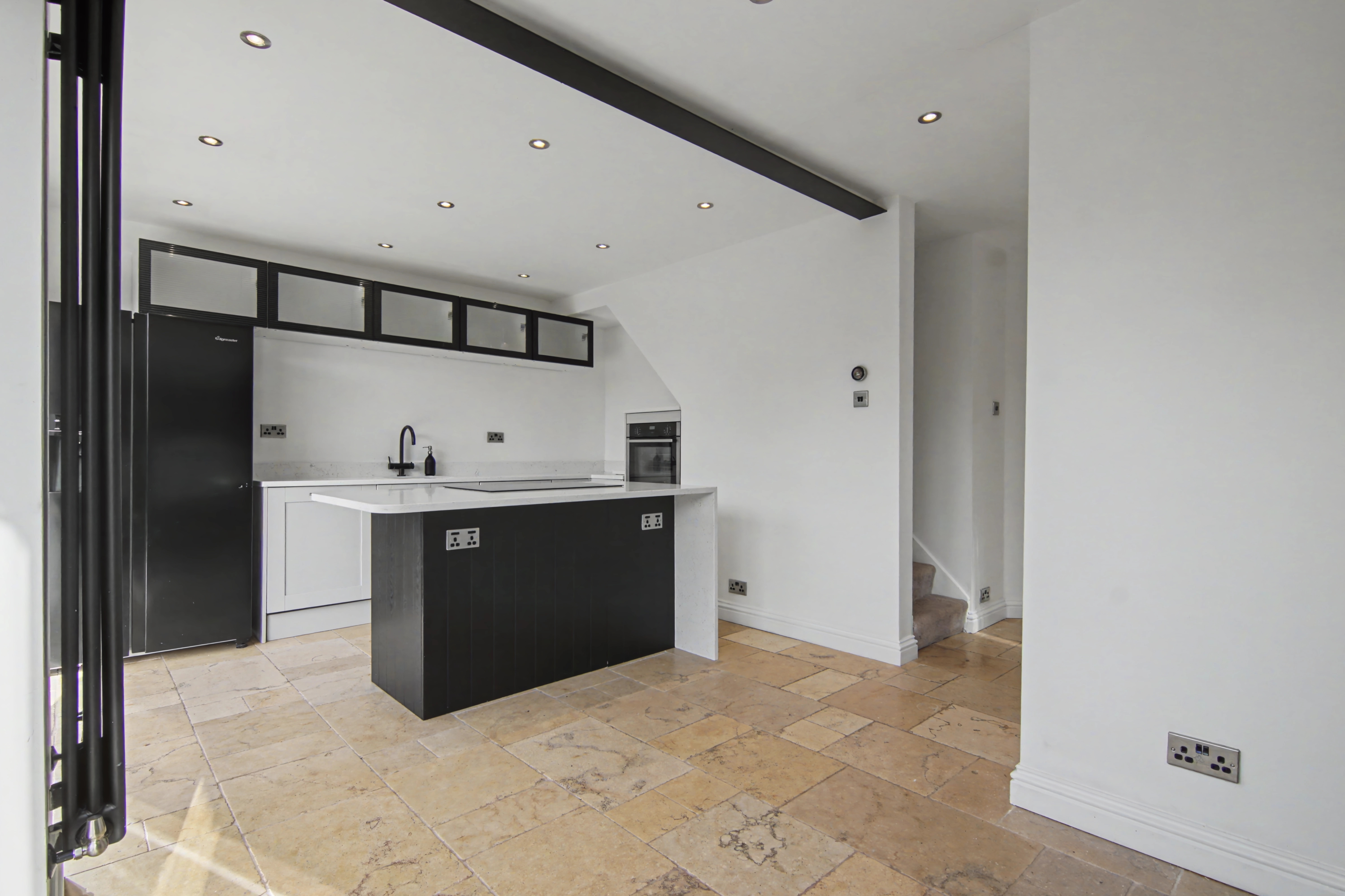Recently refurbished throughout, the property combines contemporary design with practical living space. The heart of the home is the stunning open-plan kitchen and dining area, featuring a sleek quartz worktop island, natural stone flooring, integrated appliances, and large bi-fold doors that open directly onto the landscaped garden - creating the perfect space for entertaining or relaxed family living.