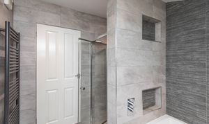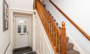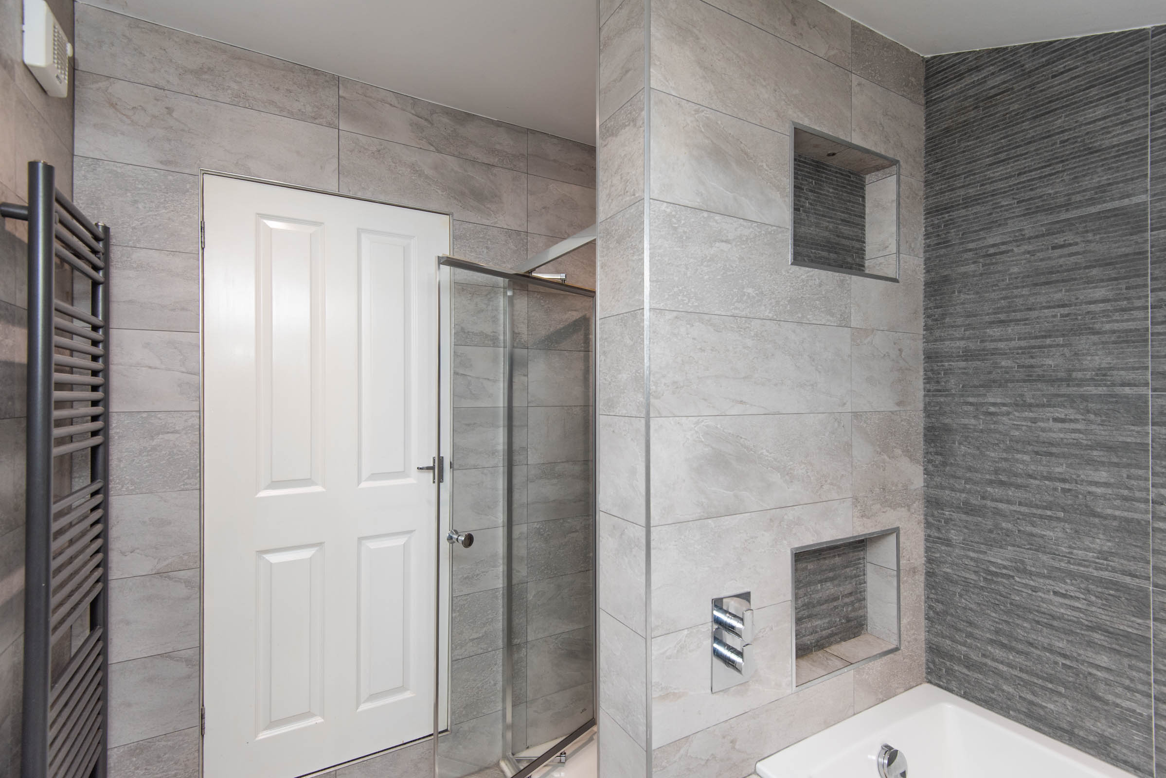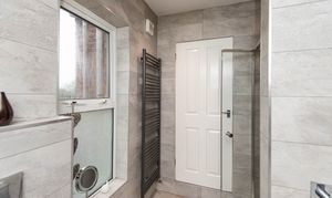 Ascend the stairs to discover three well-appointed bedrooms, each offering comfort and style. The modern family bathroom is a sanctuary in itself, boasting a separate shower for added luxury.