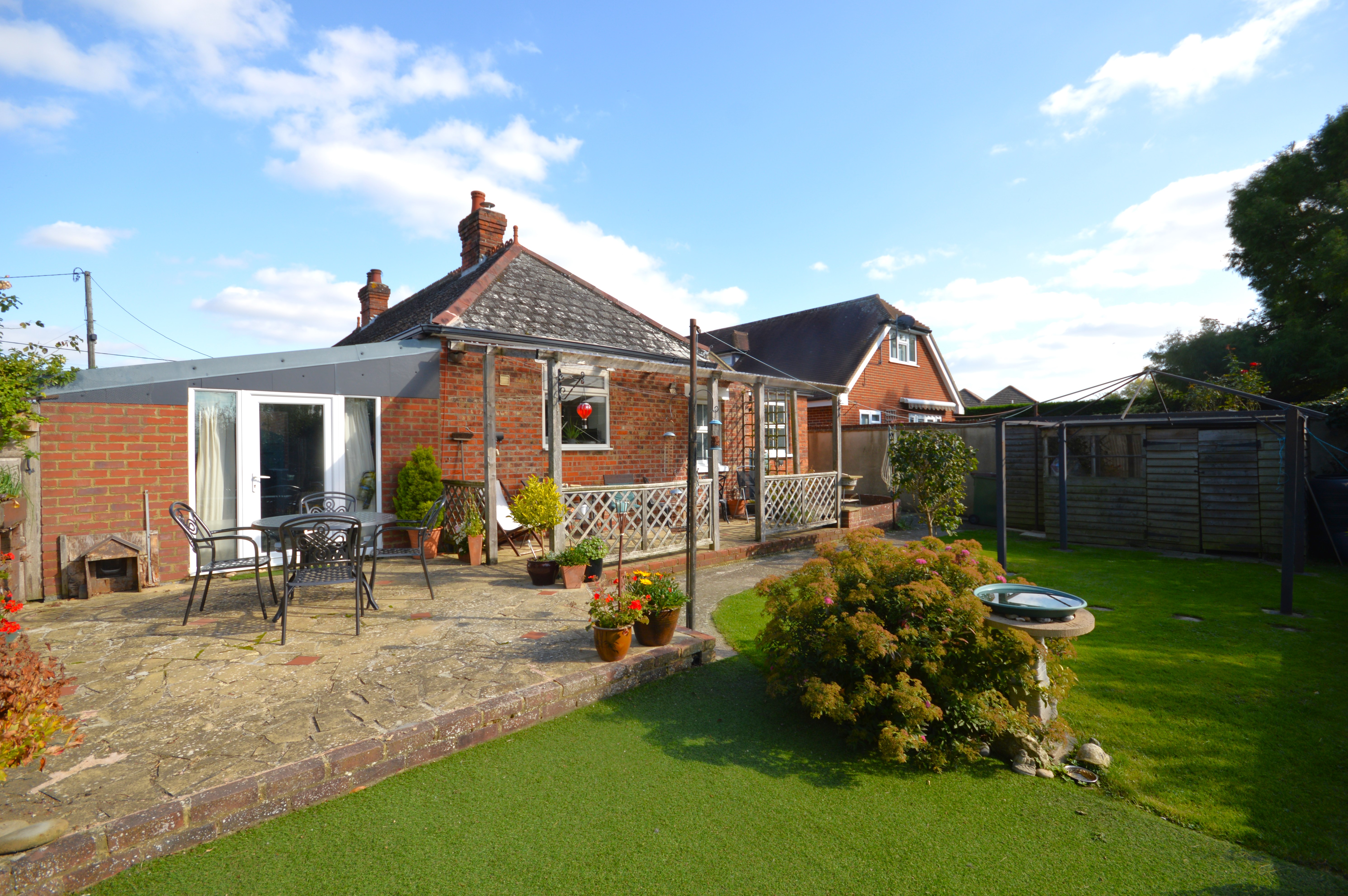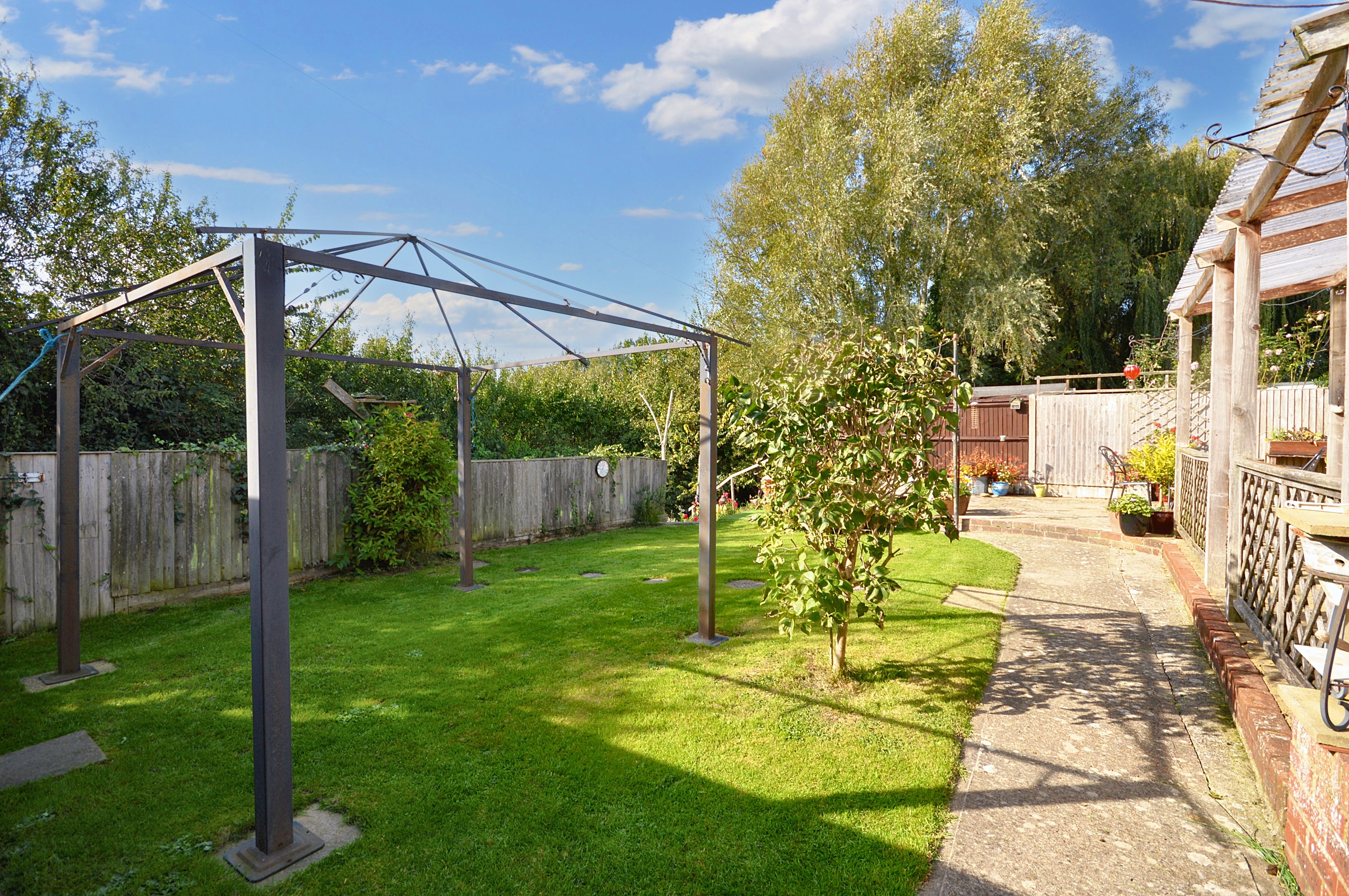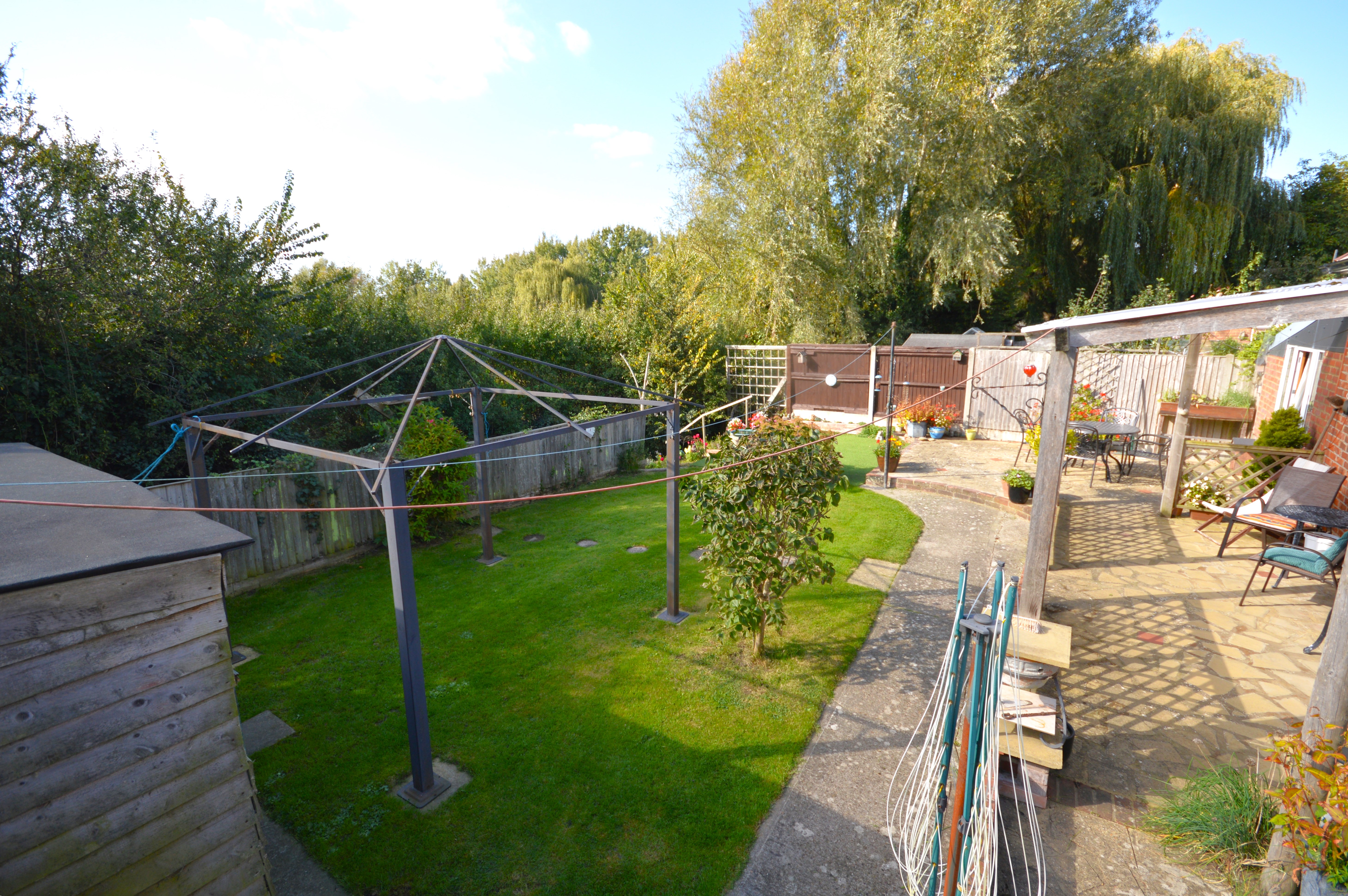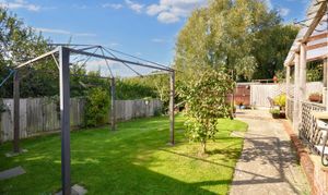 Beautiful garden with patio area, artificial lawn, patioed pergola area. Area with natural laid to lawn. Lots of natural sun light with well established shrubs and foliage.