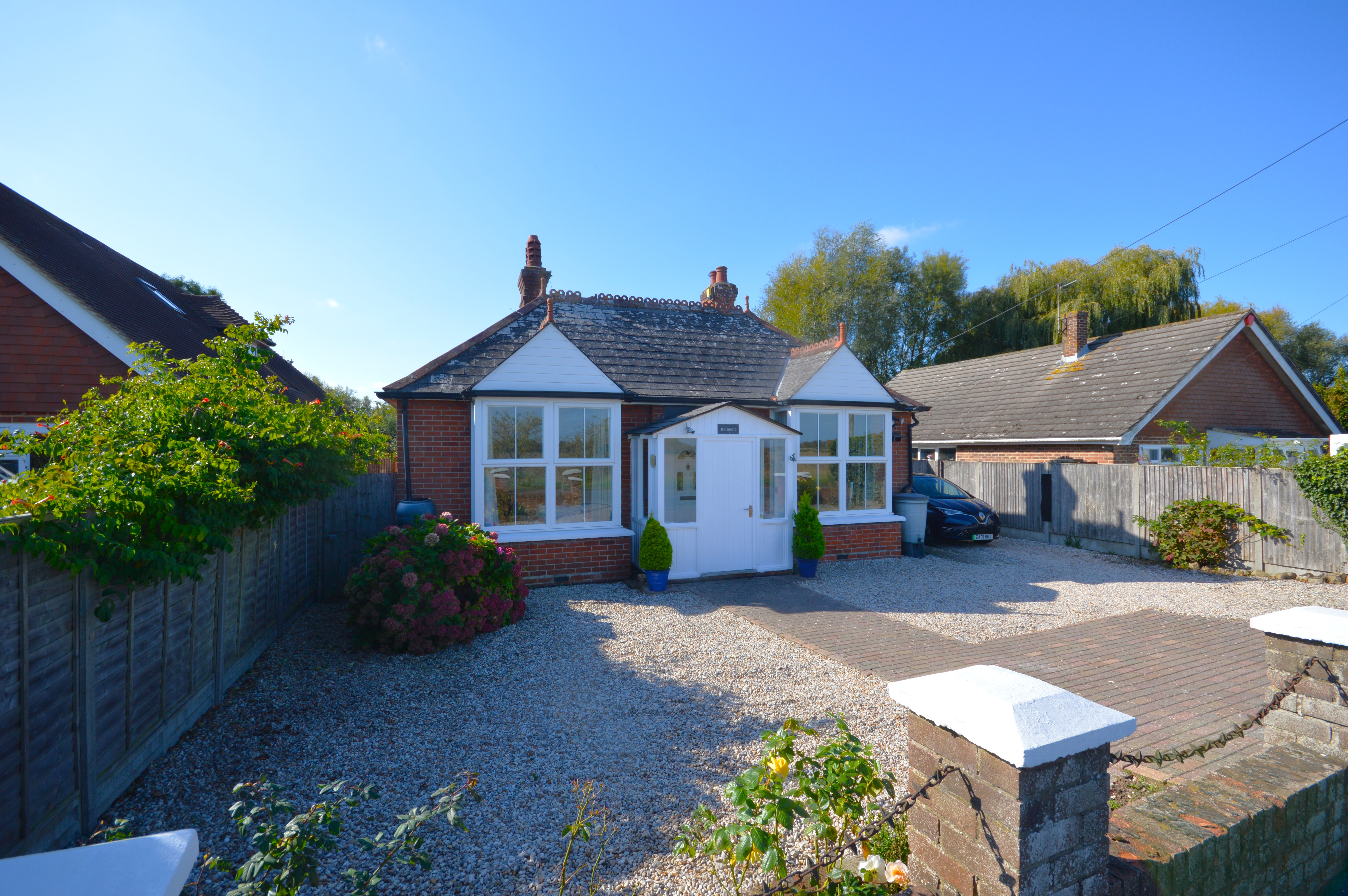 Block paved driveway and shingle stone parking either side of the pathway with space for ample parking.