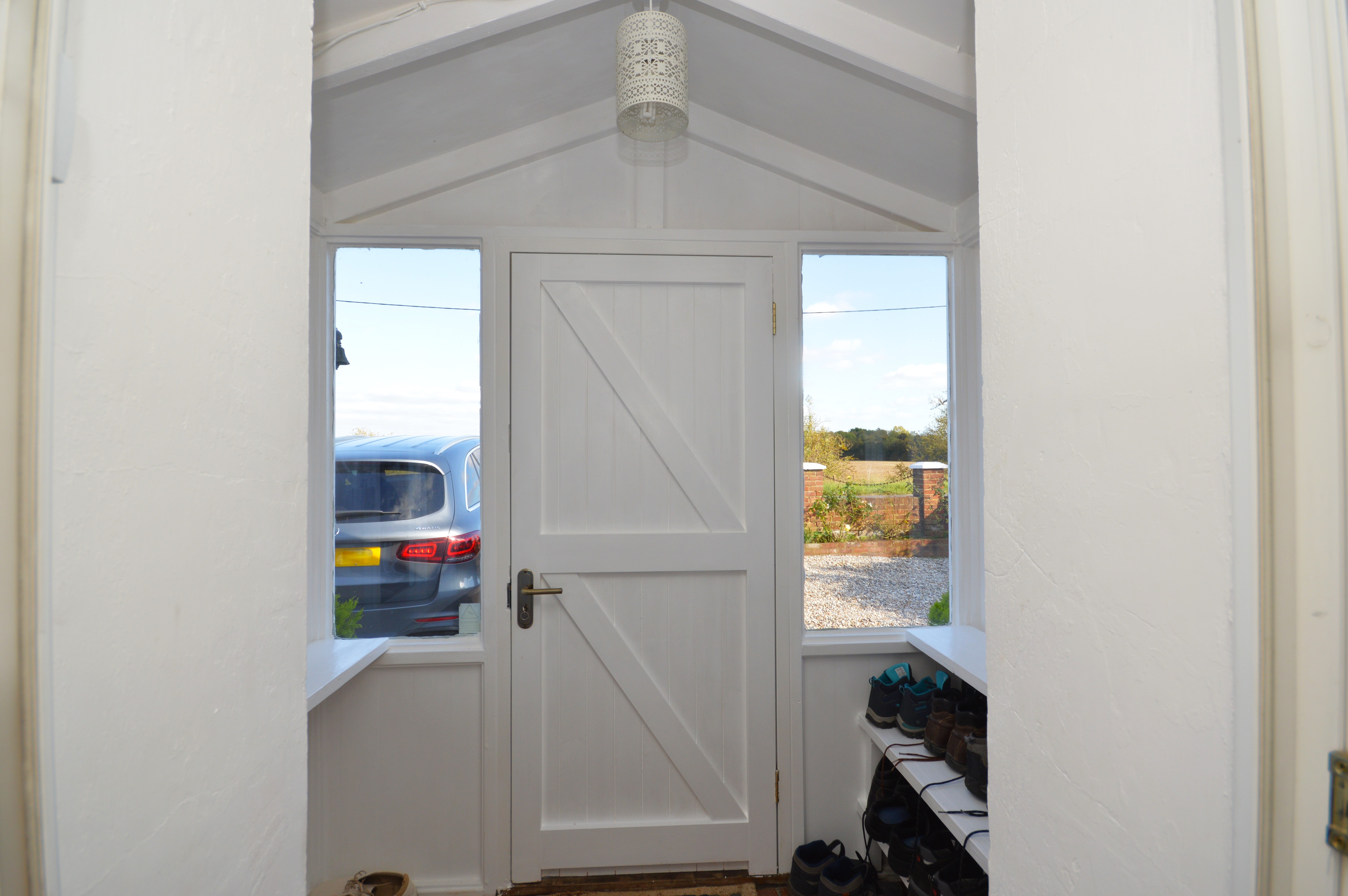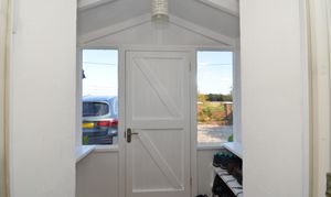 Solid wooden front door with single glazed windows to the side and front giving lots of natural light. Tiled flooring. UPVC double glazed door to entrance hall.