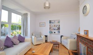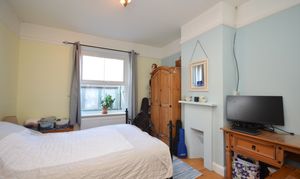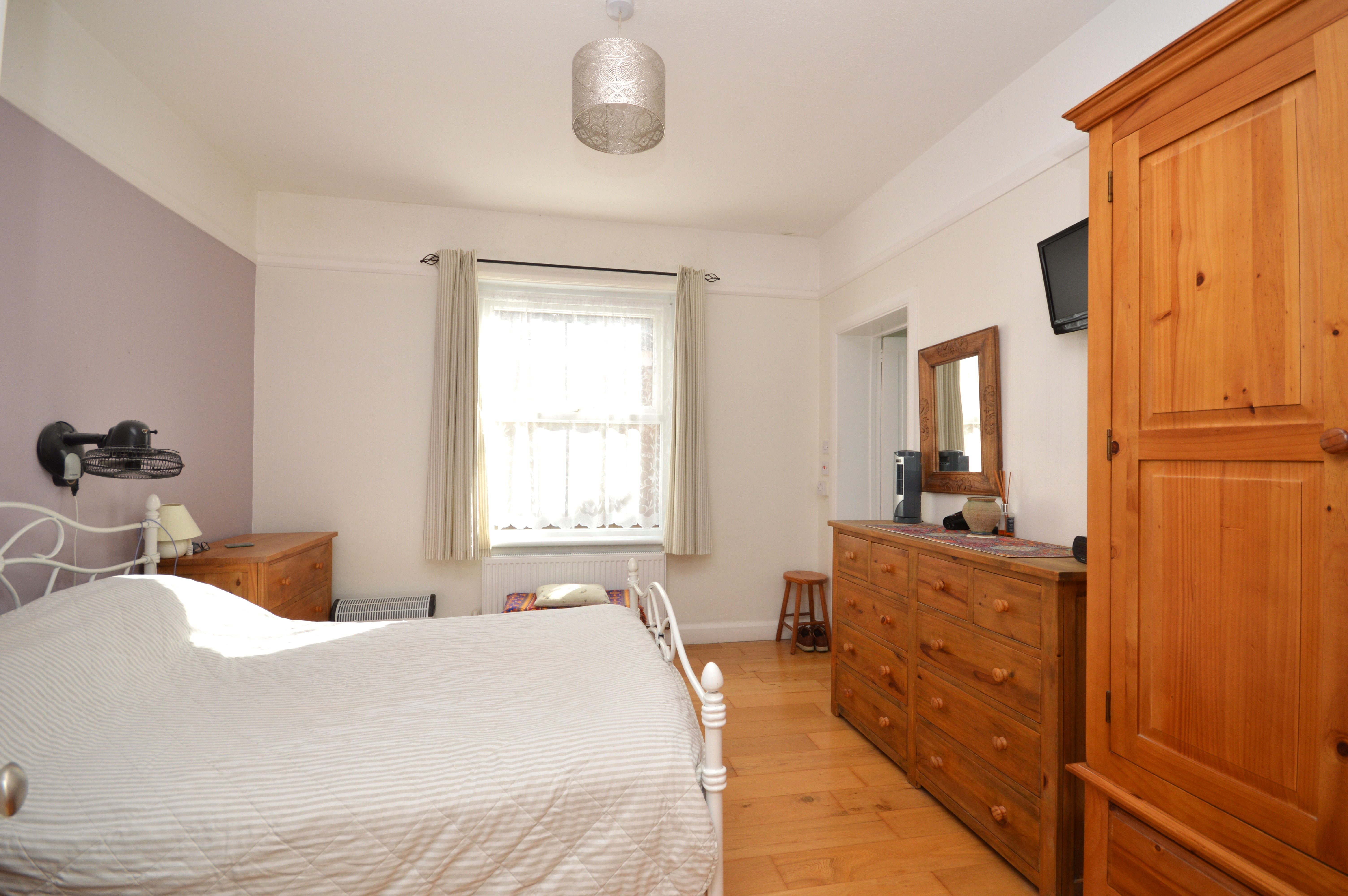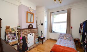 UPVC double glazed bay window to the front of the property. Engineered oak flooring, feature brick built fireplace with open fire. Coving and a large radiator.