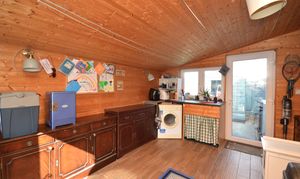 Insulated lean-to. UPVC double glazed door to the front and the rear and a UPVC double glazed window. Stainless steel sink, tiled flooring, tongue and groove finish to the walls. Electric supply and space for a tumble dryer.