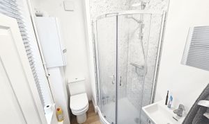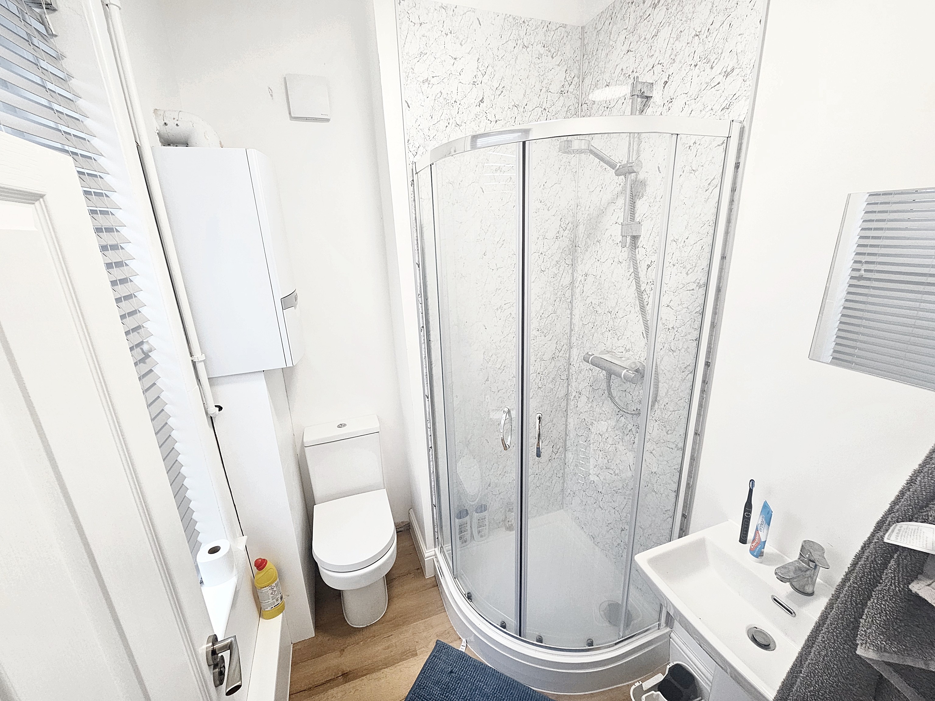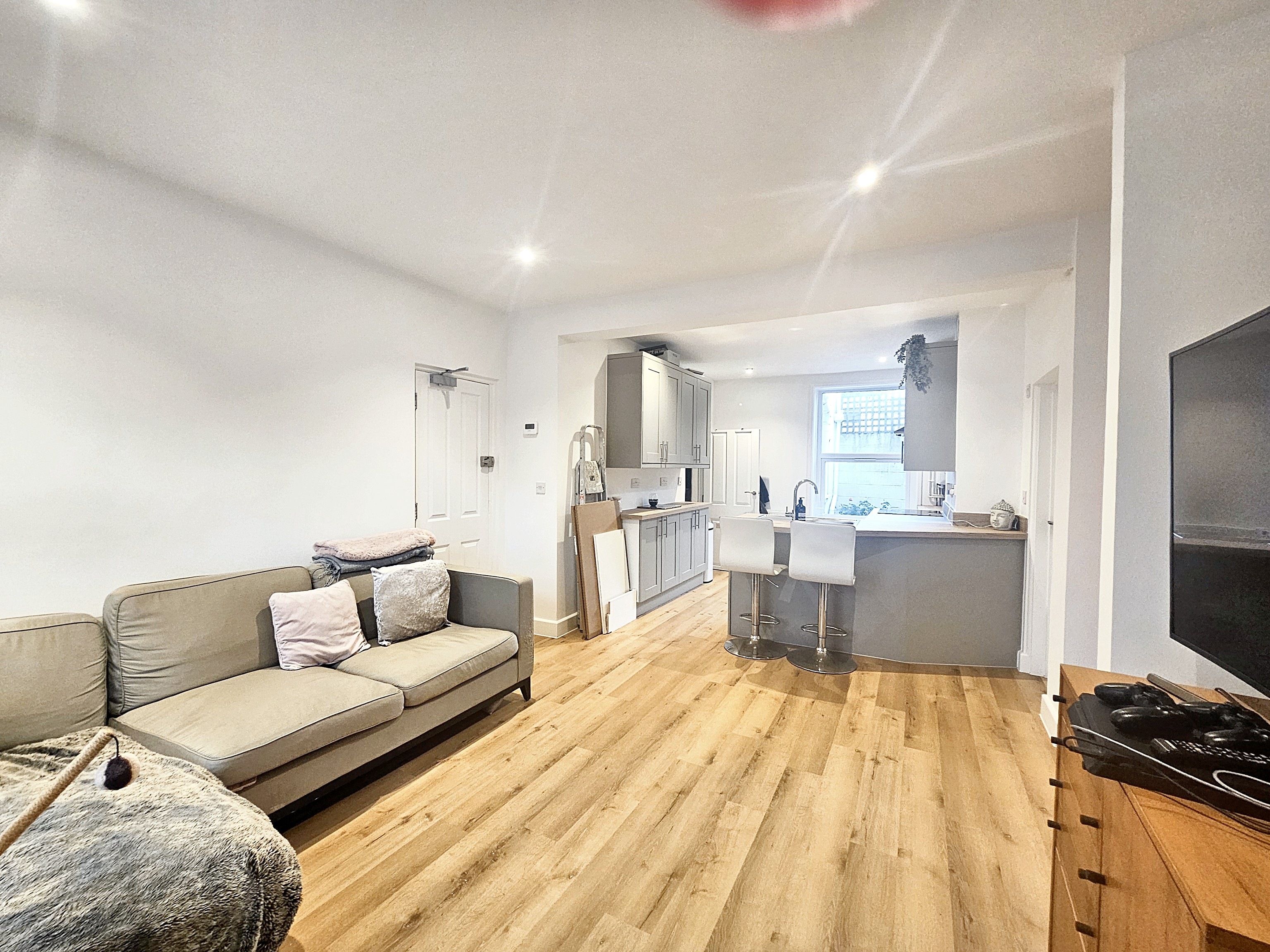Moving onto the second apartment, which again has been recently refurbished throughout. You will find a bright and airy living area, a contemporary kitchen (with ample storage space), and a generously sized bedroom. The modern bathroom features sleek fixtures and fittings, adding a touch of luxury to this inviting space.