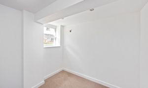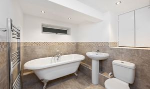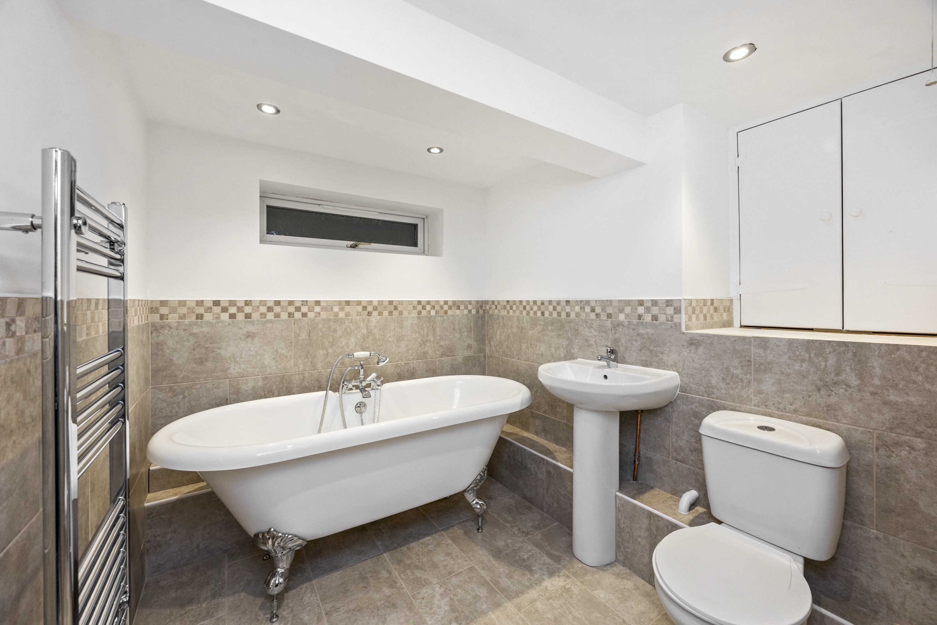Stairs from the kitchen also lead down to the lower ground floor, where the central bedroom accommodation is located. The principal bedroom is a generous double, complete with a well-appointed en-suite shower room and ample space for freestanding furniture. Two further good-sized bedrooms provide flexible options for family, guests, or hobbies, and are served by a modern family bathroom. This layout ensures the property is both practical and beautiful, with private spaces separated from the main living areas above.