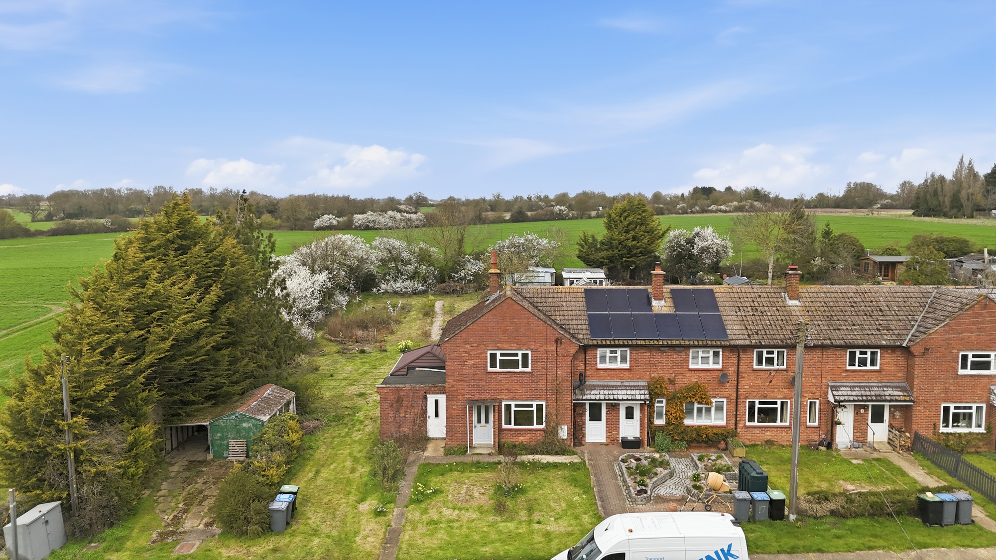 Externally, the property benefits from a covered alleyway connecting two useful outbuildings. These currently comprise a storage cupboard and a larger space, which offers excellent potential to be converted into a utility room or home office, subject to requirements.