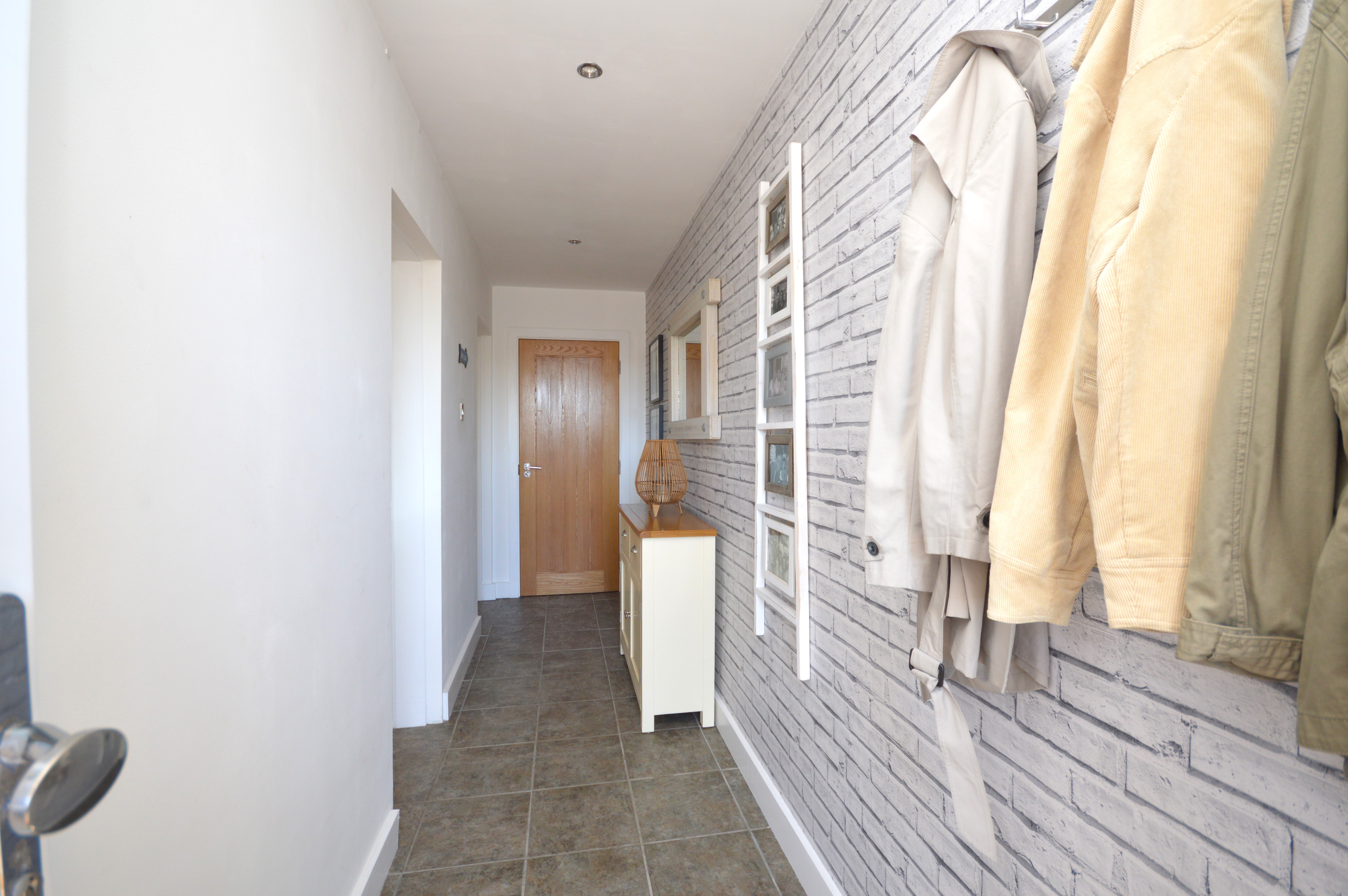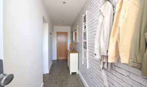 UPVC frosted glazed front door. Tiled flooring and a radiator with doors To :-
