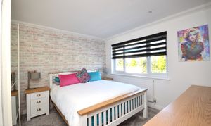 Large UPVC double glazed window to the rear overlooking the garden with matching day/night roller blind, carpeted floor coverings, radiator and coving. Views over towards to hills.